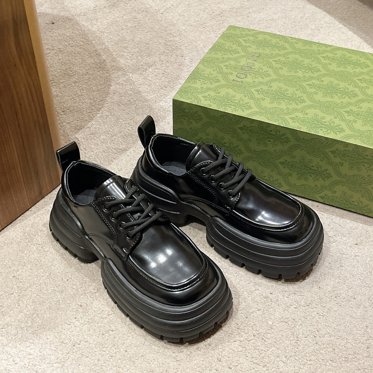 로퍼 여성의 가을 2024 새로운 여성의 두꺼운 밑창 높이 증가 작은 가죽 신발 여성을위한 모든 경기 하이힐 싱글 레이어 신발스토어 가기