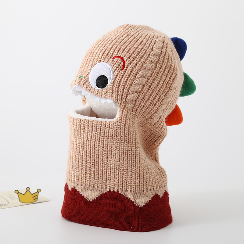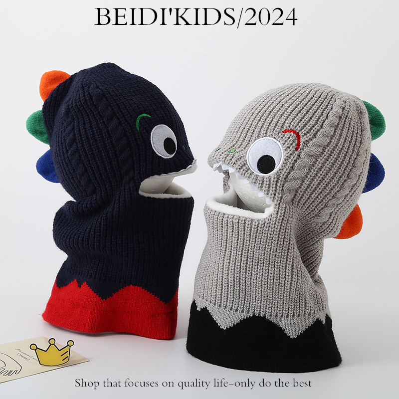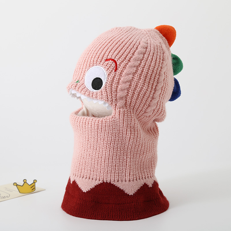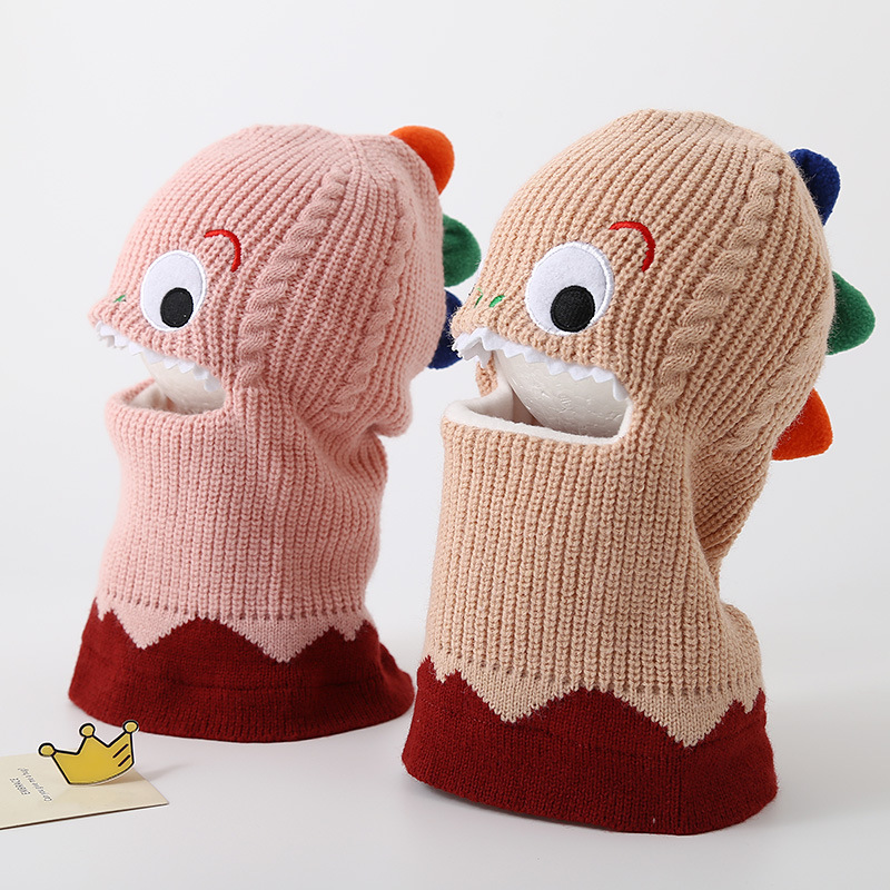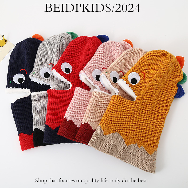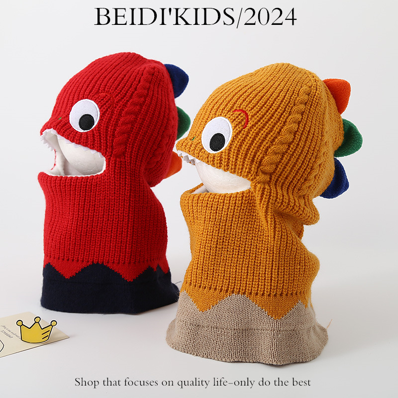 가을과 겨울 어린이 모자 스카프 니트 모자 아기 두꺼운 따뜻한 만화 작은 공룡 풀오버 모자 S204