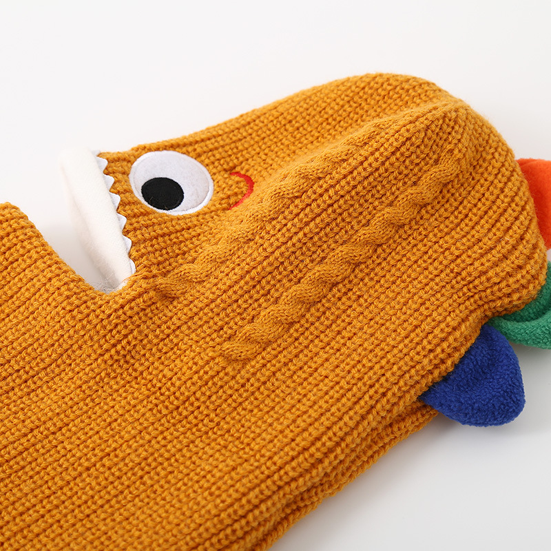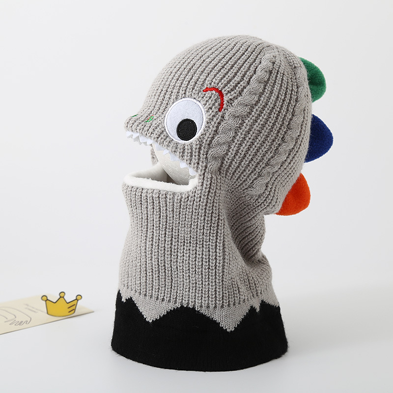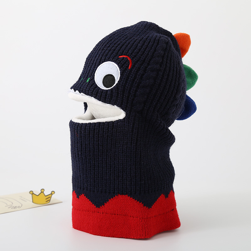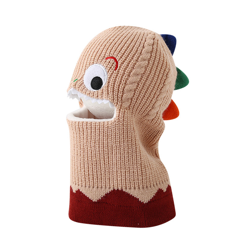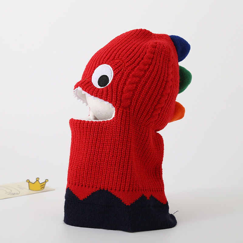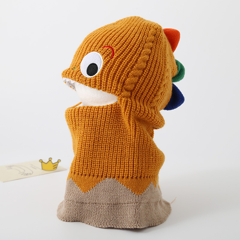가을과 겨울 어린이 모자 스카프 니트 모자 아기 두꺼운 따뜻한 만화 작은 공룡 풀오버 모자 S204