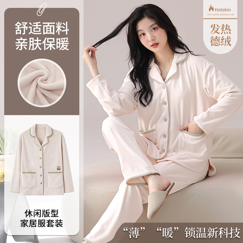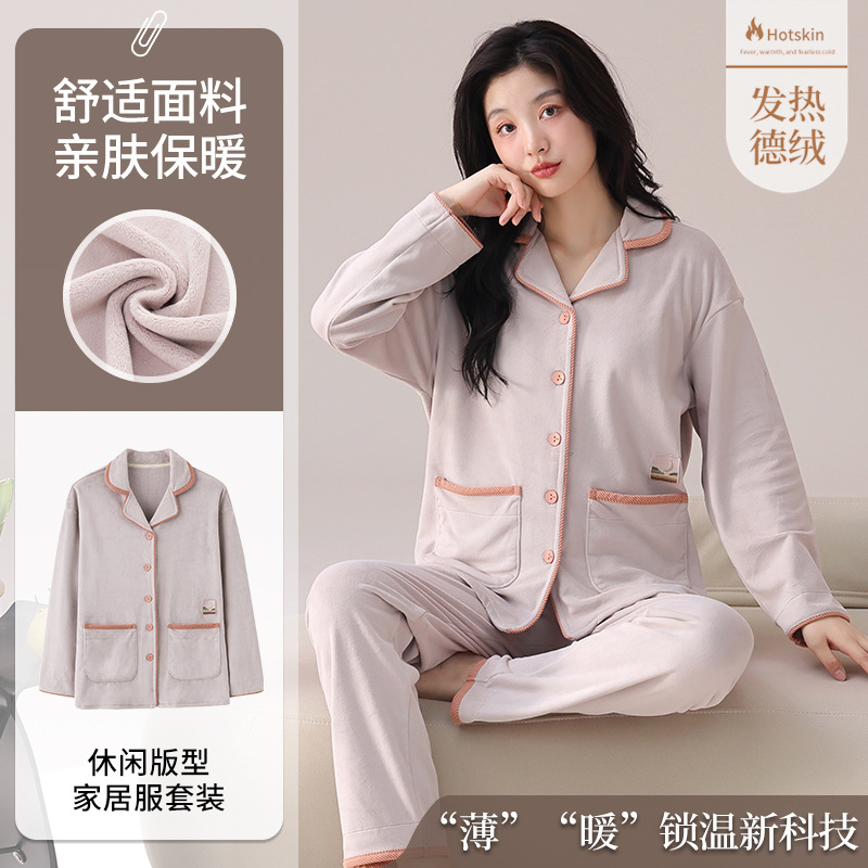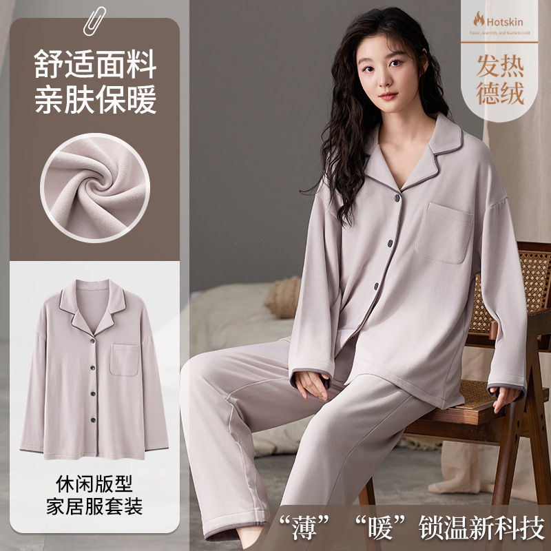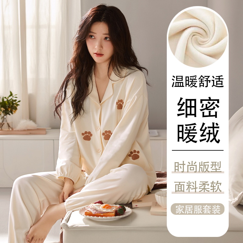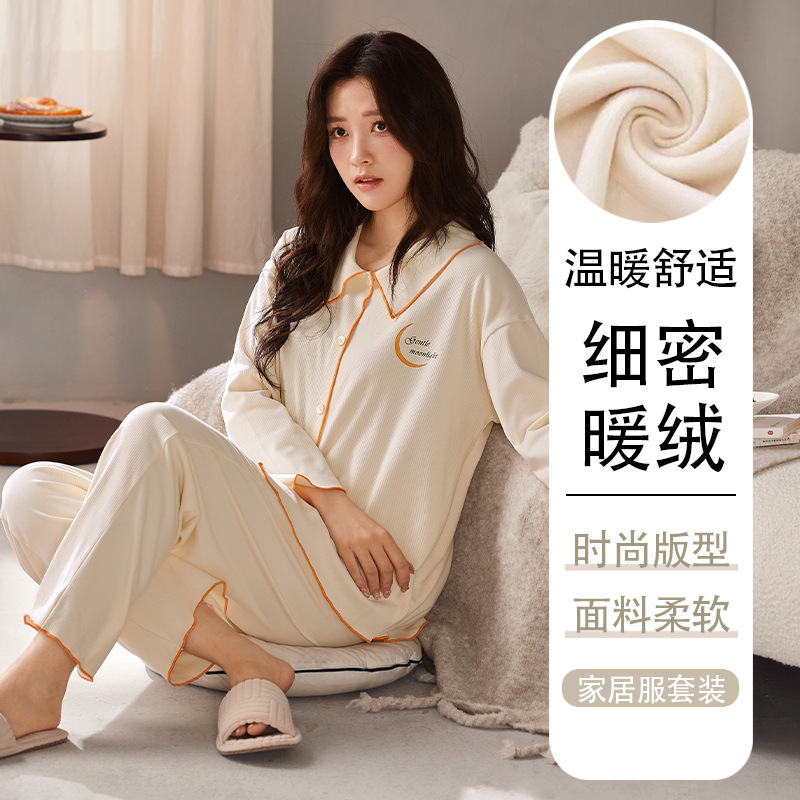 사슴 시간 한국 인 벨벳 잠옷 여성 겨울 가슴 패드 따뜻한 긴 소매 단색 가을과 겨울 홈 의류 세트스토어 가기