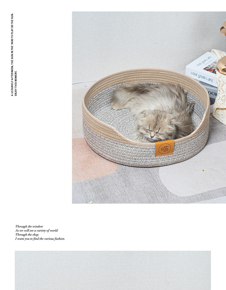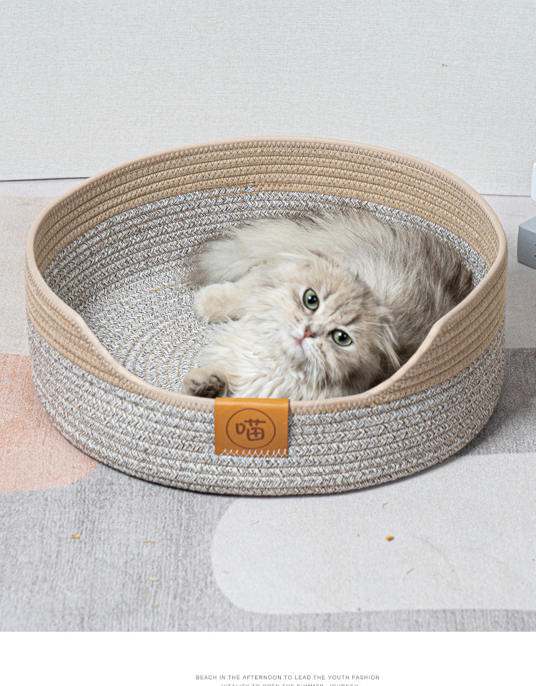 등나무 사육장 짠 고양이 둥지 짠 고양이 둥지 애완 동물 매트 반 폐쇄 슬리핑 백 펠트 고양이 둥지 고양이 소파스토어 가기