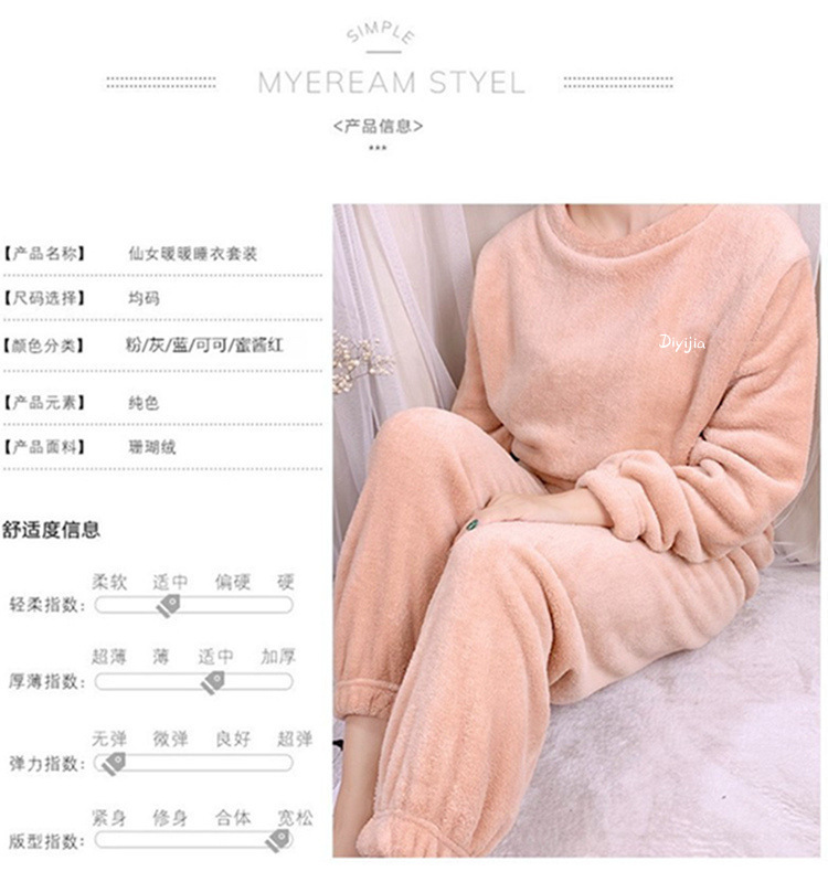 요정 따뜻한 바지 따뜻한 세트 여성 두꺼운 산호 양털 홈 세트 야외 착용 올매치 느슨한 게으른 세트