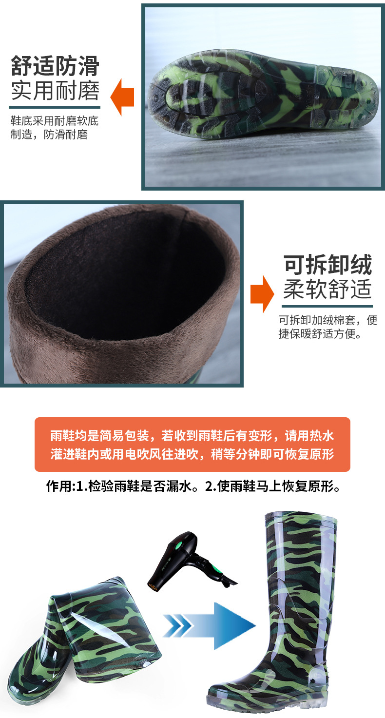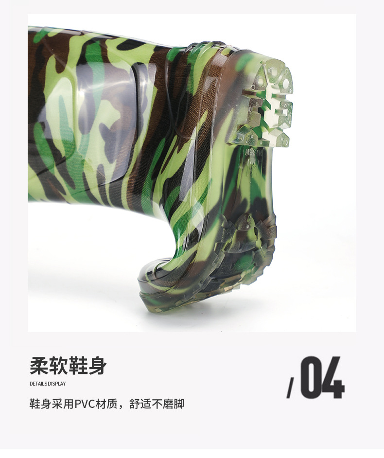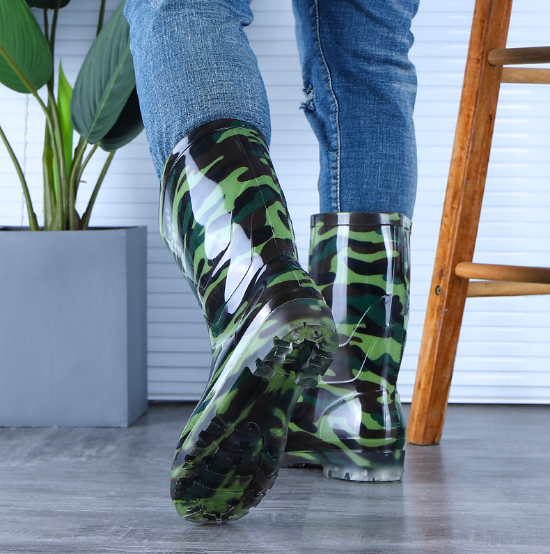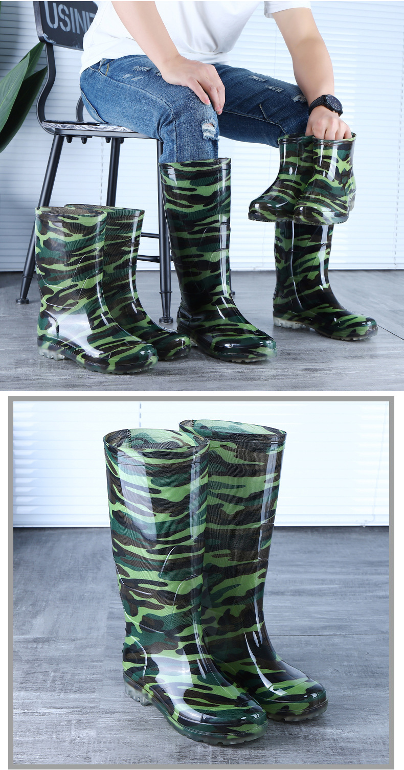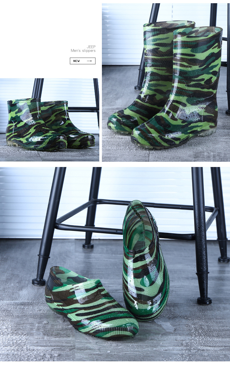 Jundeng 위장 비 신발 성인 플라스틱 비 신발 하이 탑 짧은 장화 방수 미끄럼 방지 수화 머리카락 세대