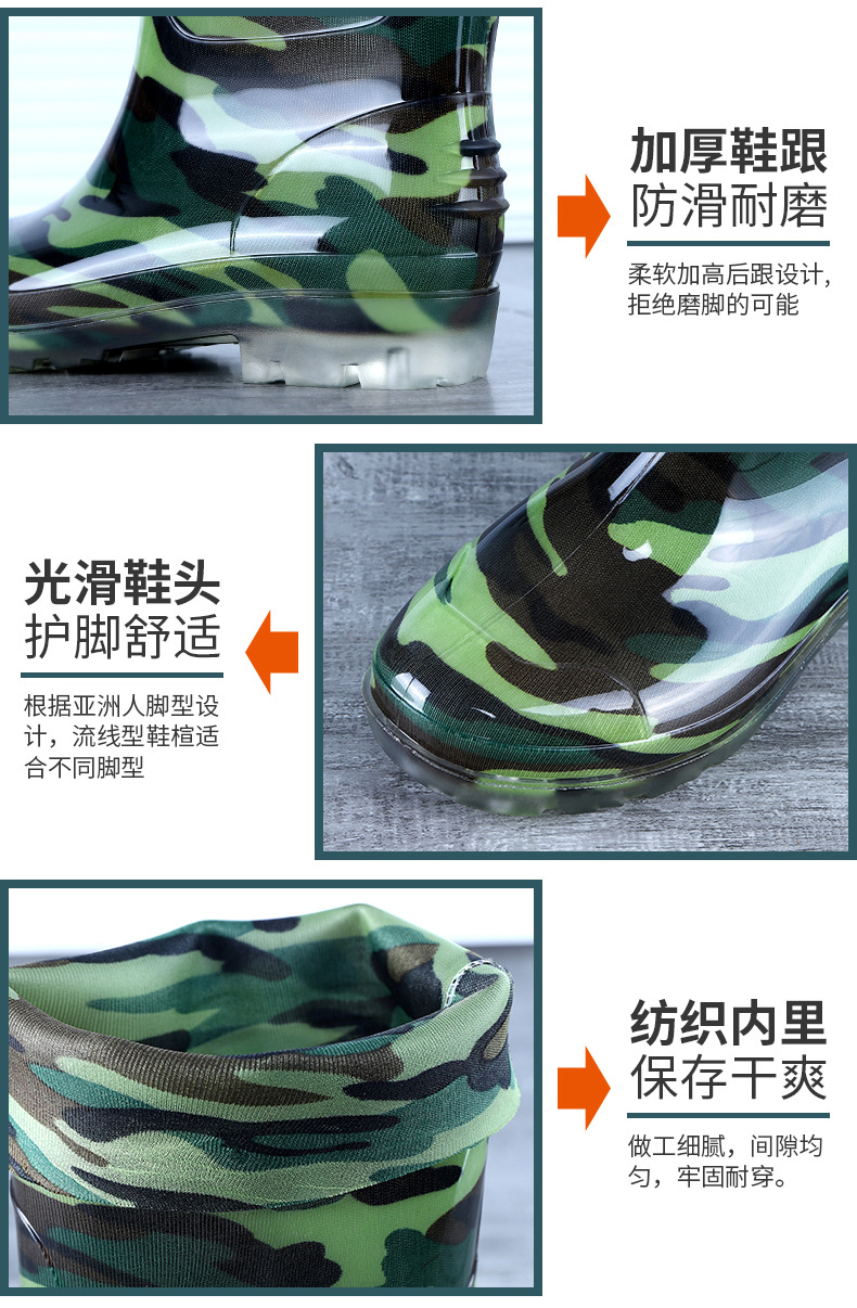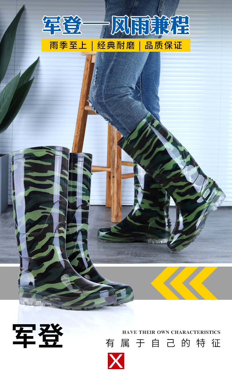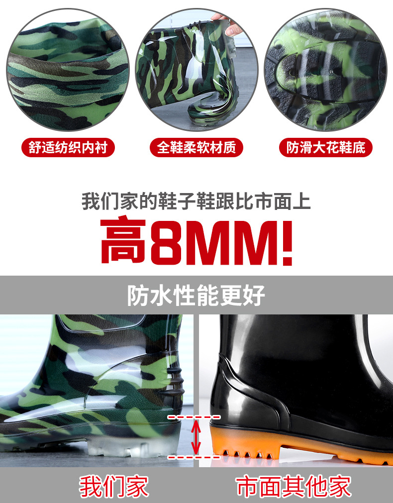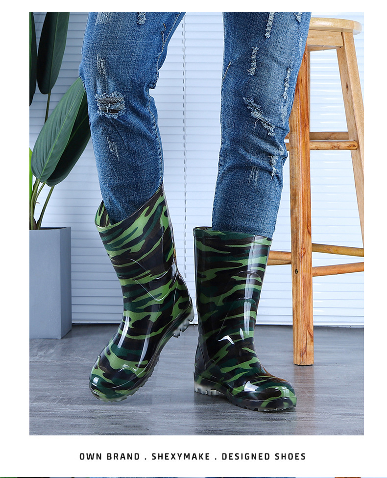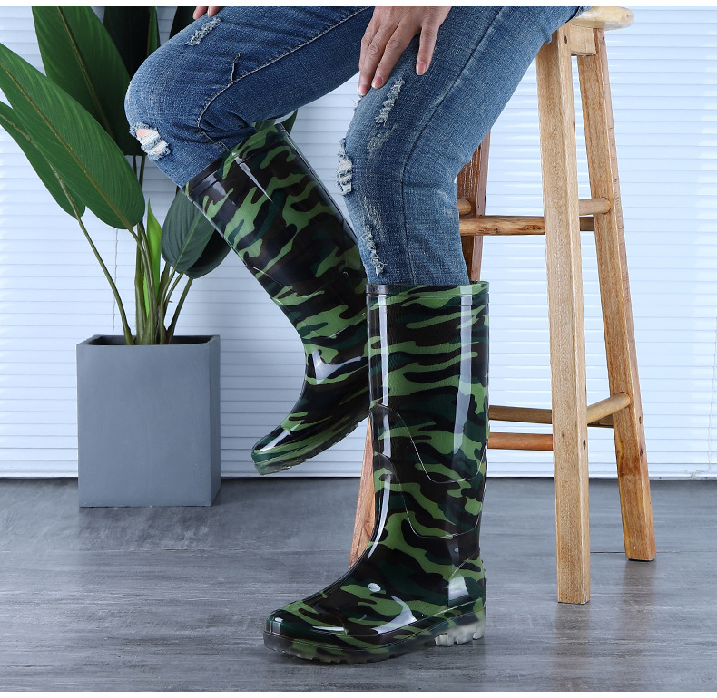 Jundeng 위장 비 신발 성인 플라스틱 비 신발 하이 탑 짧은 장화 방수 미끄럼 방지 수화 머리카락 세대