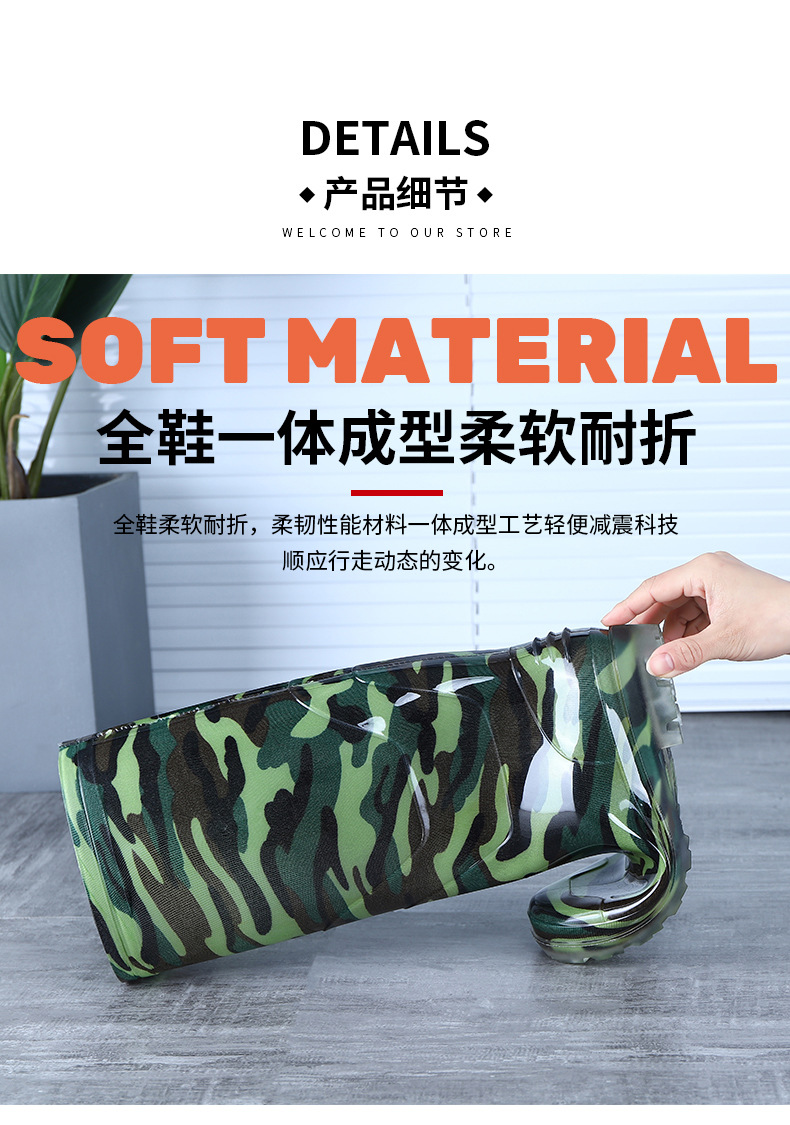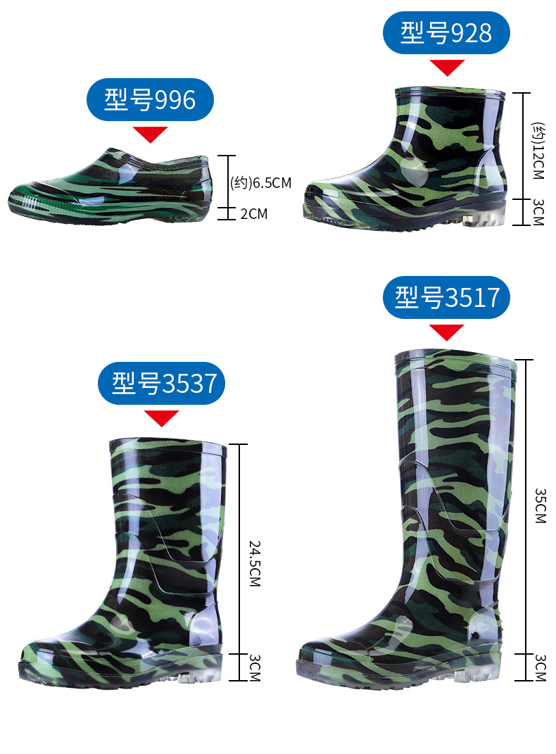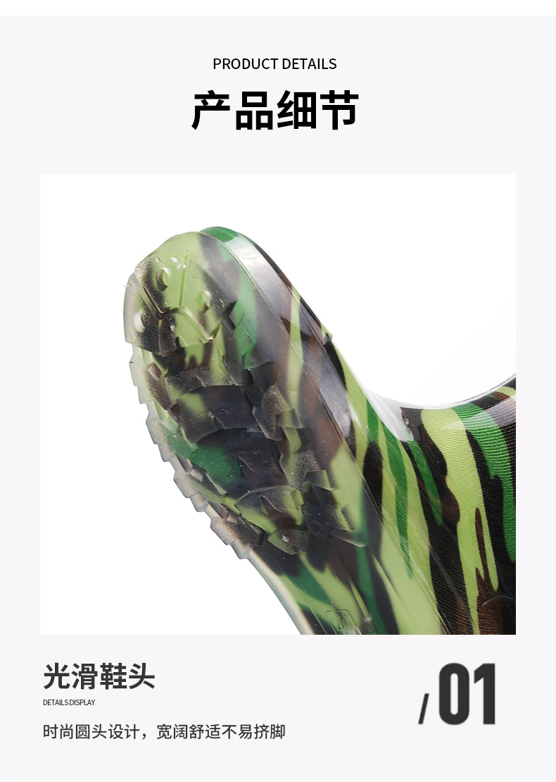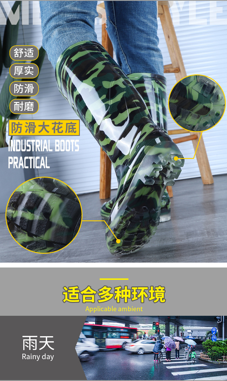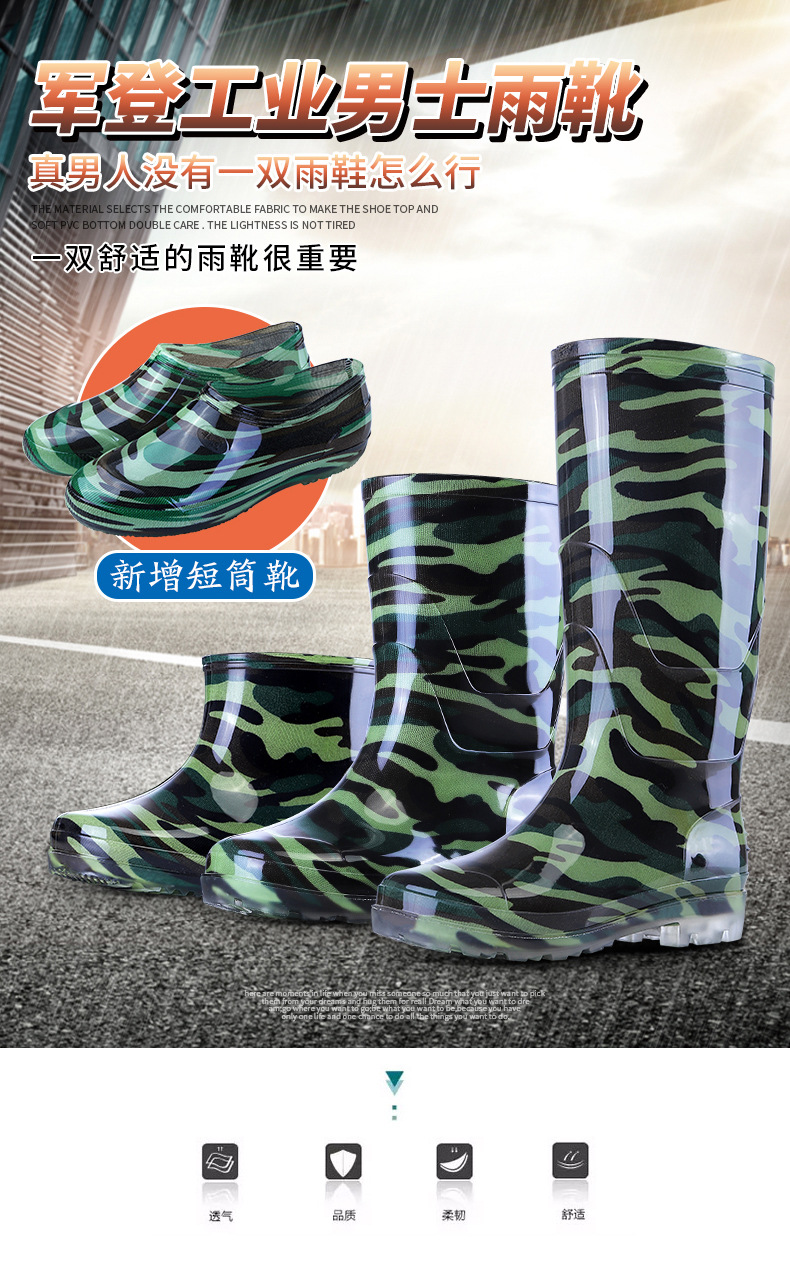 Jundeng 위장 비 신발 성인 플라스틱 비 신발 하이 탑 짧은 장화 방수 미끄럼 방지 수화 머리카락 세대
