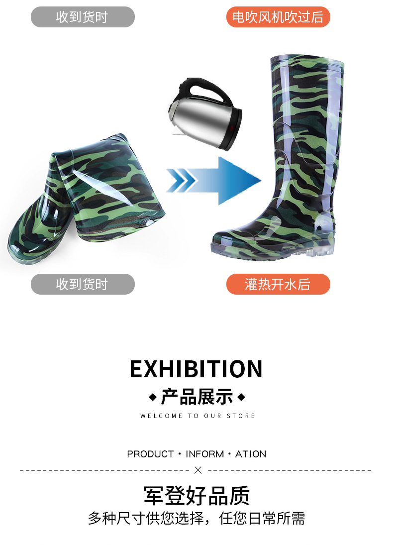 Jundeng 위장 비 신발 성인 플라스틱 비 신발 하이 탑 짧은 장화 방수 미끄럼 방지 수화 머리카락 세대스토어 가기