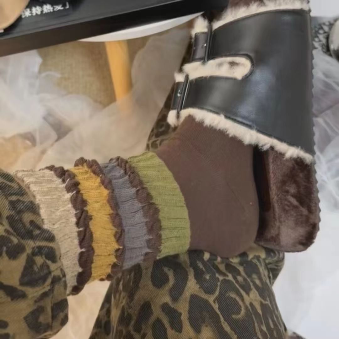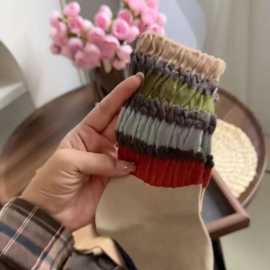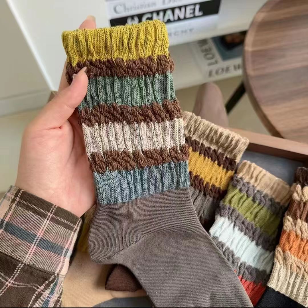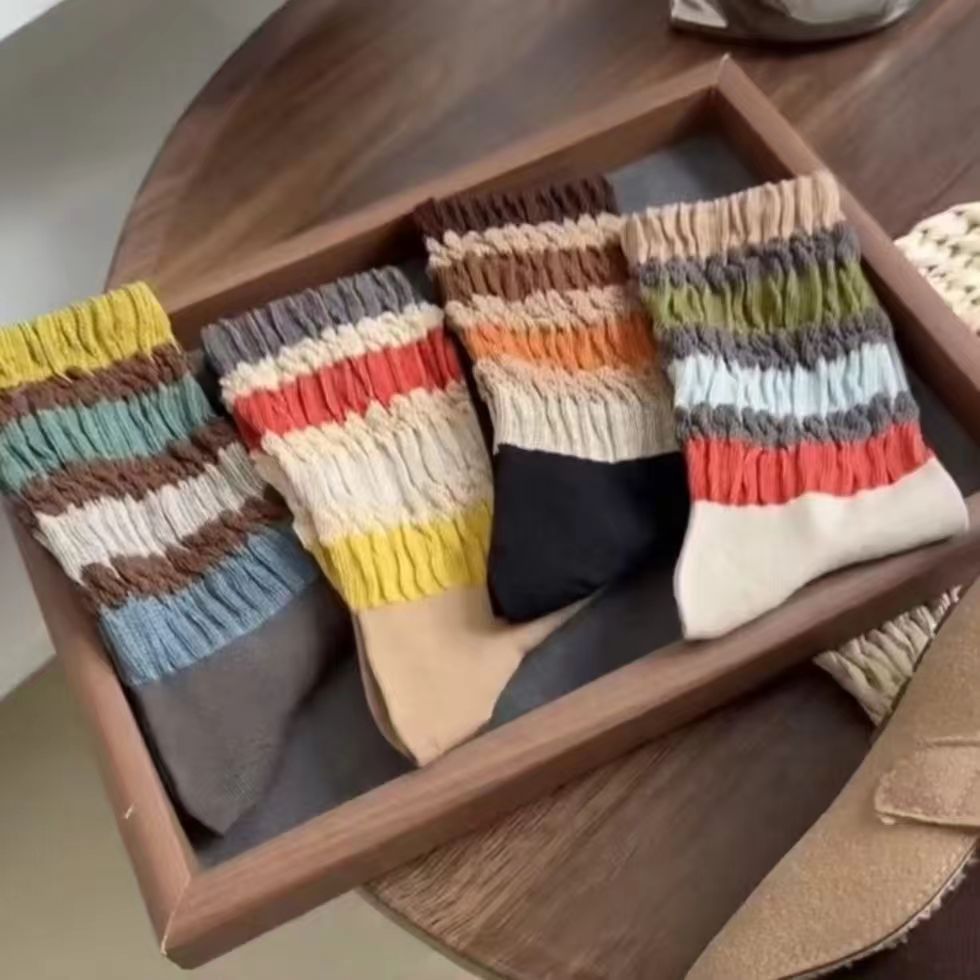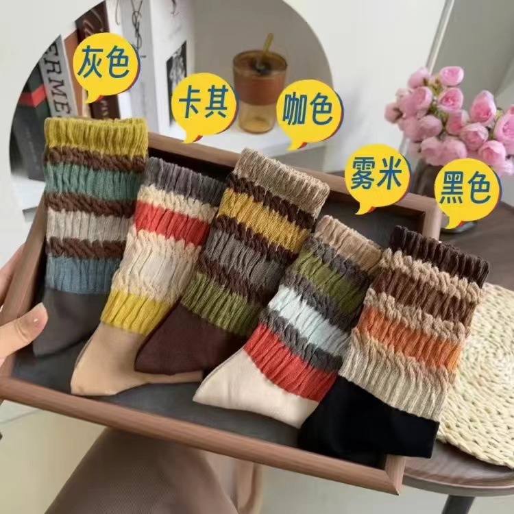 여성용 봄가을 양말, 발목을 조이지 않는 루즈핏 스타킹, 인터넷 유명인들의 나른한 스타일, 인스타 감성 한국 스타일, 스트라이프 무지개 레트로 롱삭스