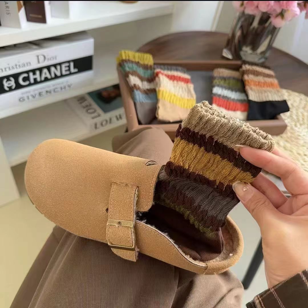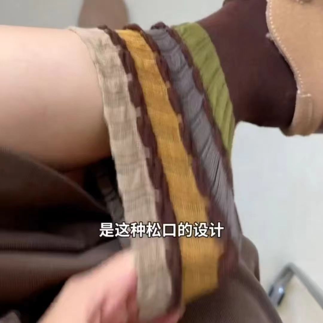 여성용 봄가을 양말, 발목을 조이지 않는 루즈핏 스타킹, 인터넷 유명인들의 나른한 스타일, 인스타 감성 한국 스타일, 스트라이프 무지개 레트로 롱삭스스토어 가기