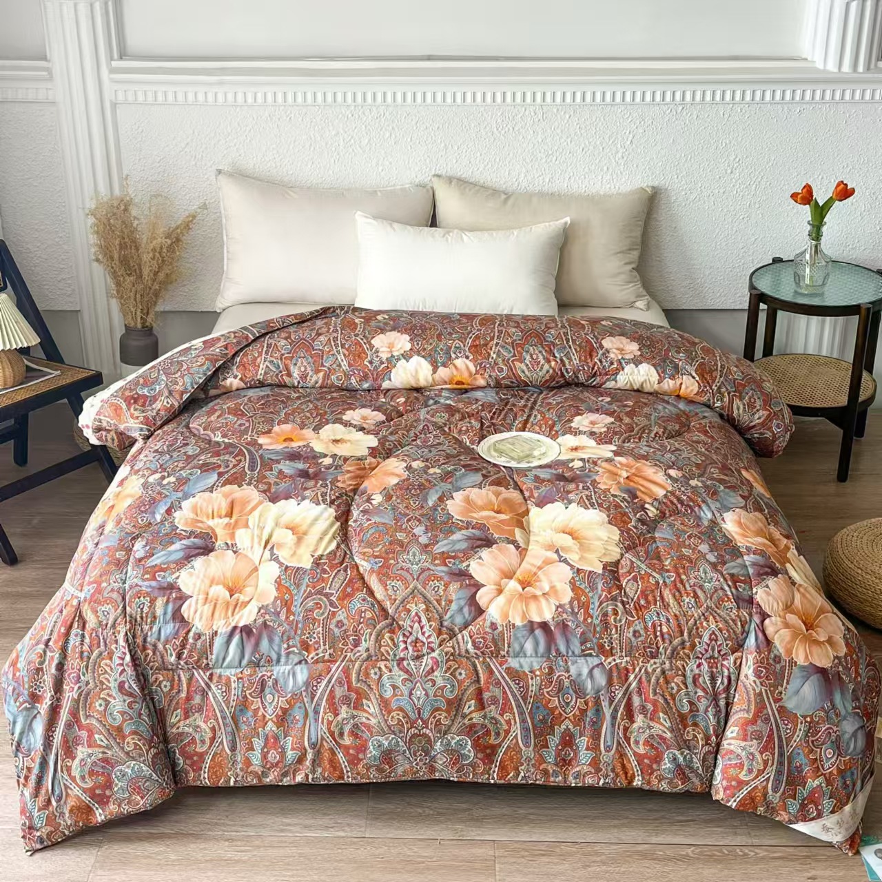 2026년 신형 실크 이불, 레트로 대형 꽃무늬 봄가을 이불, 누빔 면이불, 이불심, 침구 제조업체 도매