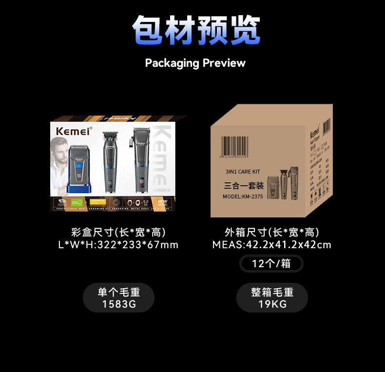국경 간 KM-2375 Kemei 헤어 클리퍼 세트 헤어 살롱 특수 헤어 클리퍼 면도기 오일 헤드 조각 클리퍼