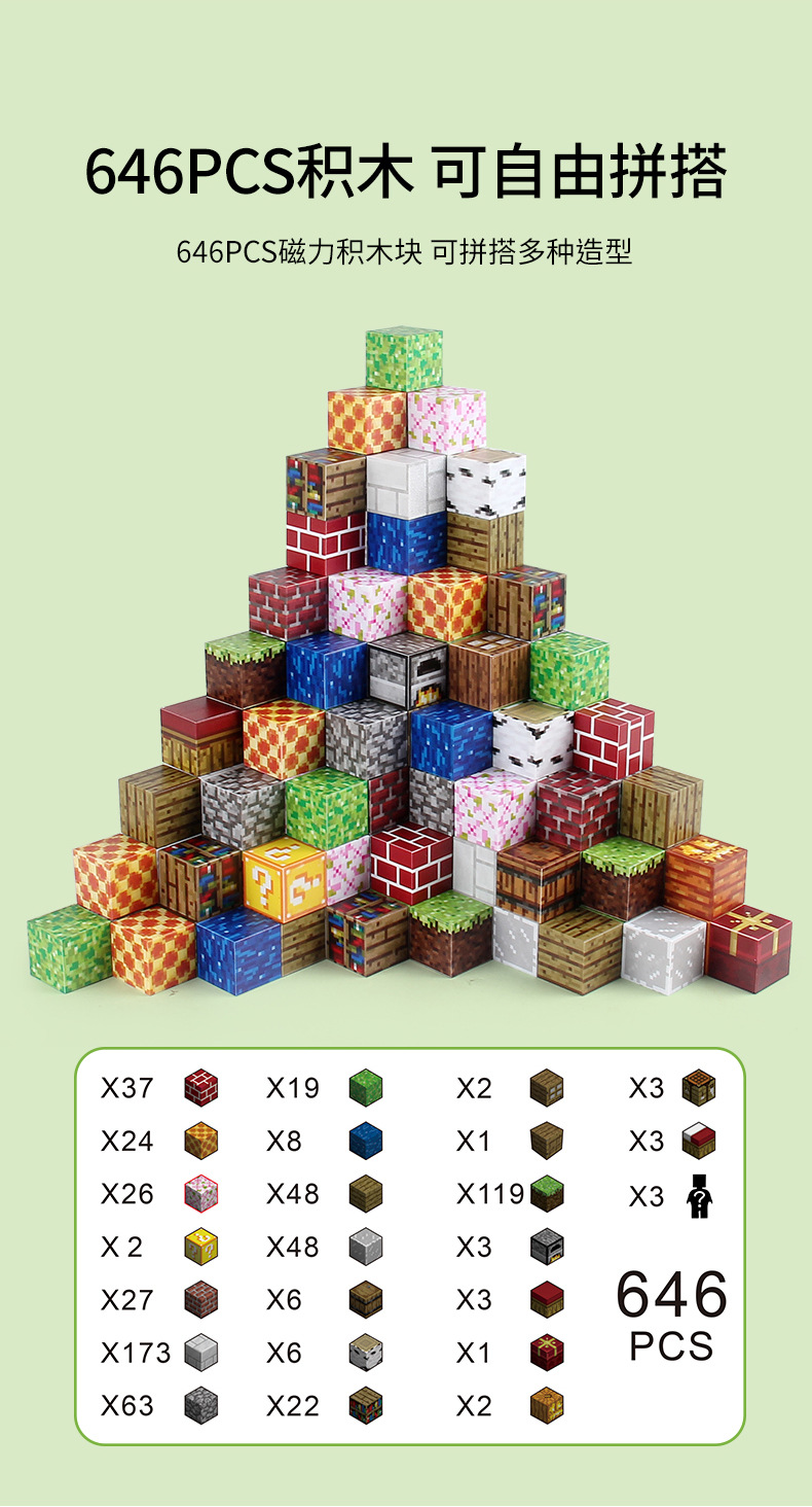 MC 미니 세계 퍼즐 장난감 게임 약 2.3cm 자기 상자 646pcs 저장 상자 세트