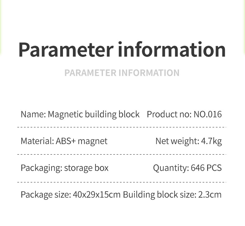 • 016 보관함 세트 2.3cm 자기 빌딩 블록 646PCS-4.7KG