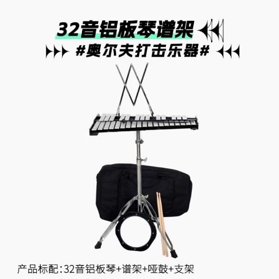 • 32음 실로폰 + 무음 드럼 + 도금 삼각대 + 악기 가방