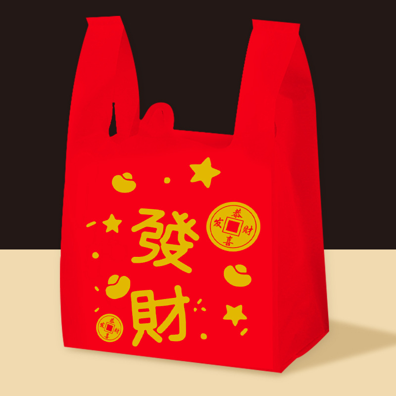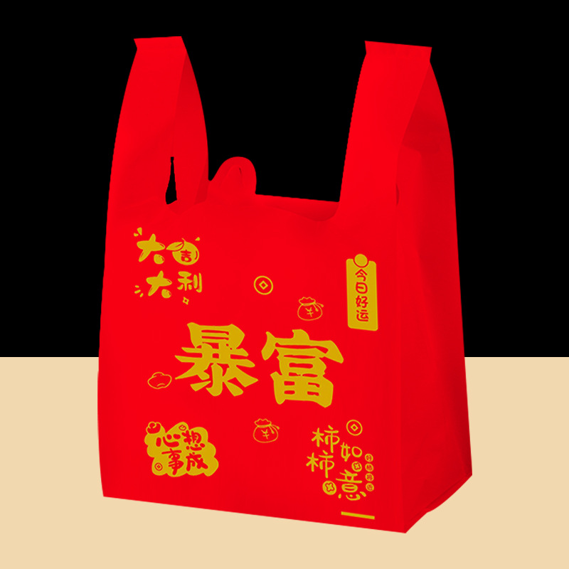 그물 레드 새로운 컬러 테이크 아웃 포장 가방 만화 케이터링 토트 백 두꺼운 슈퍼마켓 쇼핑 조끼 가방 도매스토어 가기