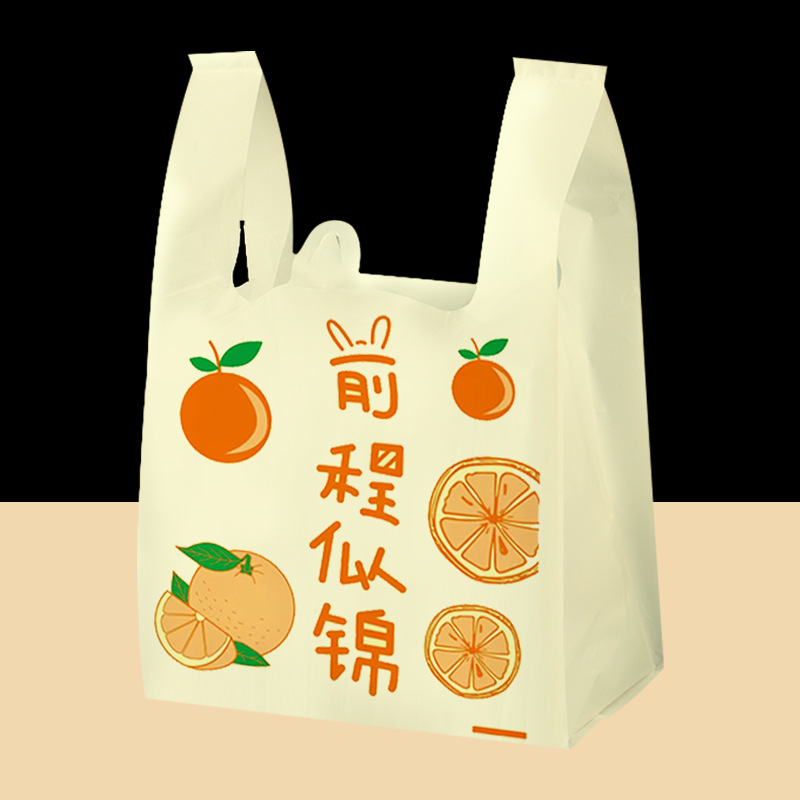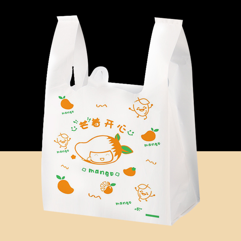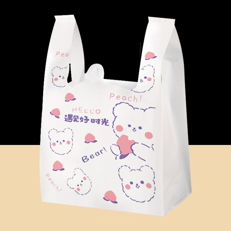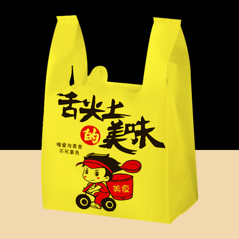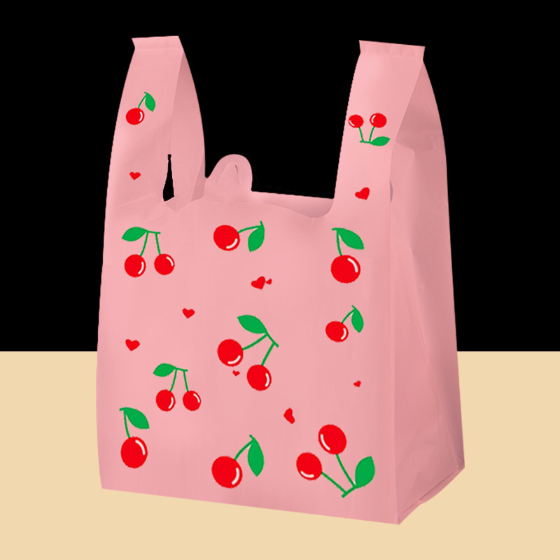 그물 레드 새로운 컬러 테이크 아웃 포장 가방 만화 케이터링 토트 백 두꺼운 슈퍼마켓 쇼핑 조끼 가방 도매