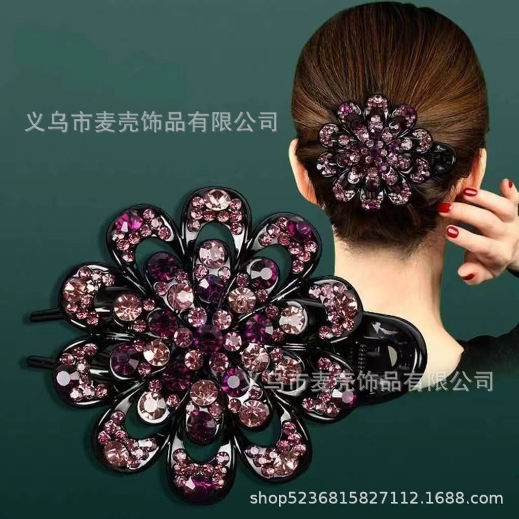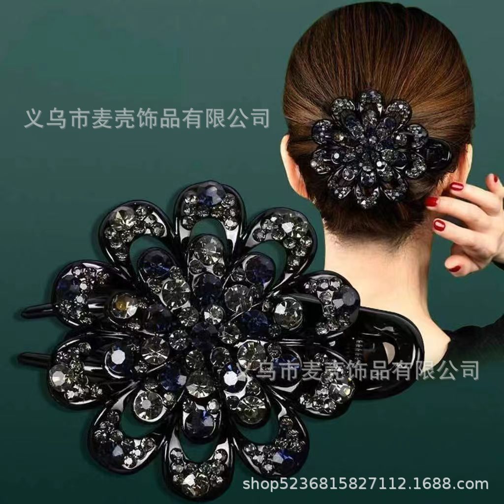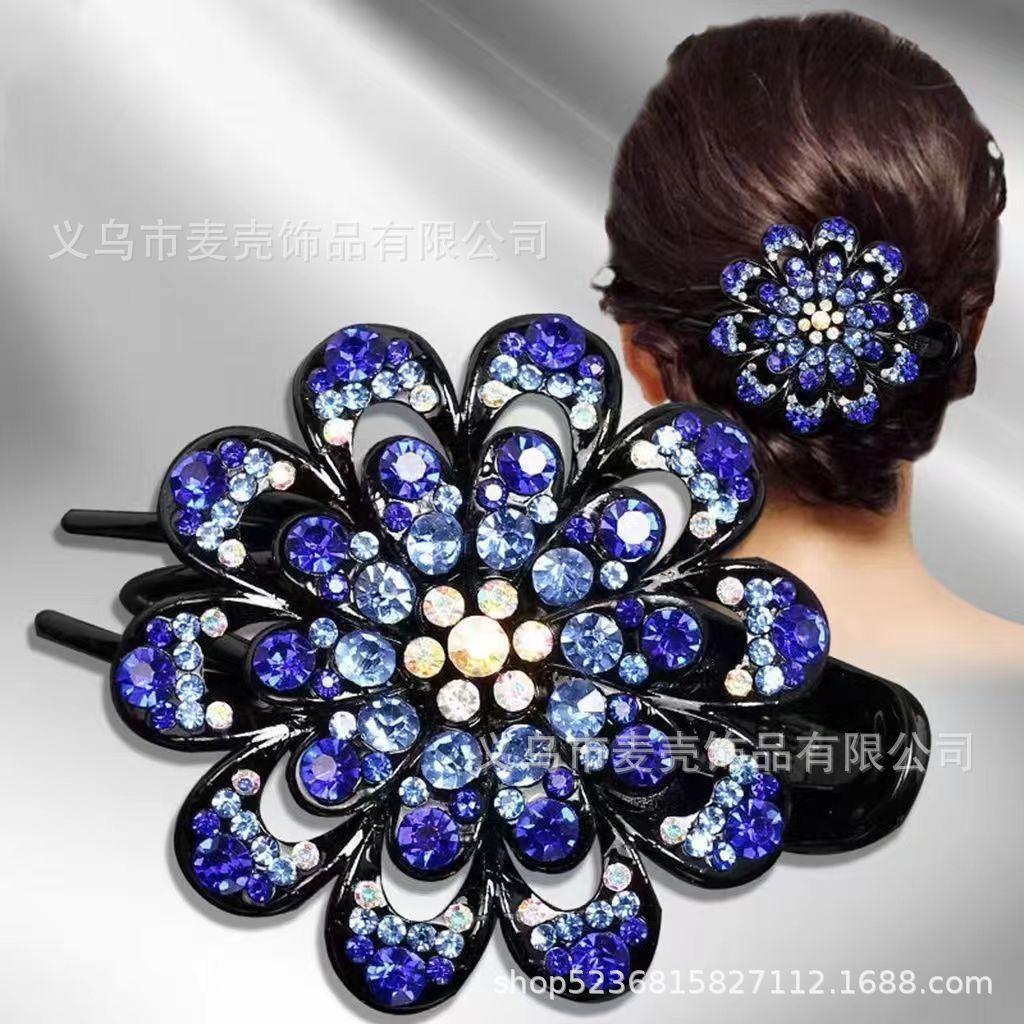 한국 도매 모조 다이아몬드 꽃 3 이빨 덕빌 클립 머리 장식 머리핀 머리핀 잡아 클립 헤어 액세서리 머리 뒤로 큰 머리
