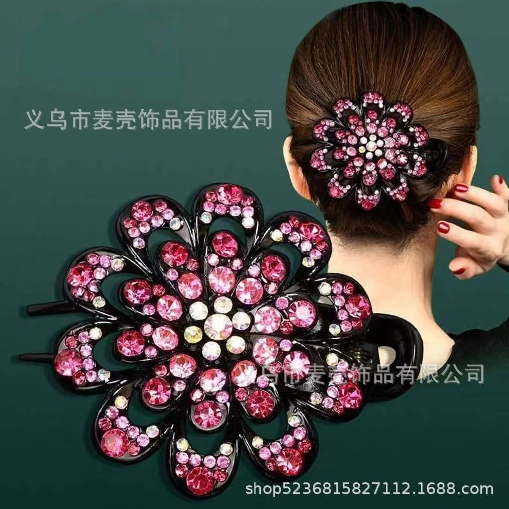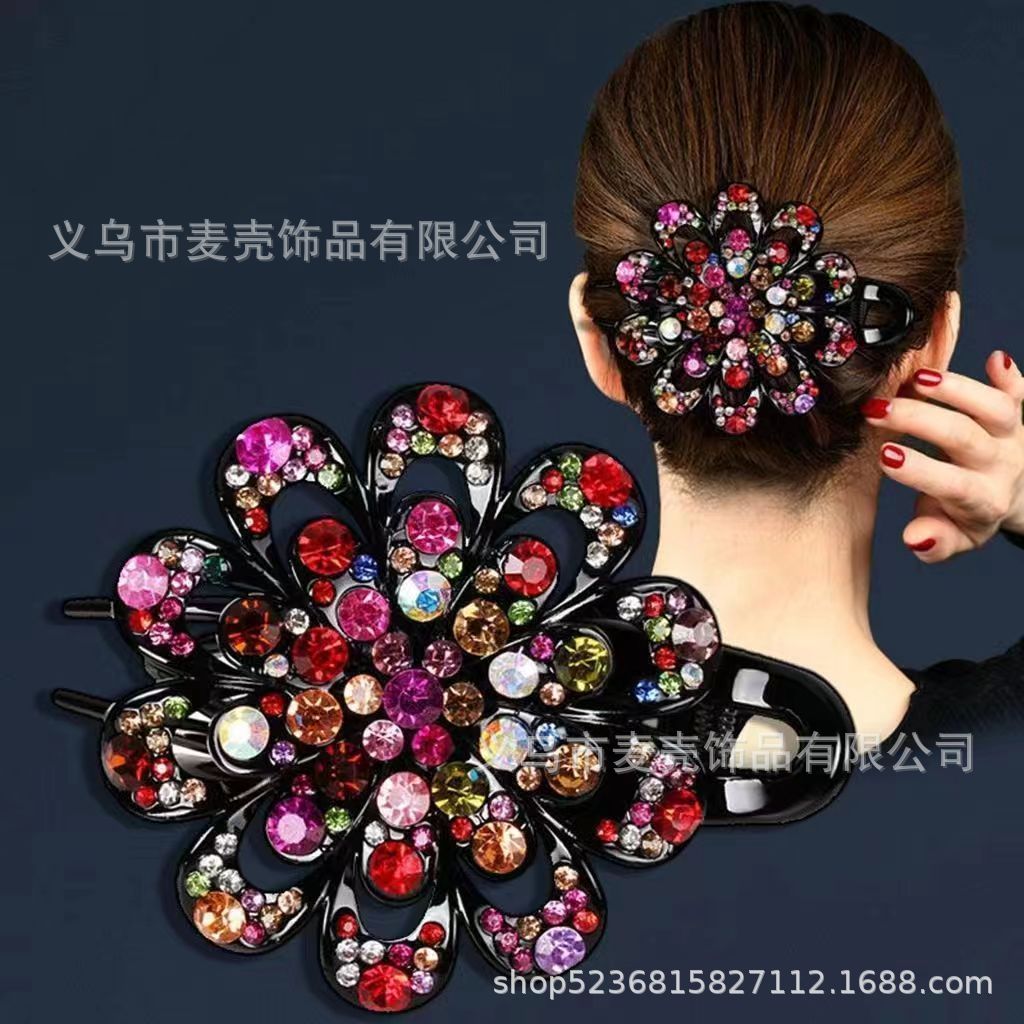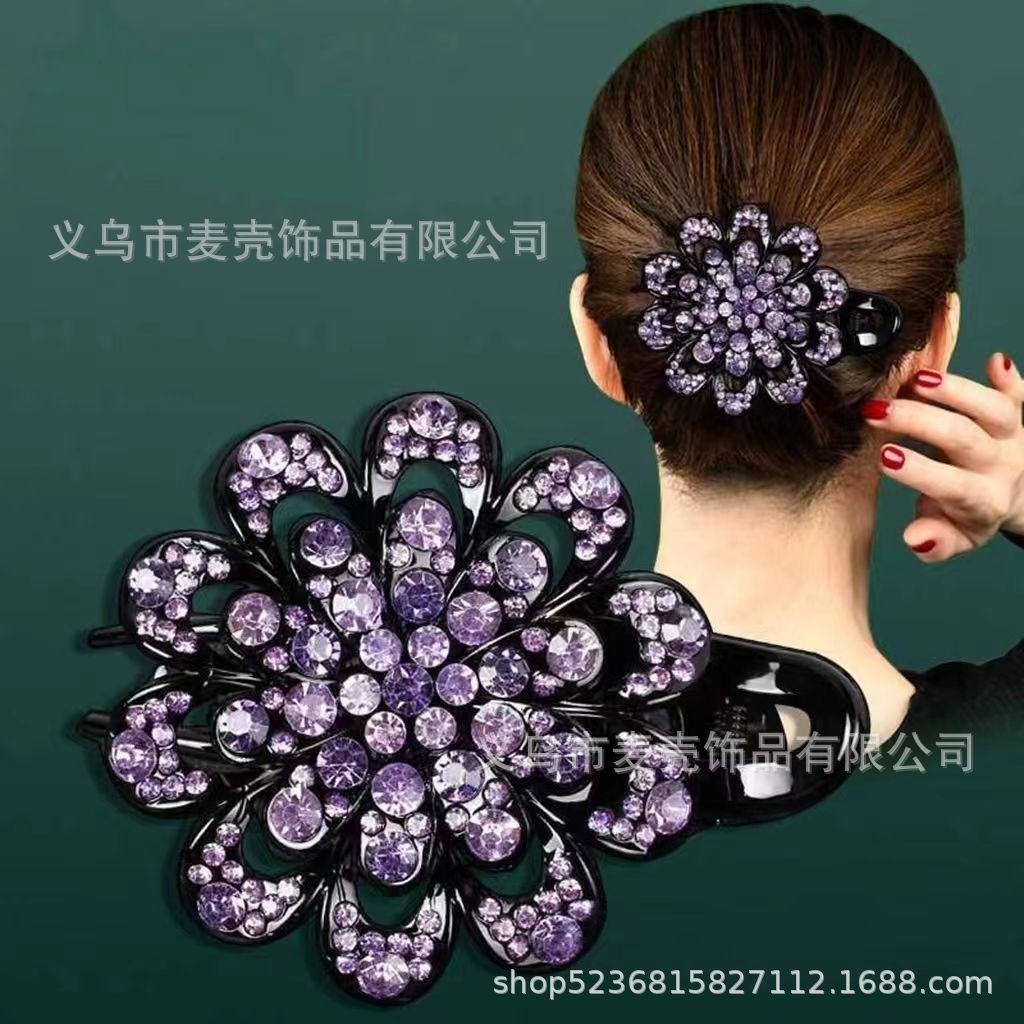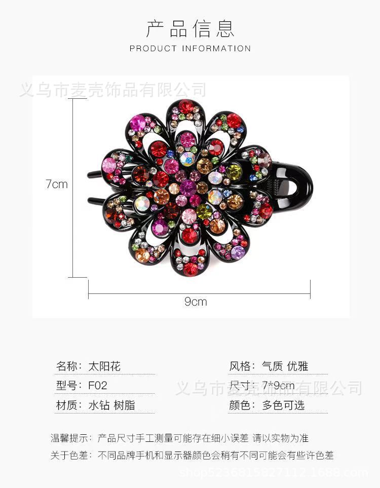 한국 도매 모조 다이아몬드 꽃 3 이빨 덕빌 클립 머리 장식 머리핀 머리핀 잡아 클립 헤어 액세서리 머리 뒤로 큰 머리