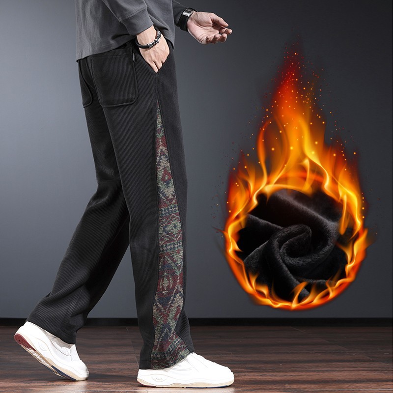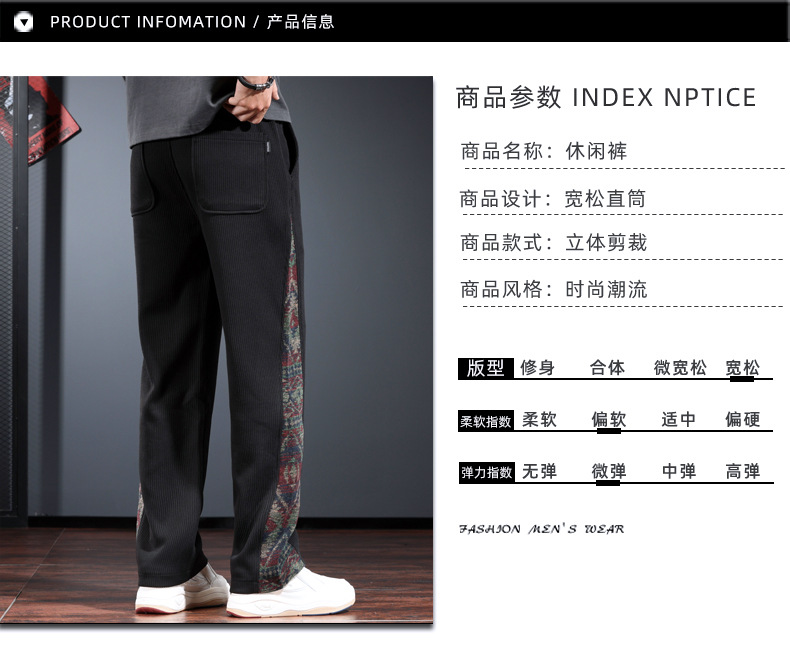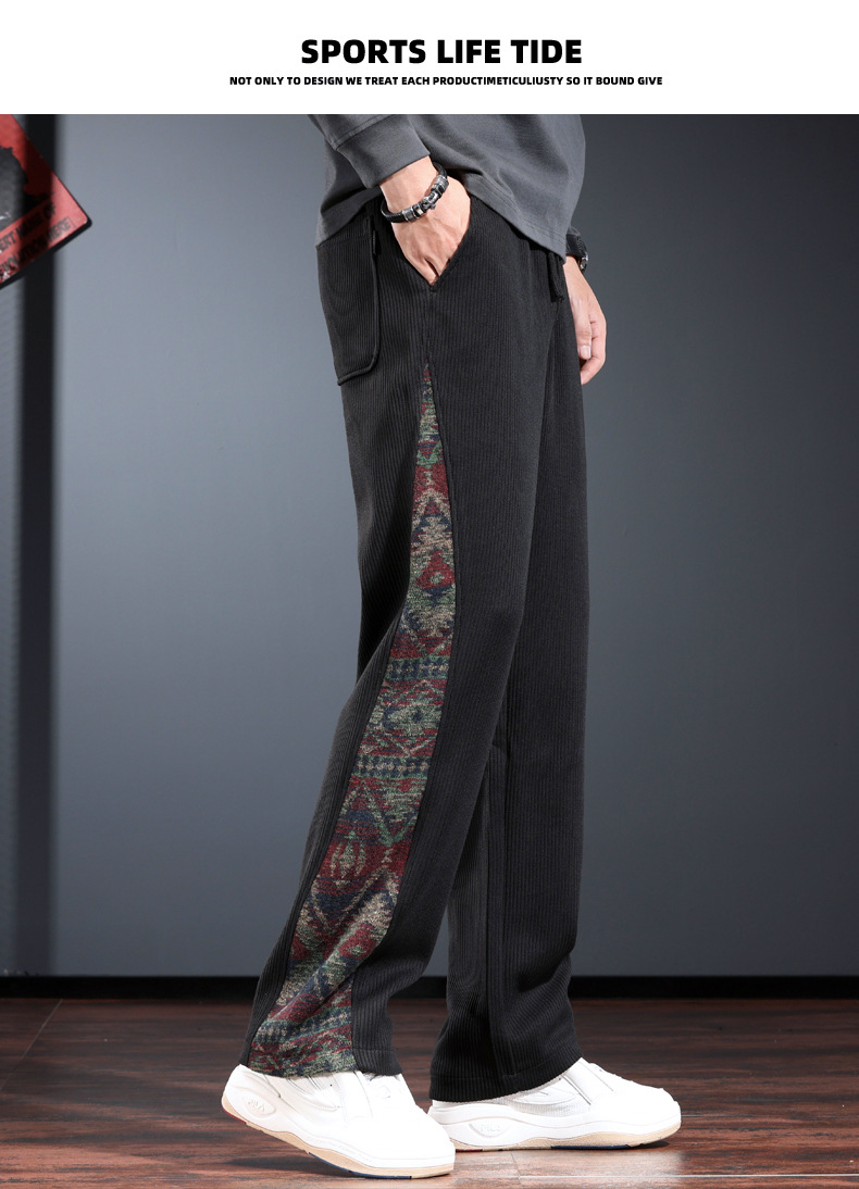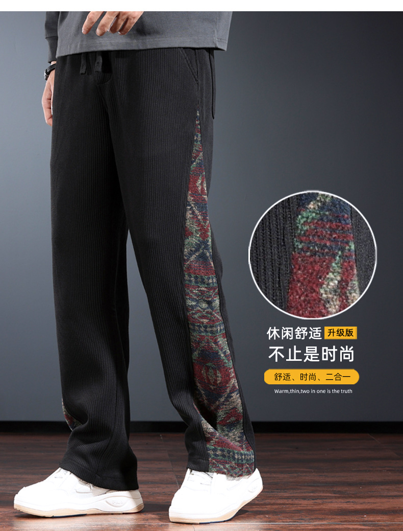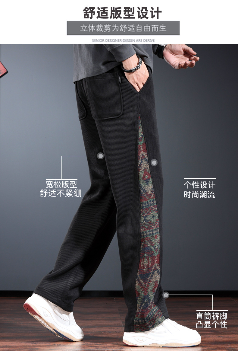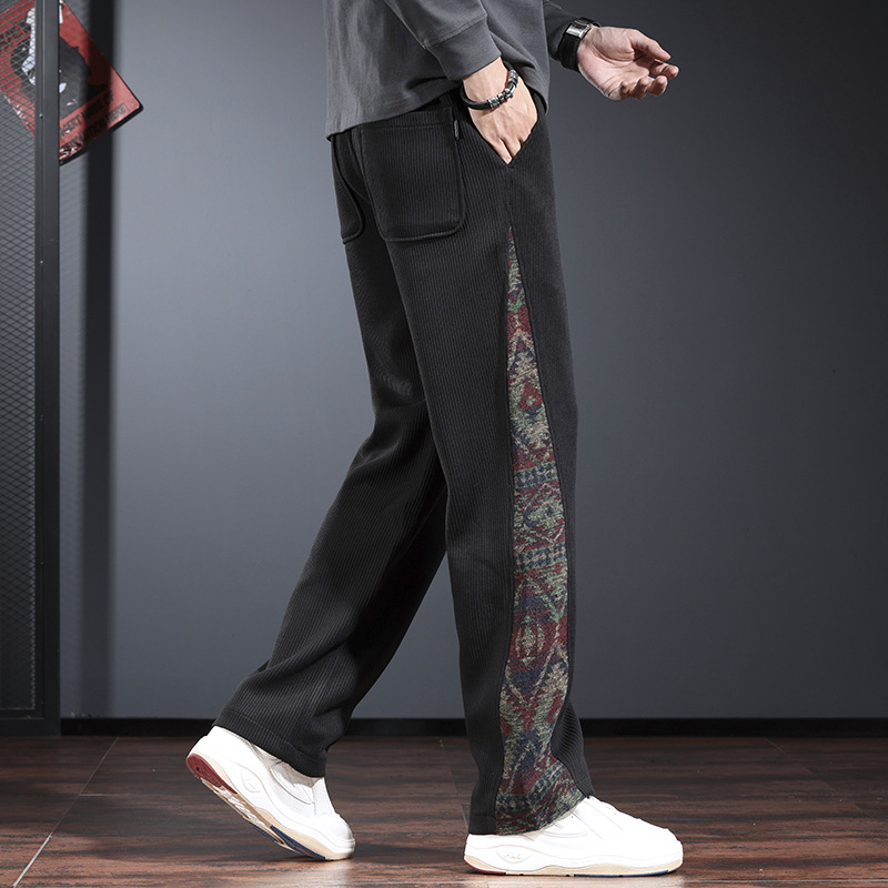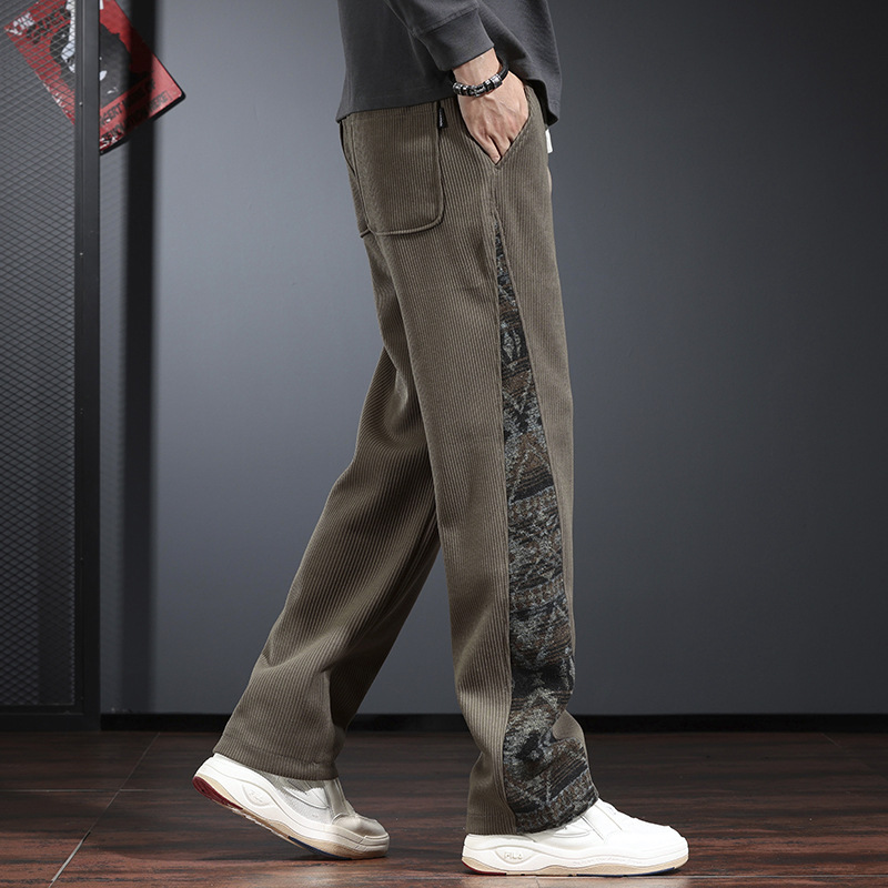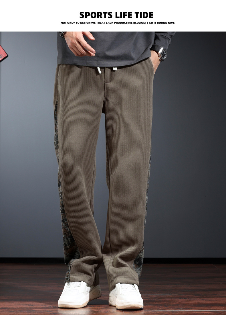 트렌디 한 브랜드 캐주얼 바지 남자의 느슨한 직선 다리 넓은 다리 바지 2024 가을과 겨울을위한 위장 색상 매칭 바지