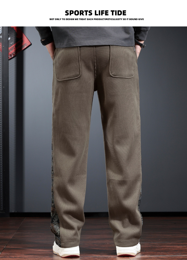 트렌디 한 브랜드 캐주얼 바지 남자의 느슨한 직선 다리 넓은 다리 바지 2024 가을과 겨울을위한 위장 색상 매칭 바지스토어 가기