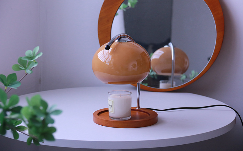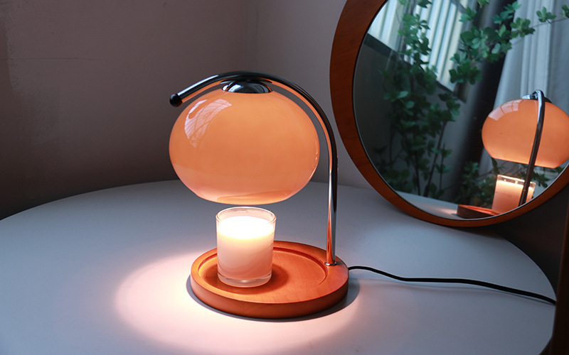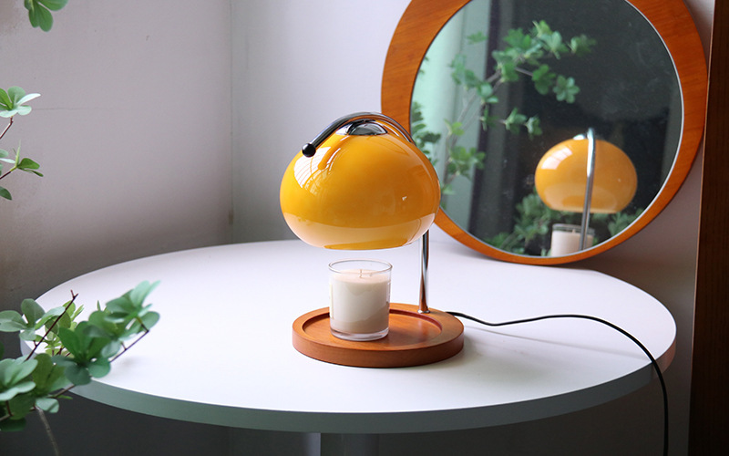 오렌지 용융 왁스 램프 한국 인 중간 유리 테이블 램프 캔들 홀더 온도 조절 침실 램프 유리 대기 장식 램프