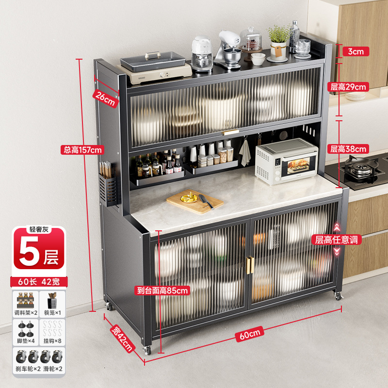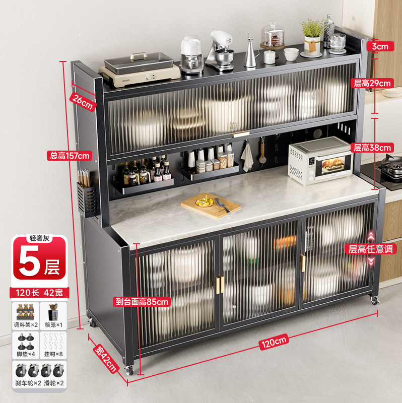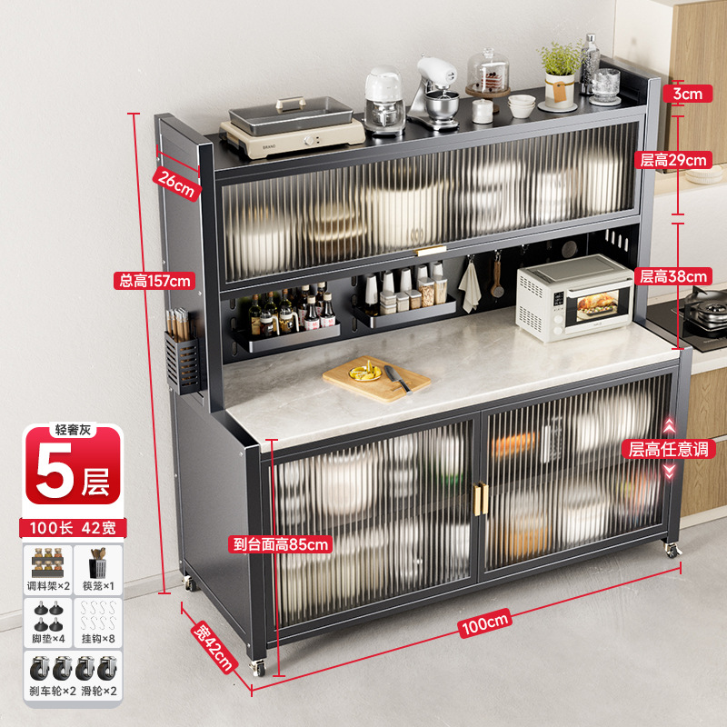 록 보드 사이드 보드 캐비닛 주방 스토리지 랙 바닥 다층 다기능 자기 흡수 캐비닛 도어 조절 가능한 바닥 높이 락 보드 콘솔