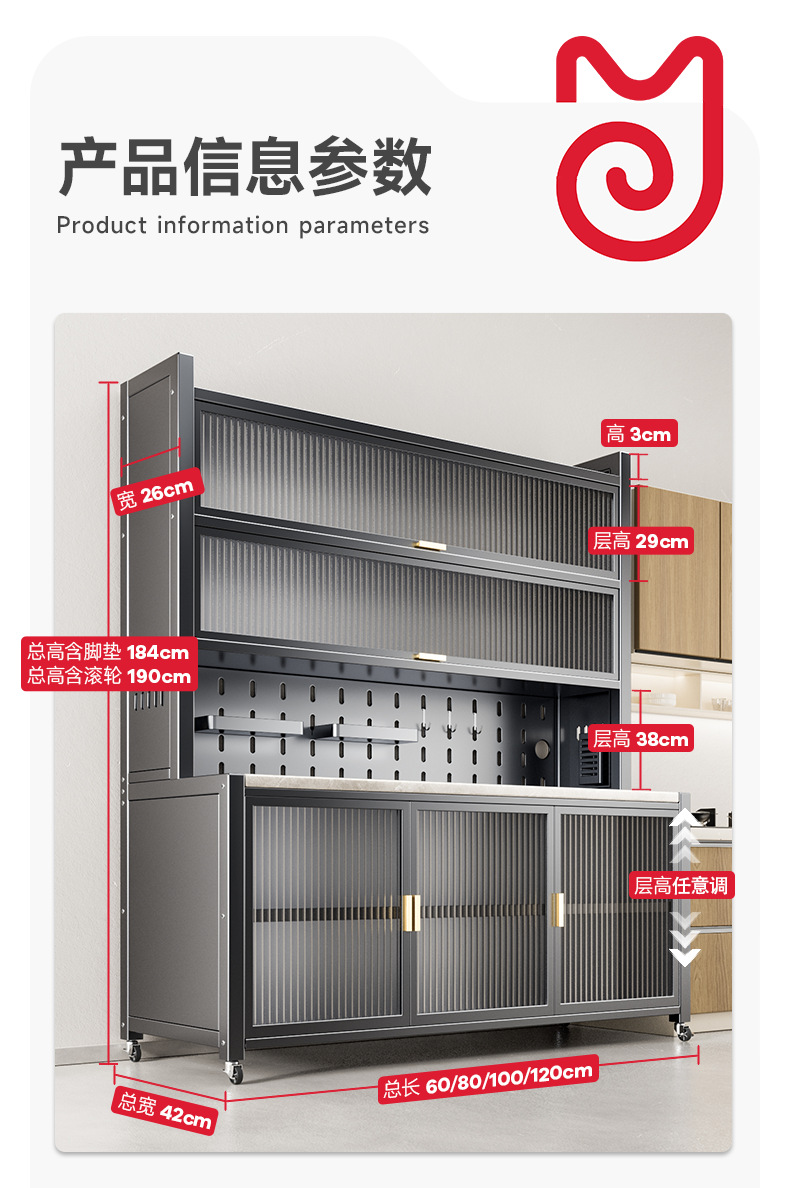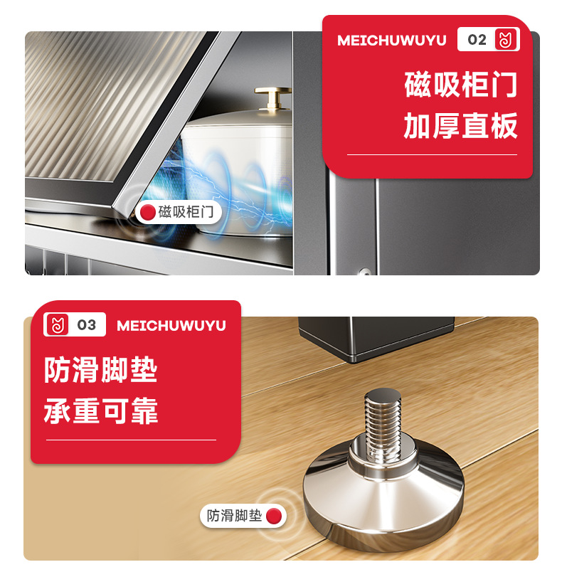 록 보드 사이드 보드 캐비닛 주방 스토리지 랙 바닥 다층 다기능 자기 흡수 캐비닛 도어 조절 가능한 바닥 높이 락 보드 콘솔스토어 가기