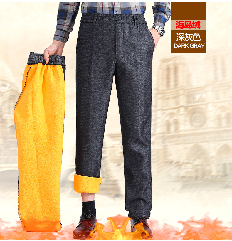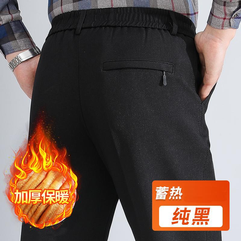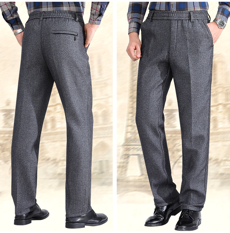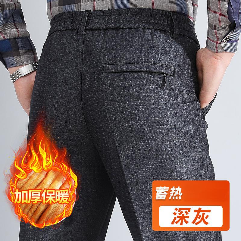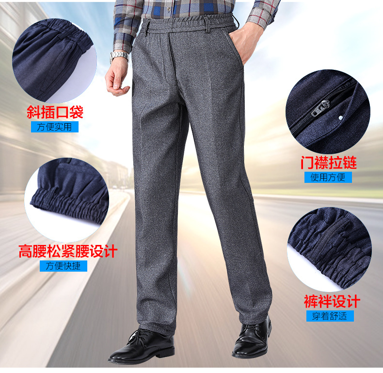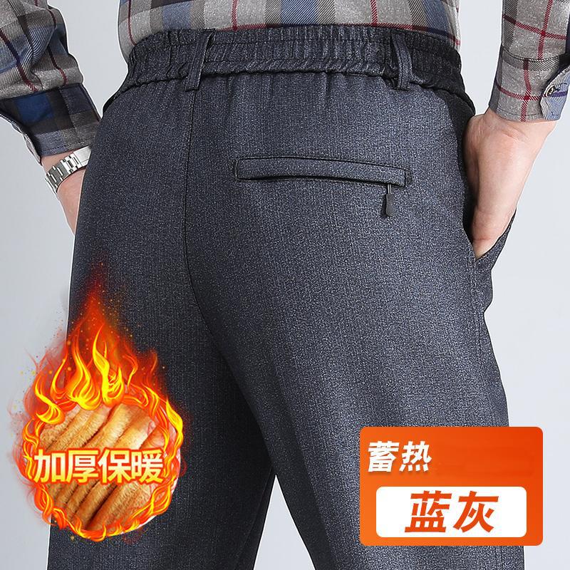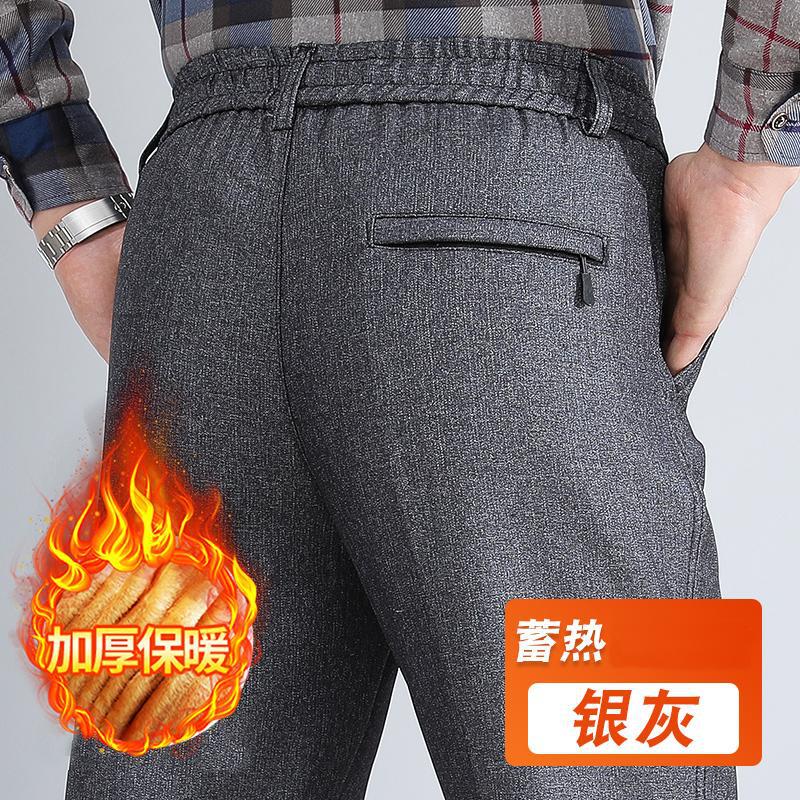 기모 두꺼운 겨울 아빠 바지 중년 및 노인 남성 바지 탄력 허리 남성 바지 할아버지 바지 남자 캐주얼 바지