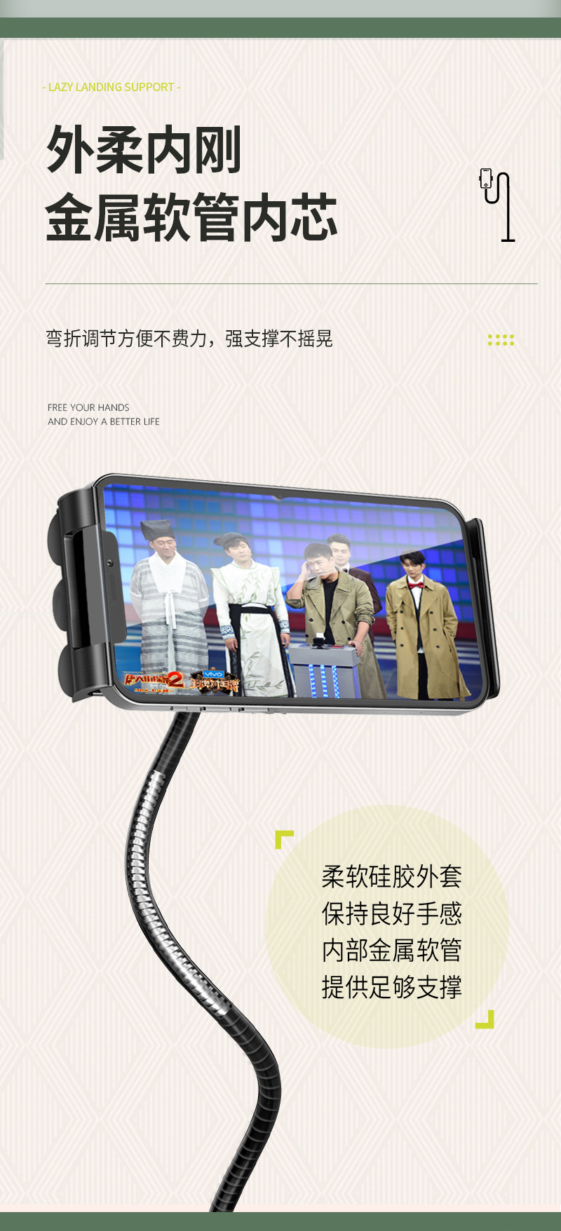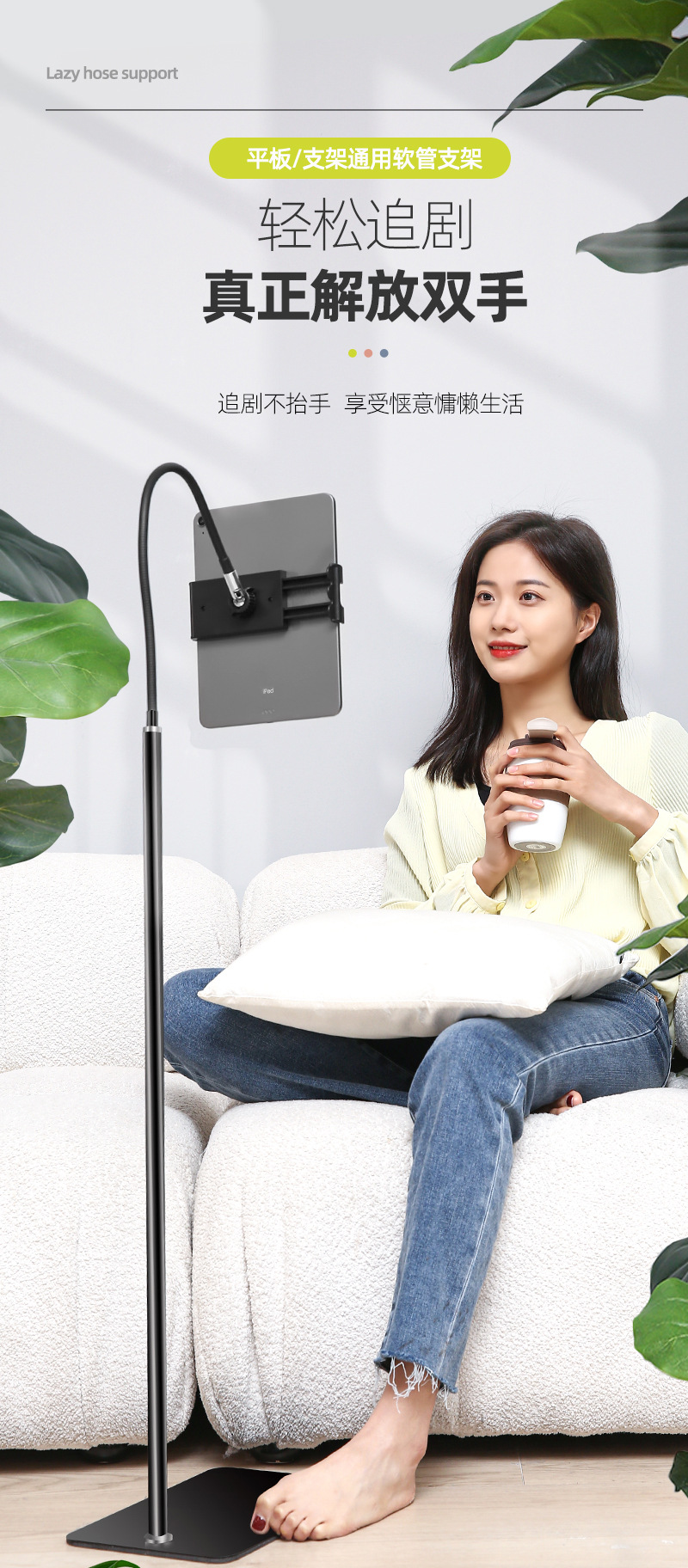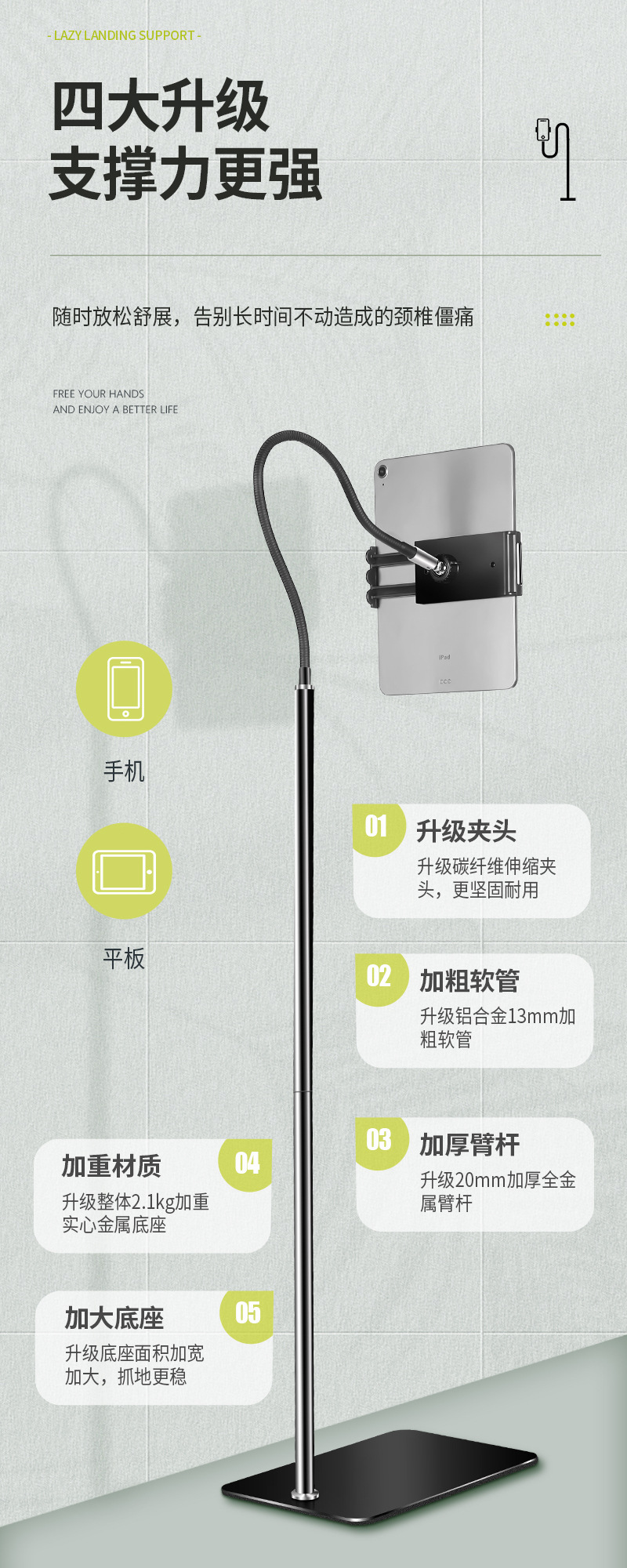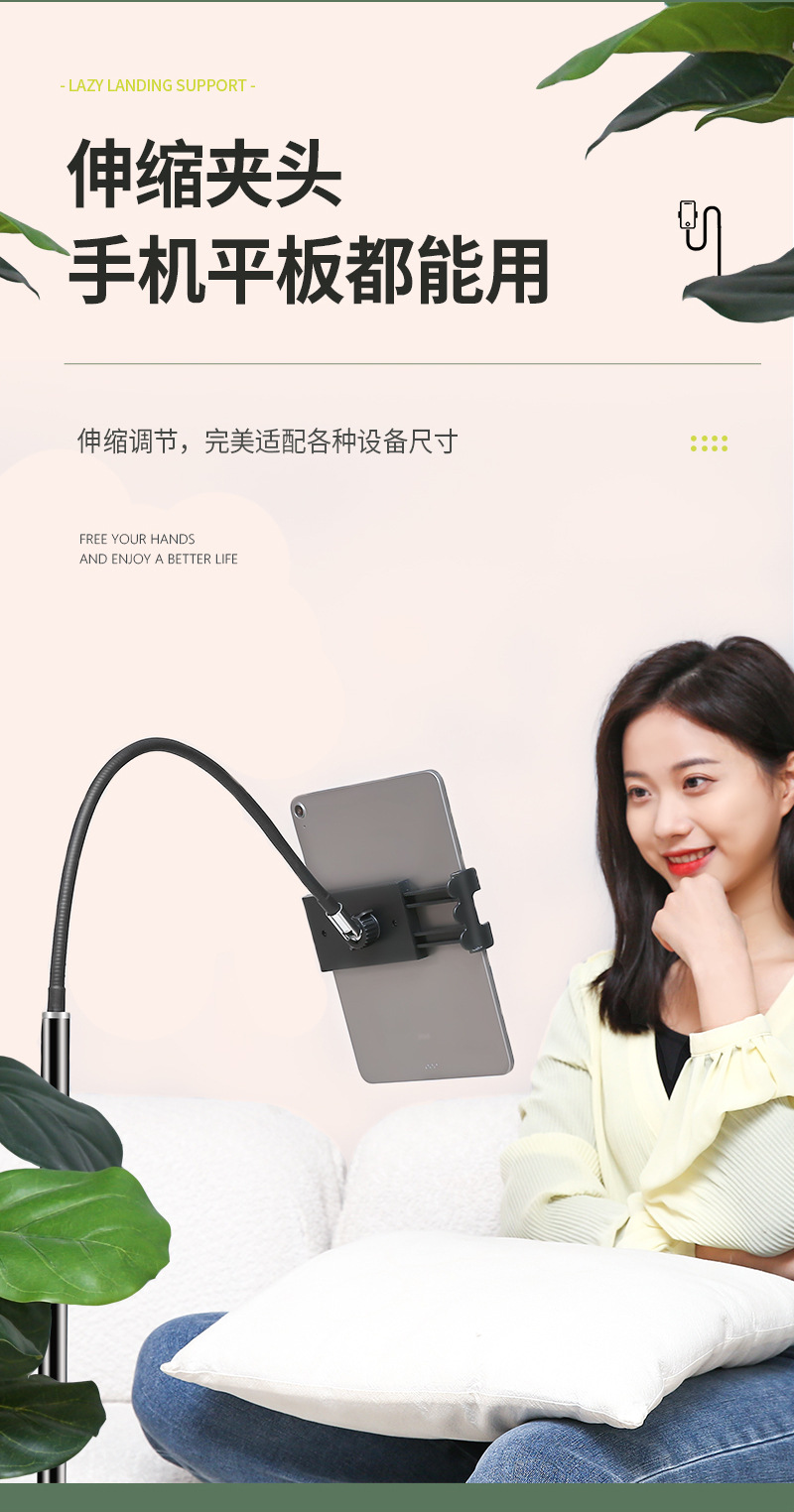 【대형】플랫컴퓨터 스탠드 침대 옆 가정용 라이브 방송 지지대 클립 실리콘 소프트 튜브 손 안정화스토어 가기