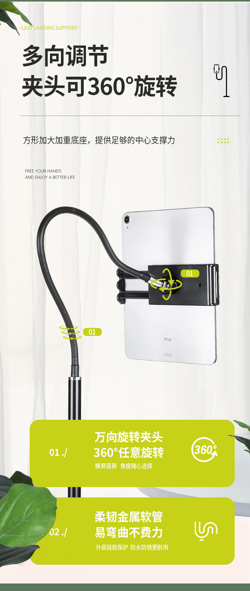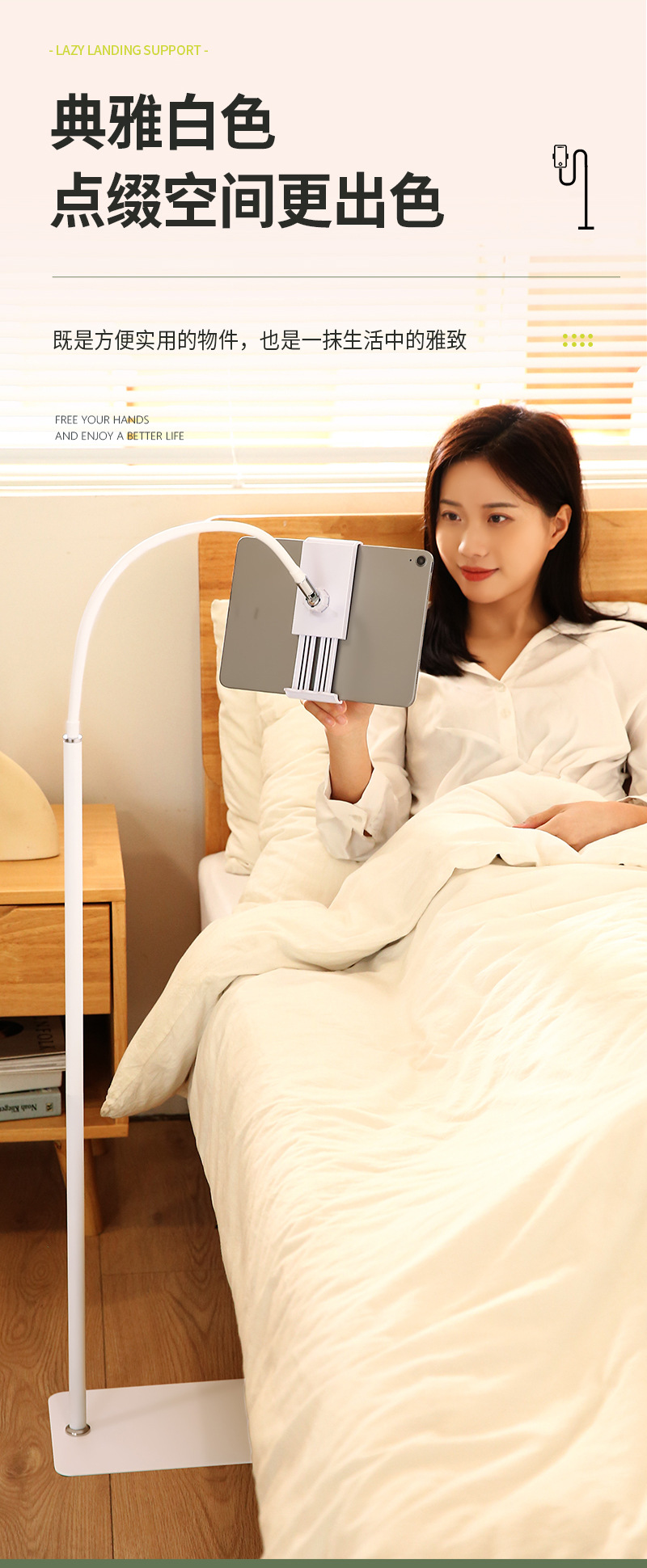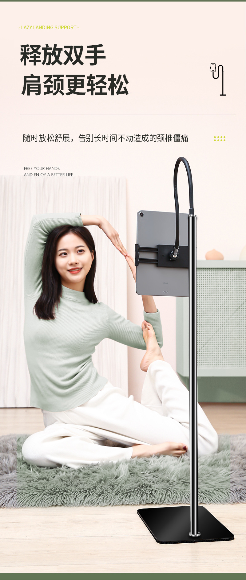 【대형】플랫컴퓨터 스탠드 침대 옆 가정용 라이브 방송 지지대 클립 실리콘 소프트 튜브 손 안정화스토어 가기