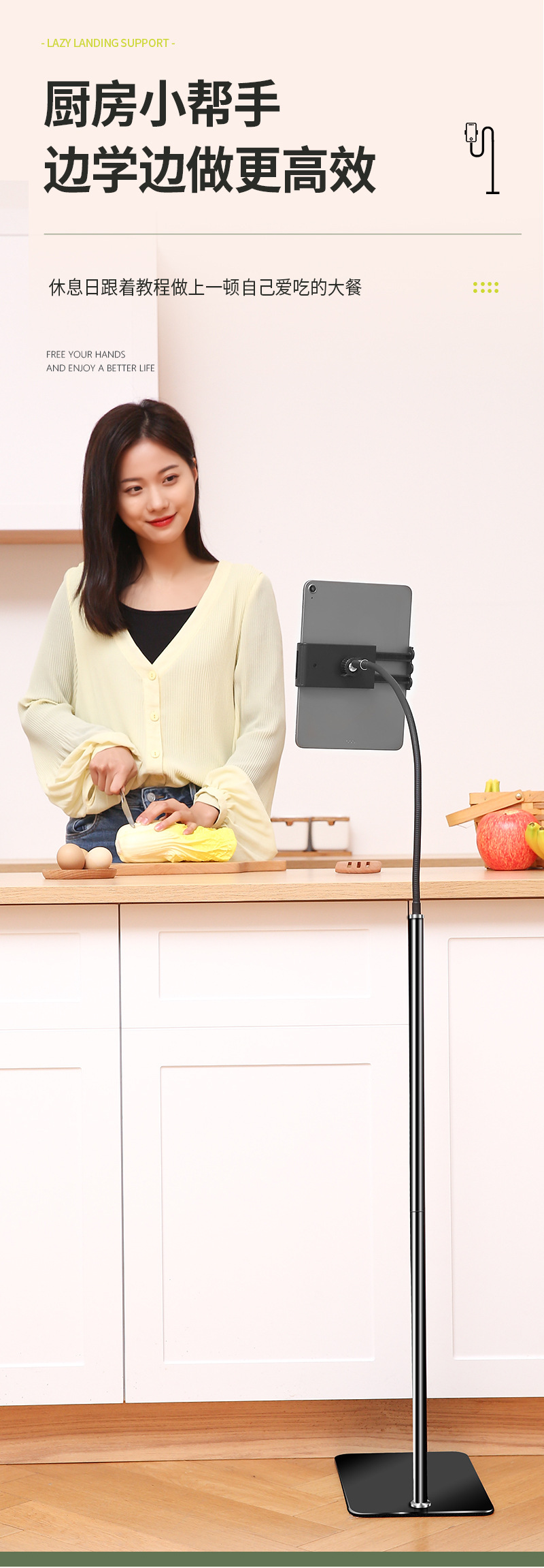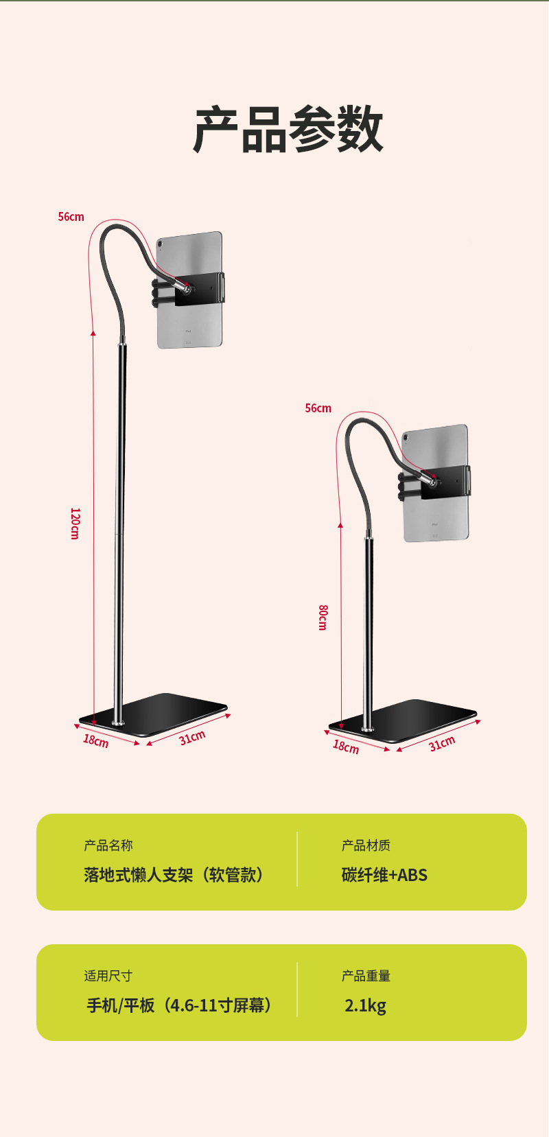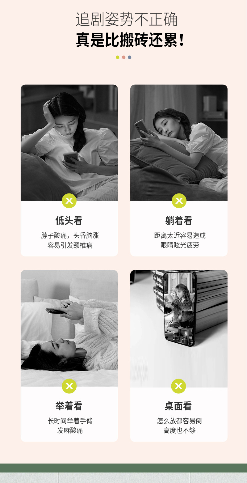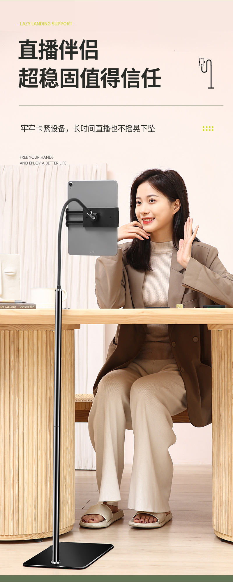 【대형】플랫컴퓨터 스탠드 침대 옆 가정용 라이브 방송 지지대 클립 실리콘 소프트 튜브 손 안정화스토어 가기