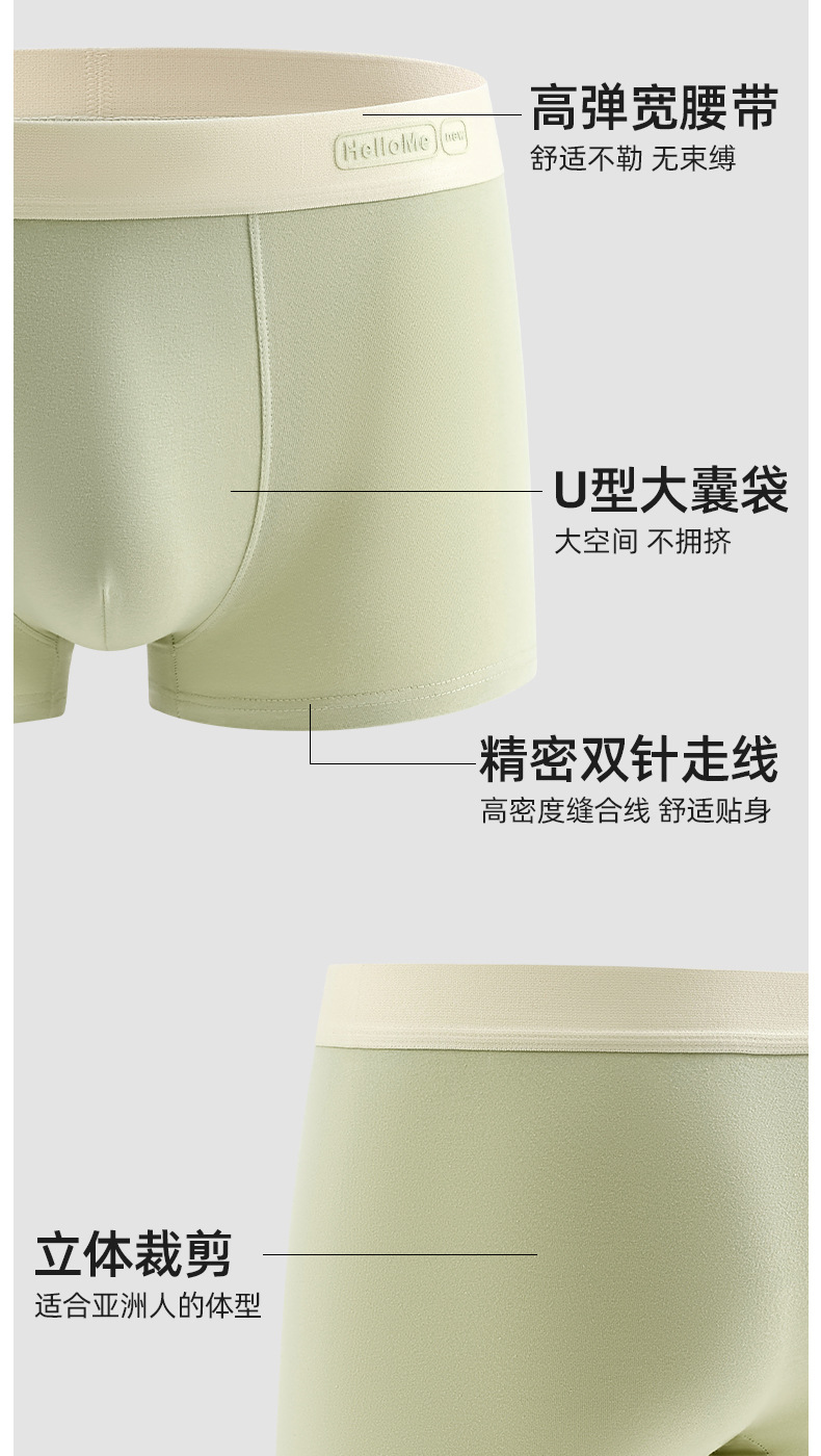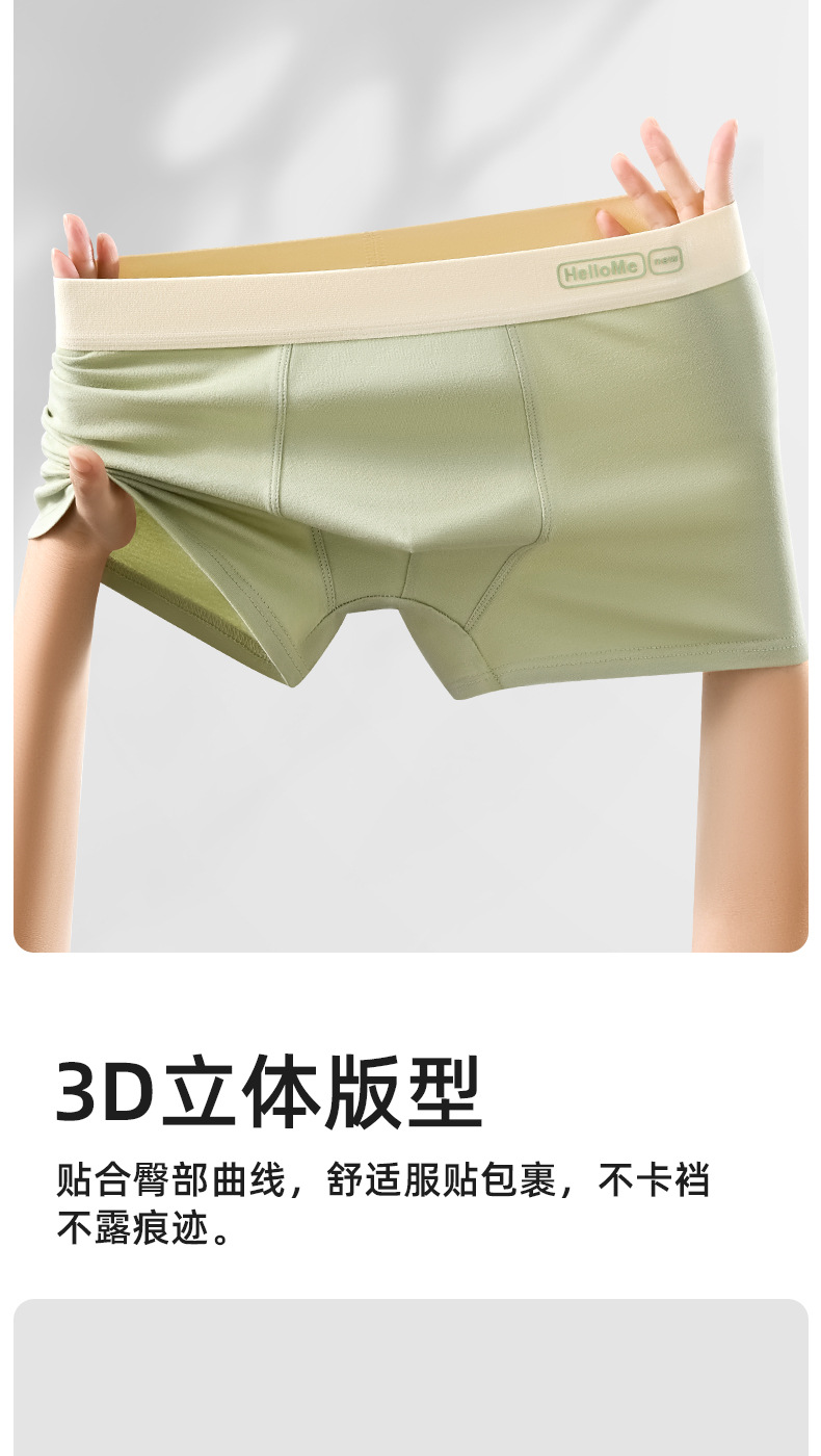 男士内裤7A抗菌裆高支高密面料紧密细致透气柔软3D立体男士平角裤