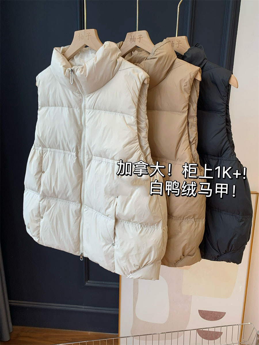 캐나다! 캐비닛에 1K! D 흰 오리 다운 조끼! 여자의 새로운 겨울 24 두꺼운 느슨한 허리 코트 칼라스토어 가기