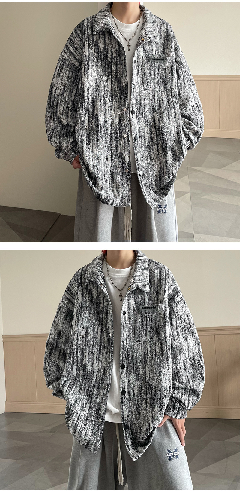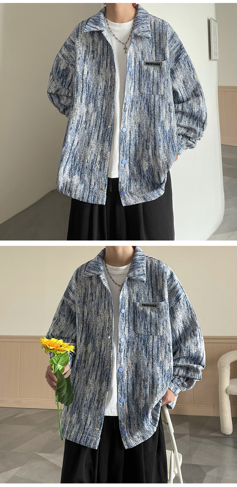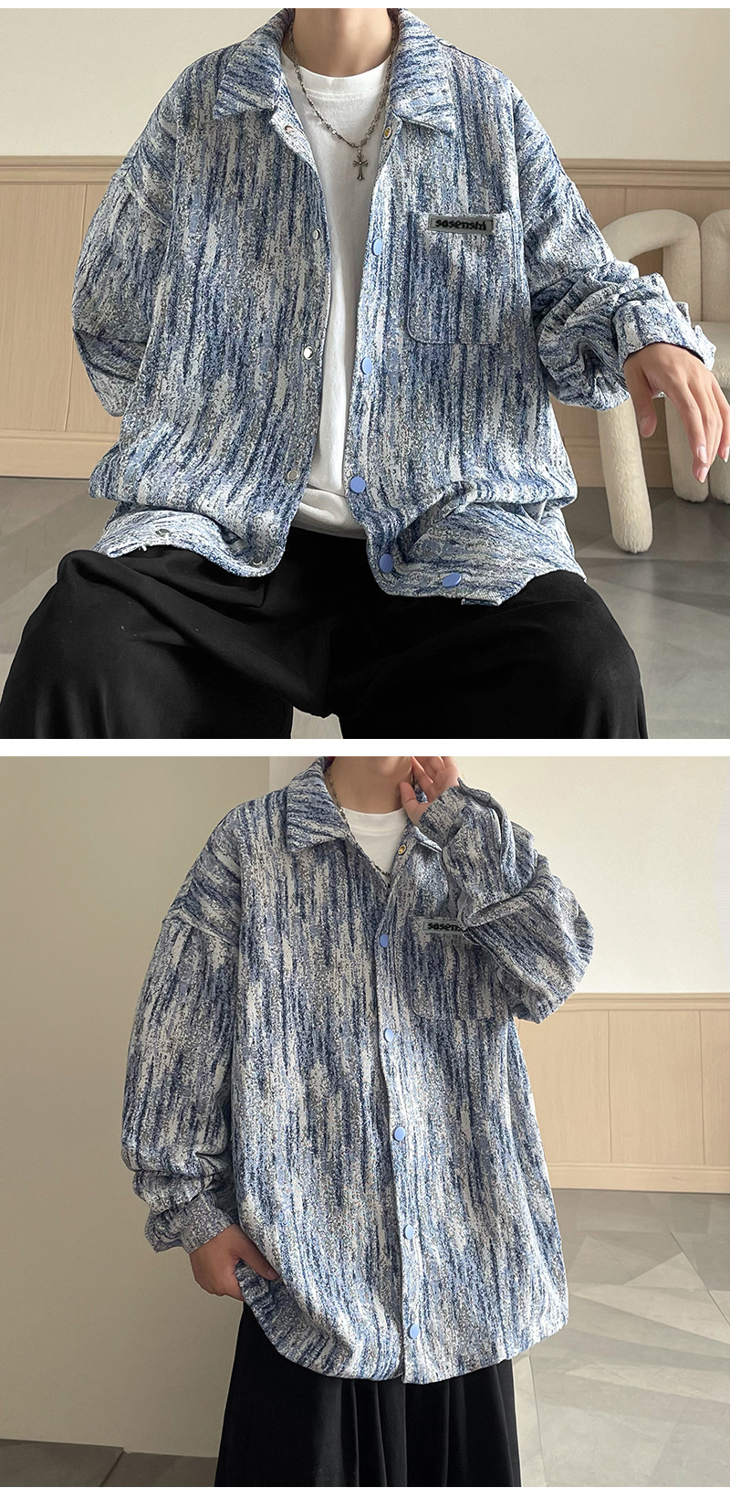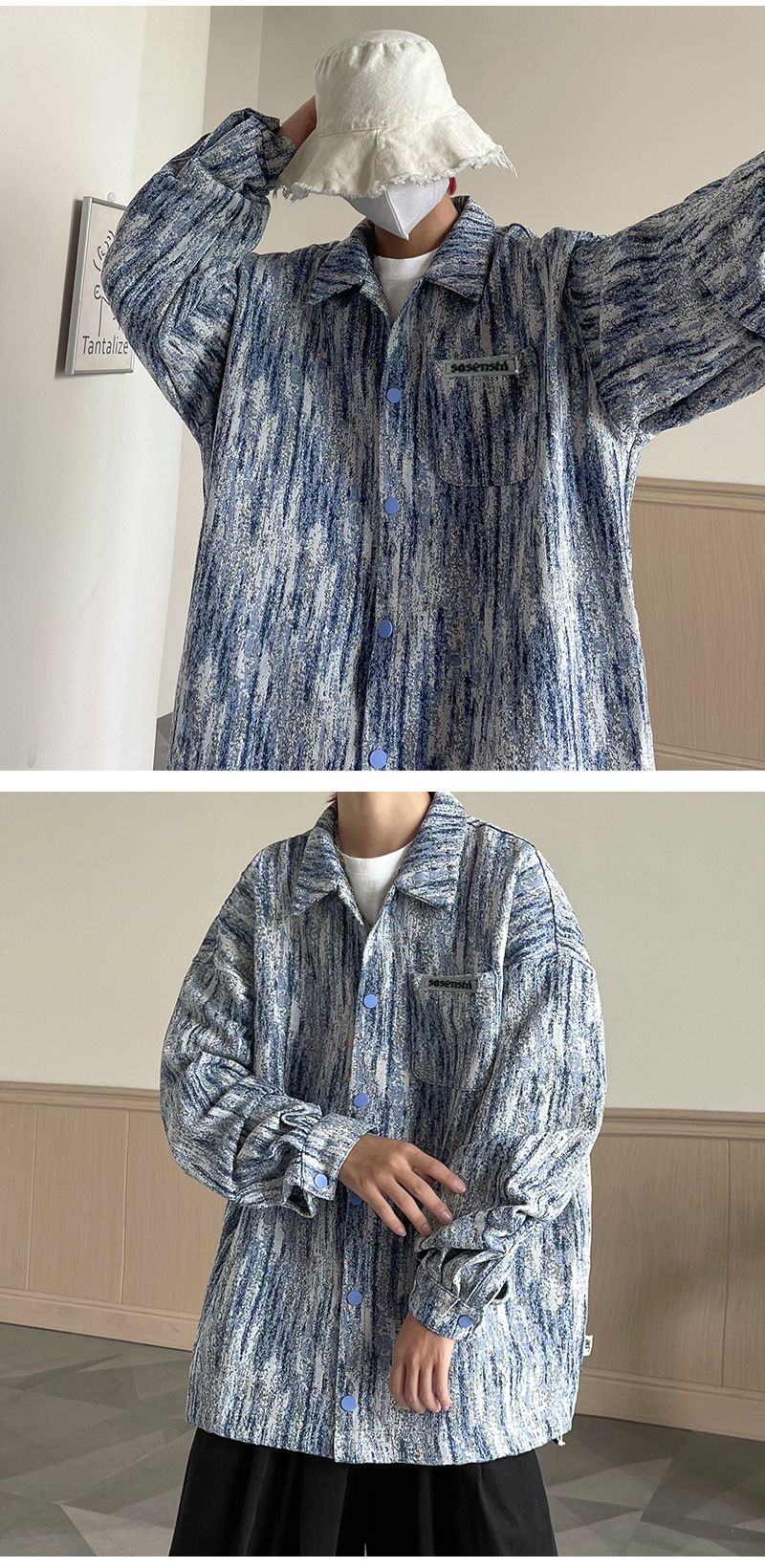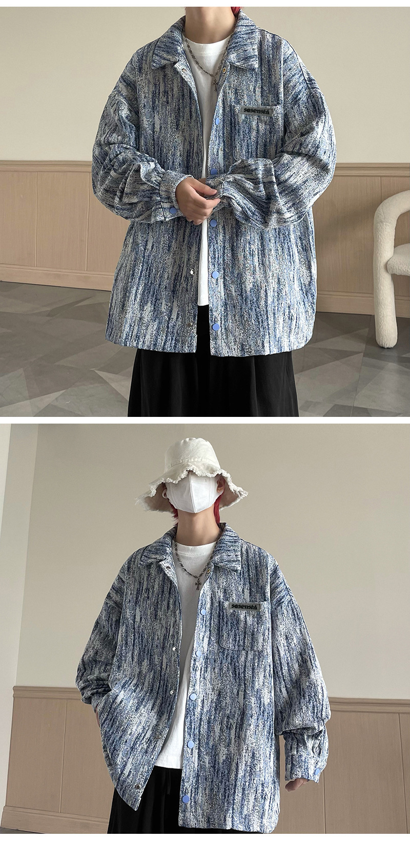 넥타이 염색 데님 재킷 남자 봄과 가을 새로운 미국 스타일 하이 스트리트 재킷 분위기 더피 핸섬 캐주얼 루즈 남성 재킷스토어 가기
