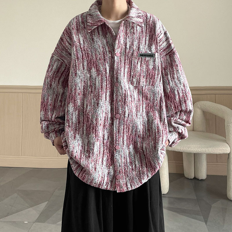 넥타이 염색 데님 재킷 남자 봄과 가을 새로운 미국 스타일 하이 스트리트 재킷 분위기 더피 핸섬 캐주얼 루즈 남성 재킷