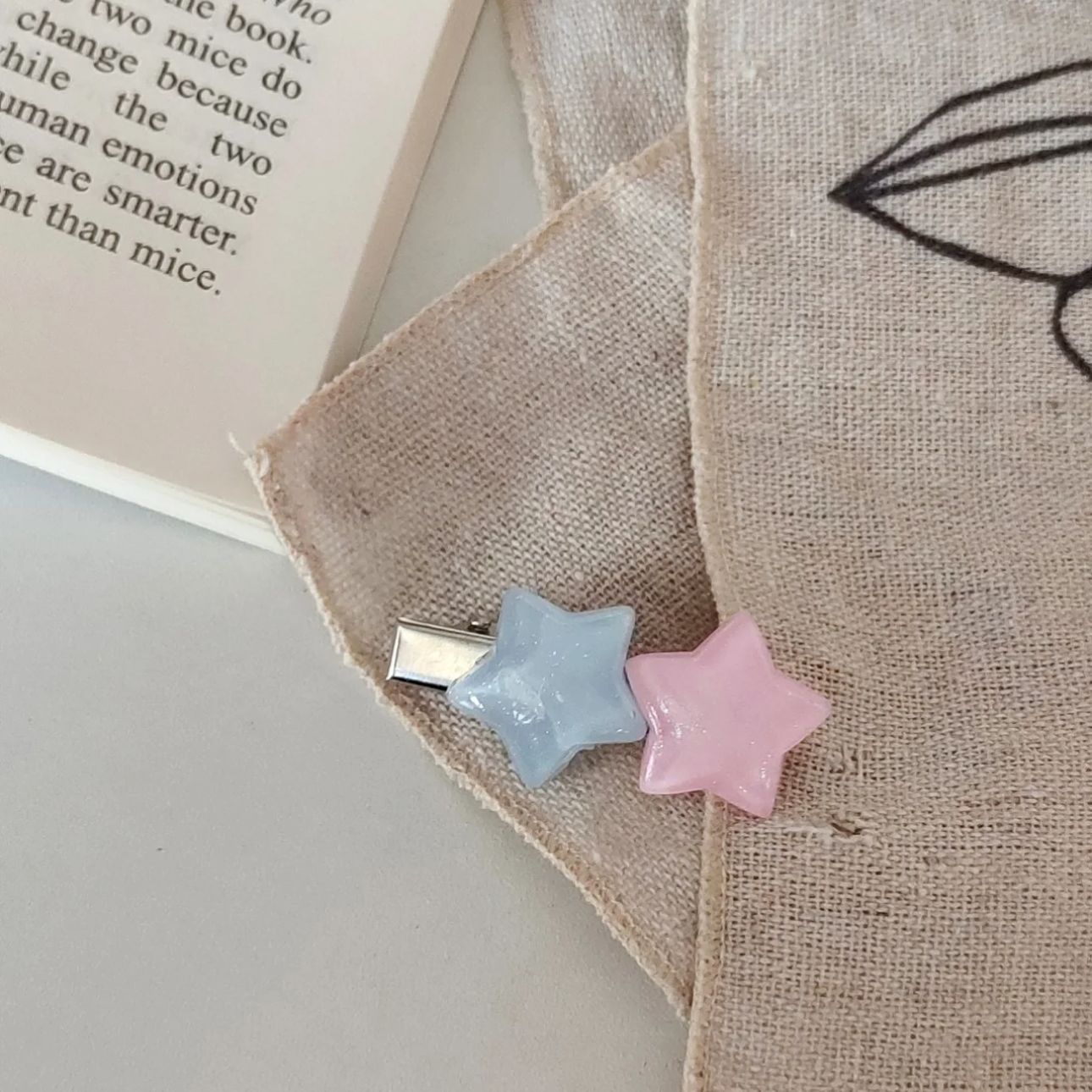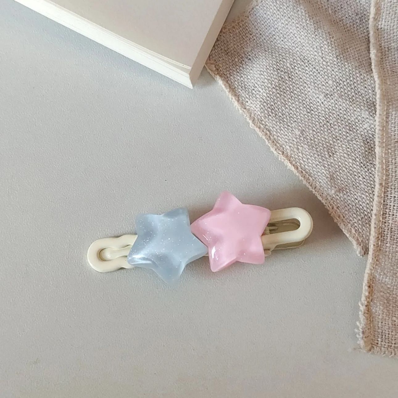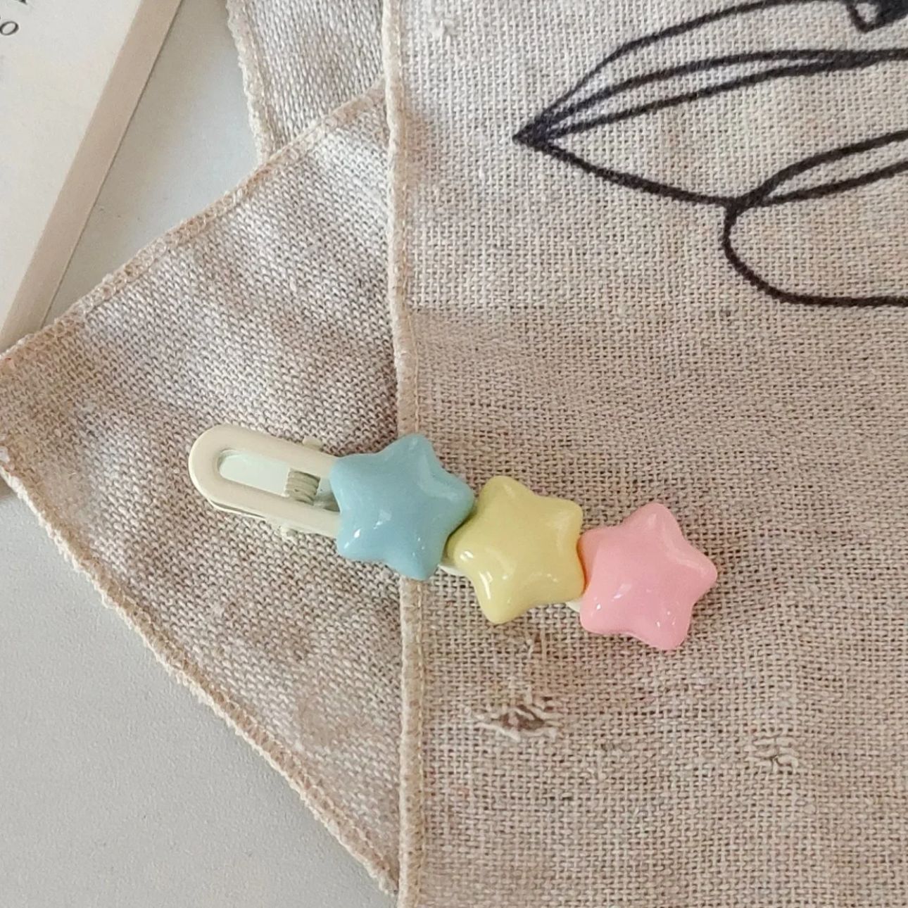 귀여운 도파민 크림 컬러 매칭 다섯개 별 머리핀 덕빌 클립 달콤한 소녀 하트 사이드 클립 앞머리 클립 머리핀스토어 가기