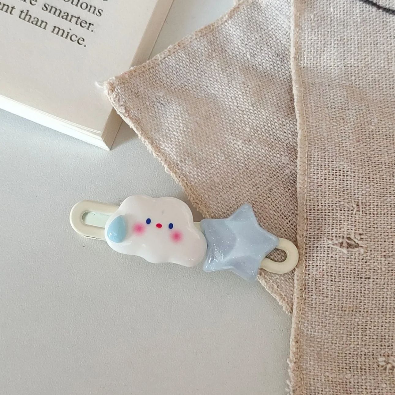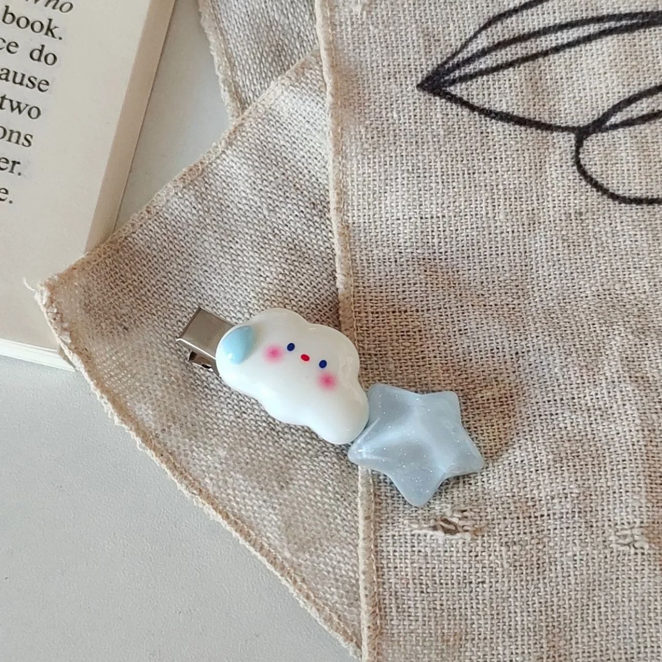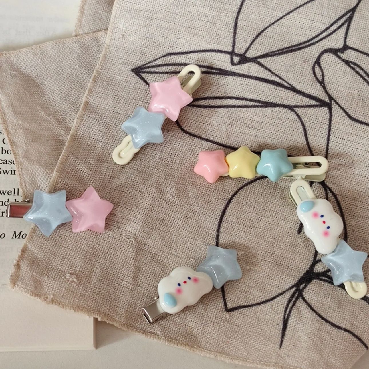 귀여운 도파민 크림 컬러 매칭 다섯개 별 머리핀 덕빌 클립 달콤한 소녀 하트 사이드 클립 앞머리 클립 머리핀스토어 가기
