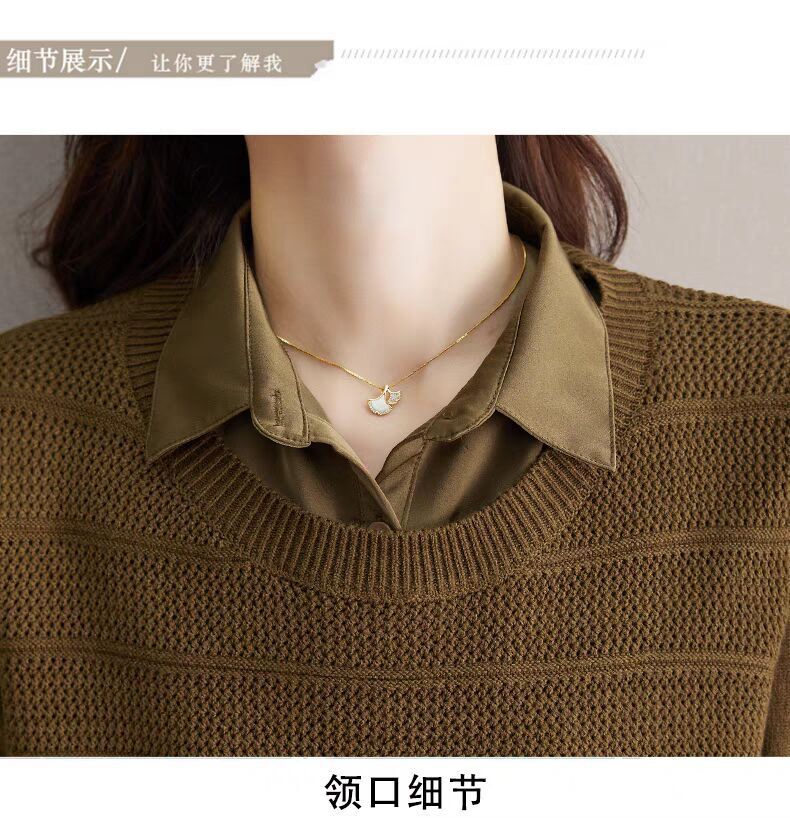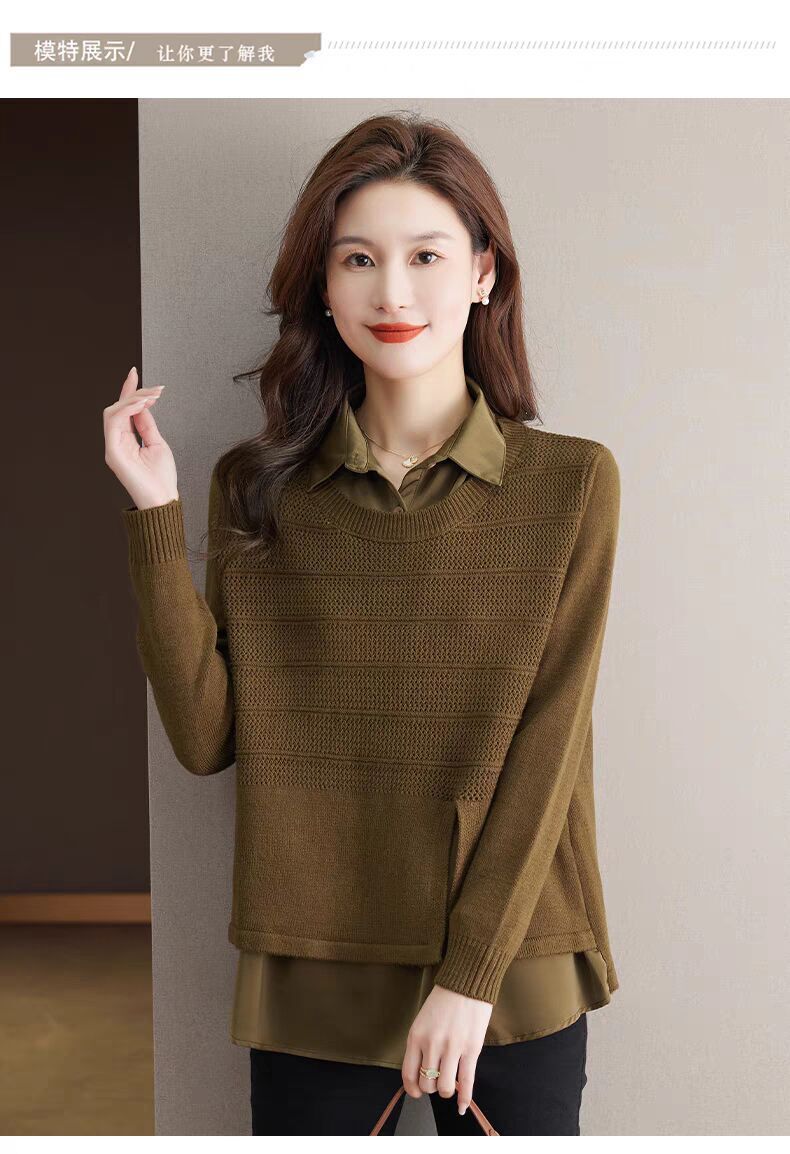 재고 가짜 투피스 탑 여성 패션 서양식 느슨한 배꼽 아우터 착용 니트 셔츠 봄과 가을 새로운베이스 셔츠스토어 가기