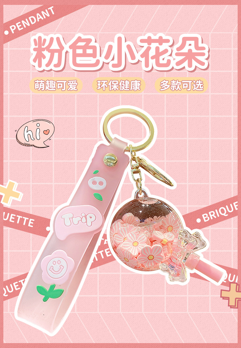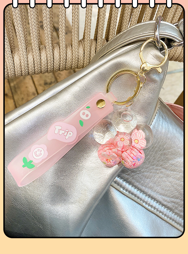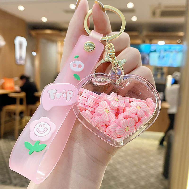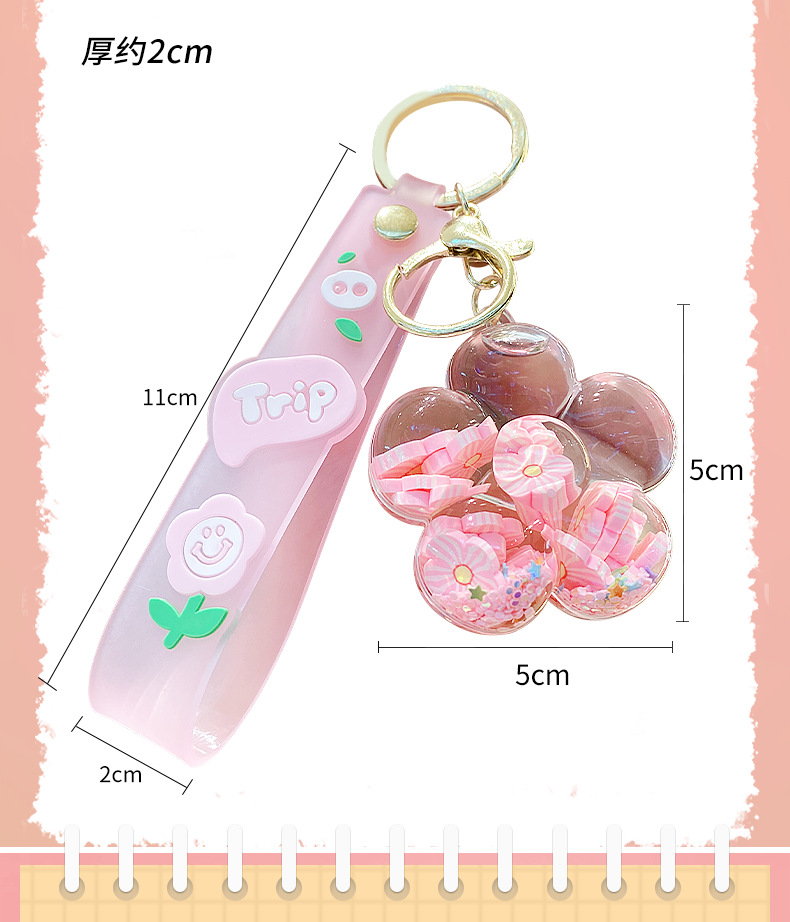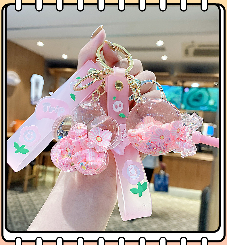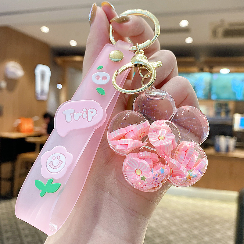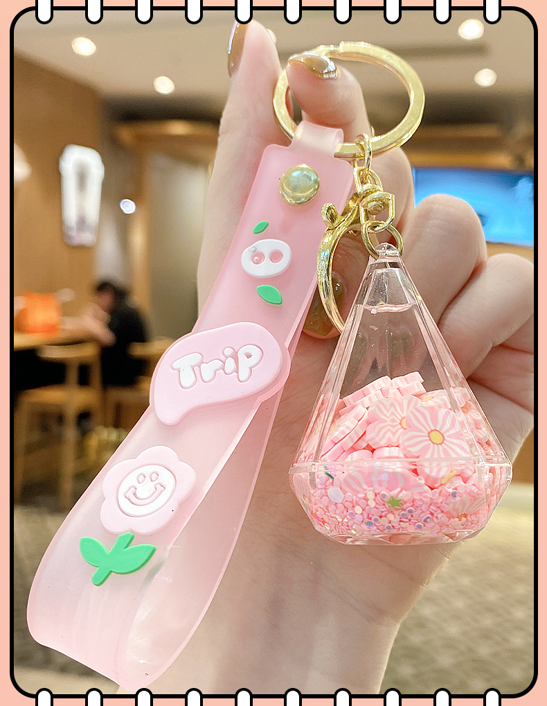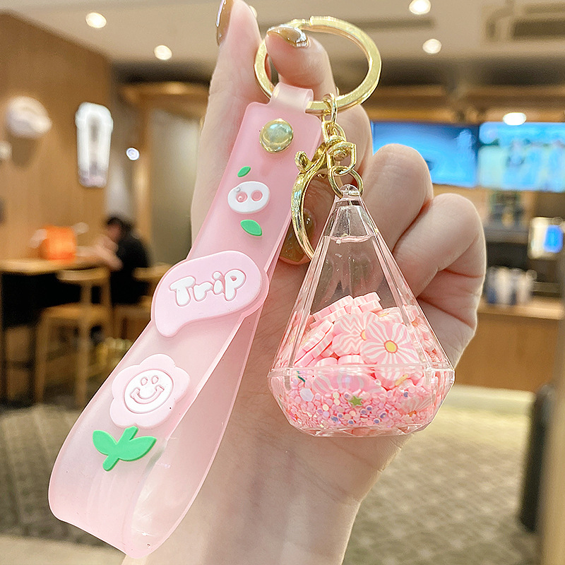 크리스탈 퀵 샌드 펜던트 핑크 꽃 오일 플로팅 자동차 키 체인 소녀 스쿨 백 펜던트 휴일 선물스토어 가기