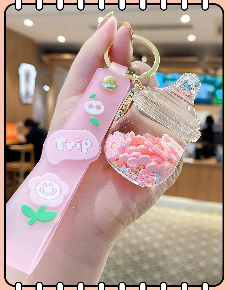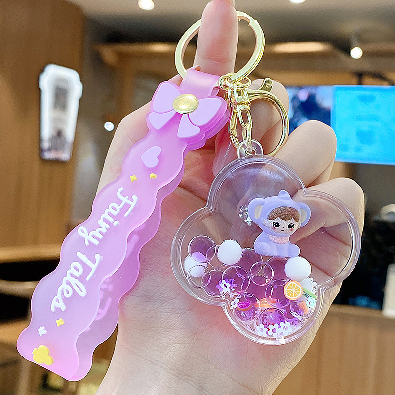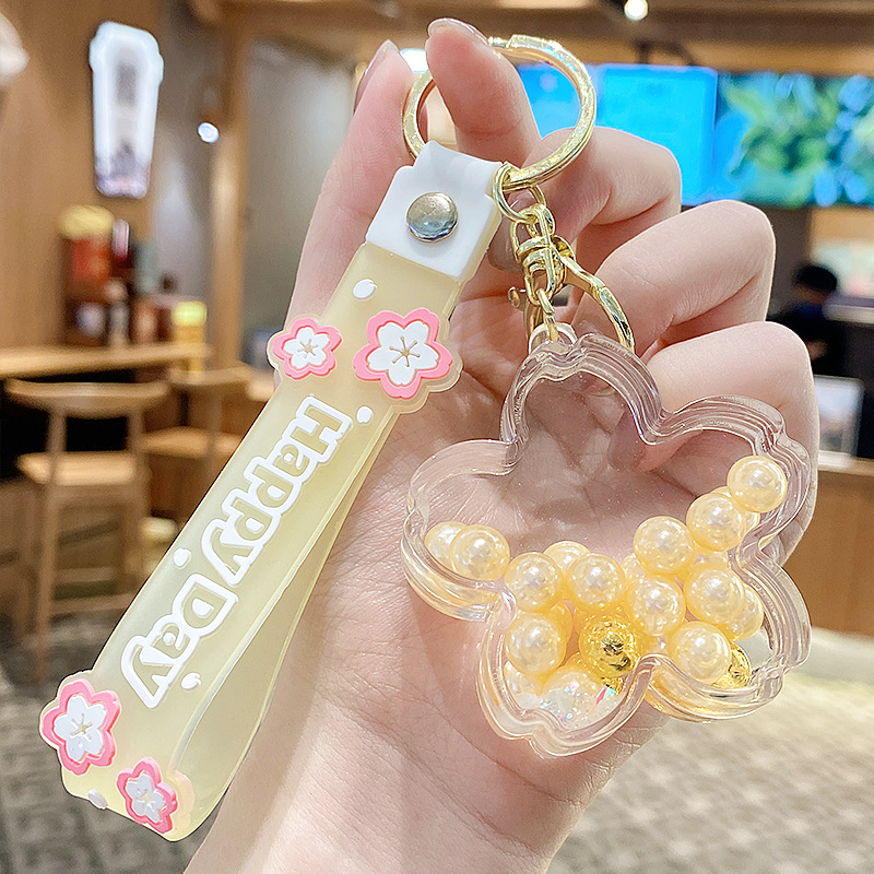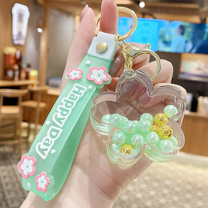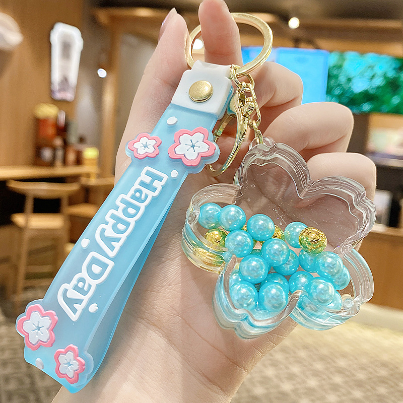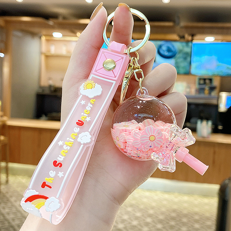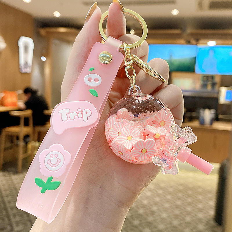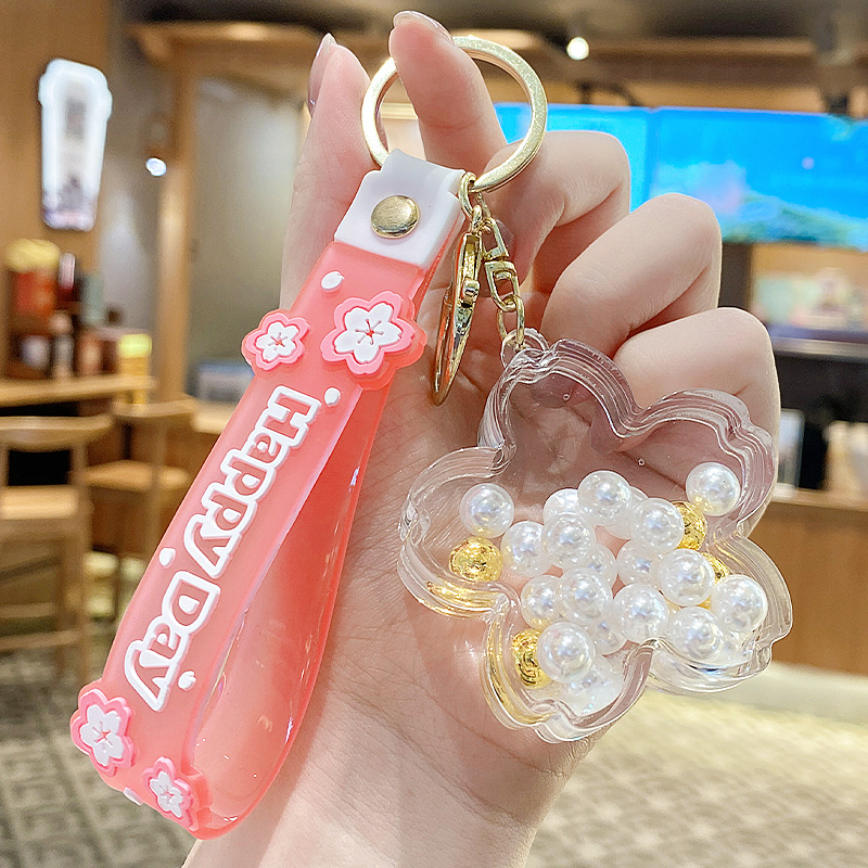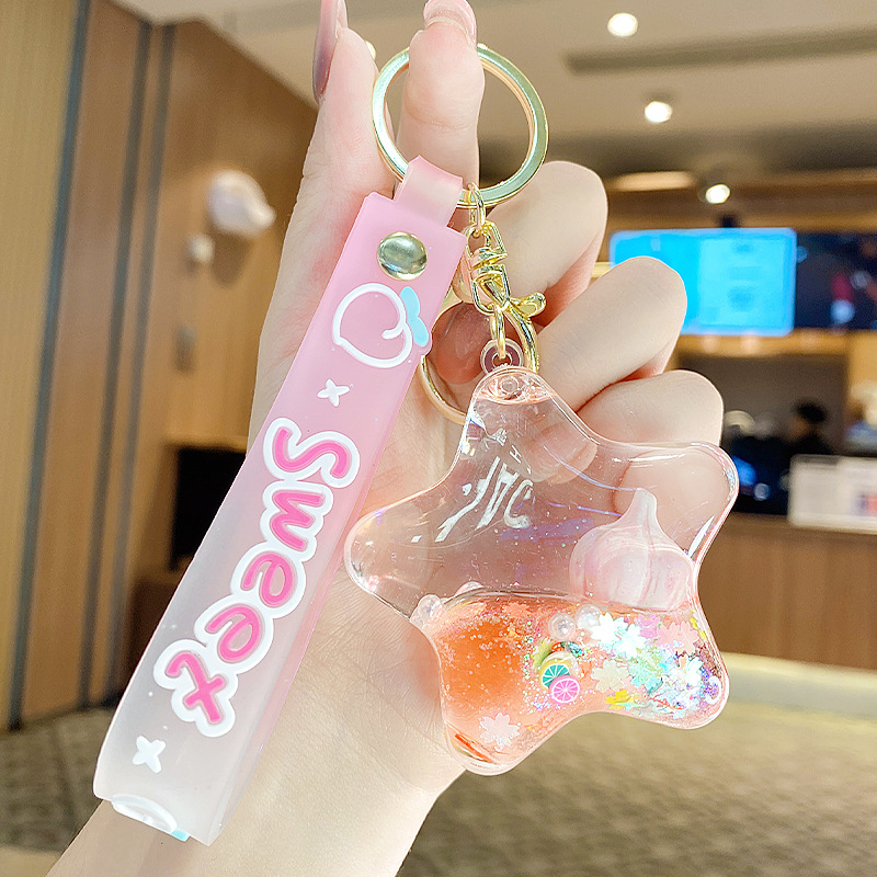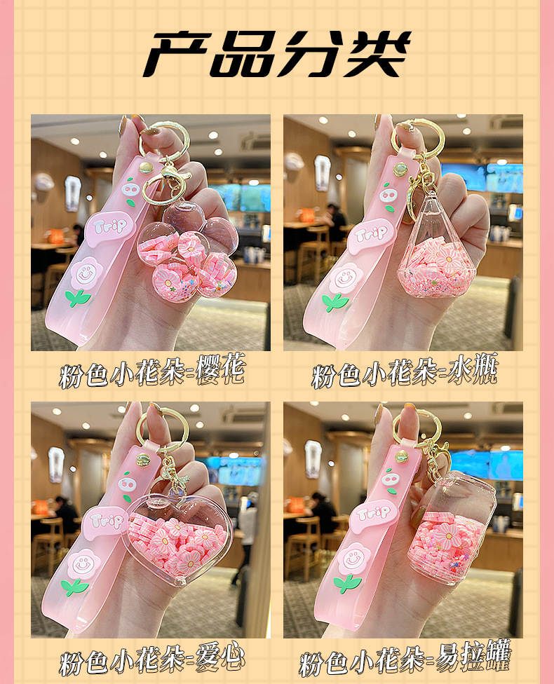 크리스탈 퀵 샌드 펜던트 핑크 꽃 오일 플로팅 자동차 키 체인 소녀 스쿨 백 펜던트 휴일 선물스토어 가기