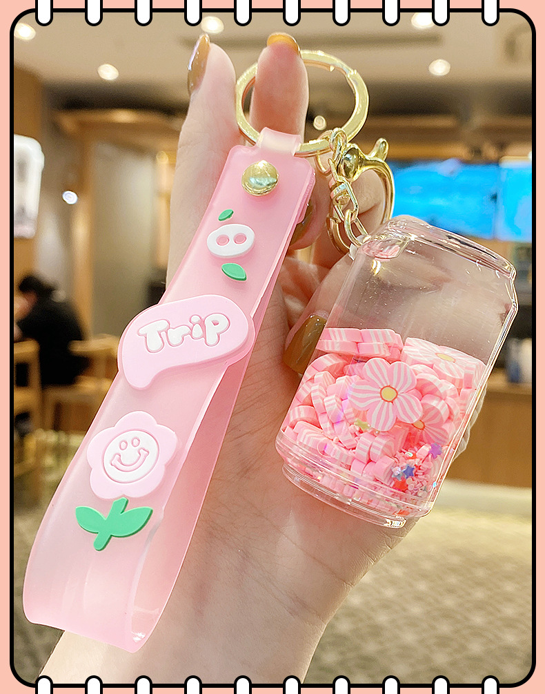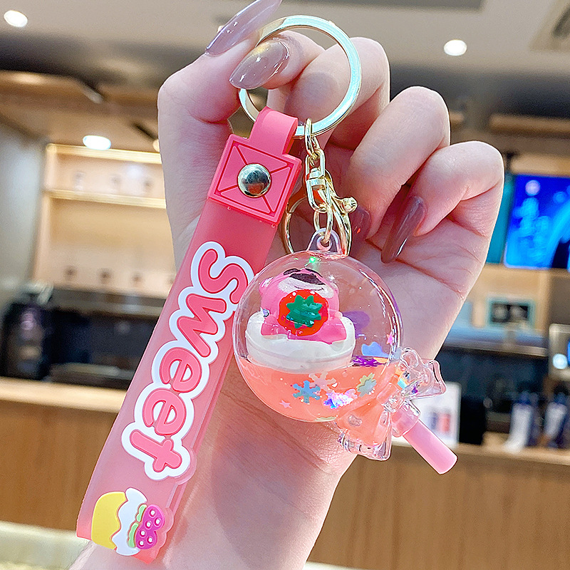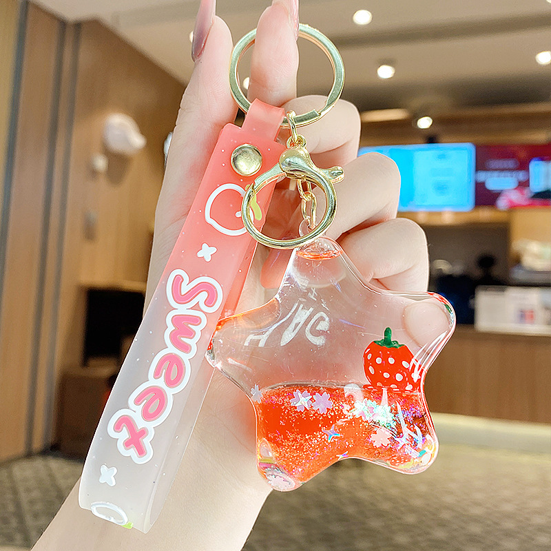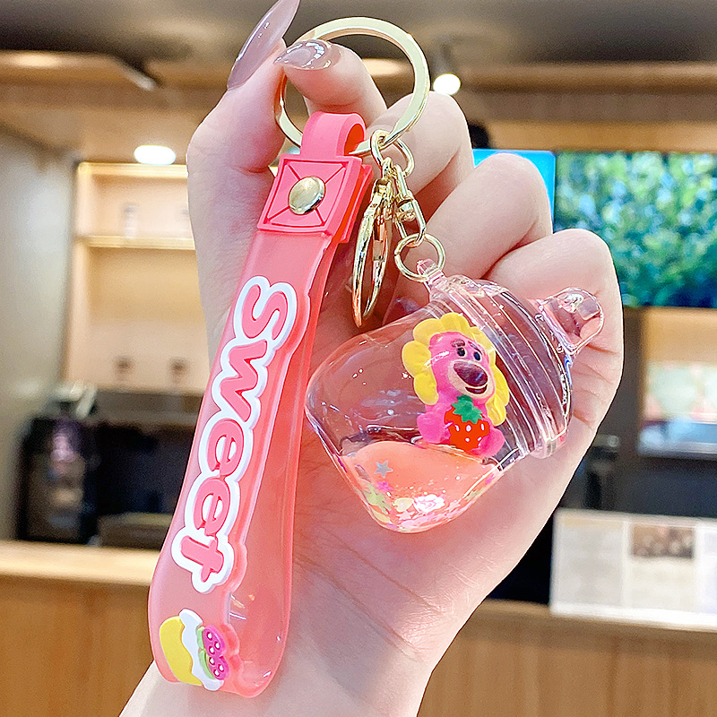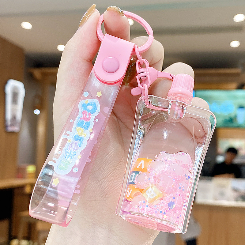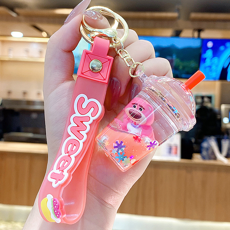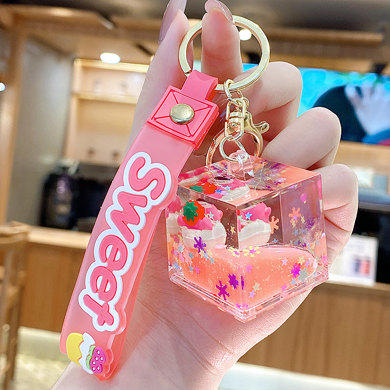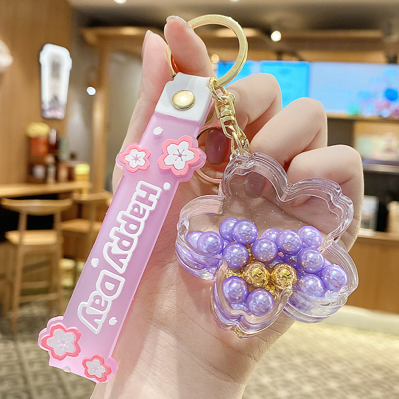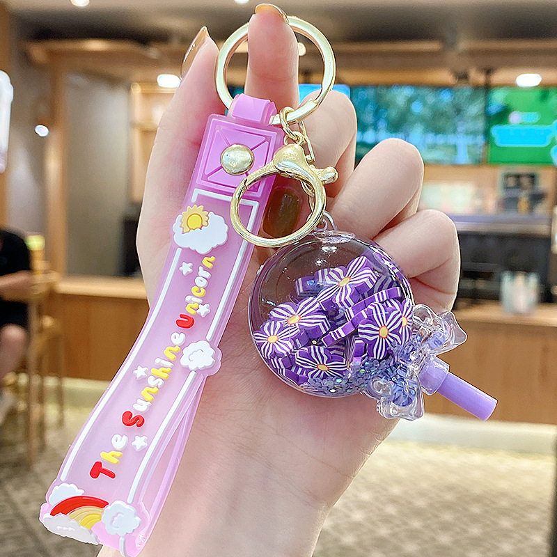 크리스탈 퀵 샌드 펜던트 핑크 꽃 오일 플로팅 자동차 키 체인 소녀 스쿨 백 펜던트 휴일 선물스토어 가기