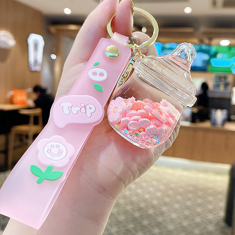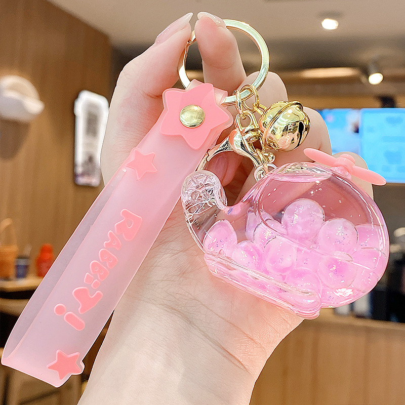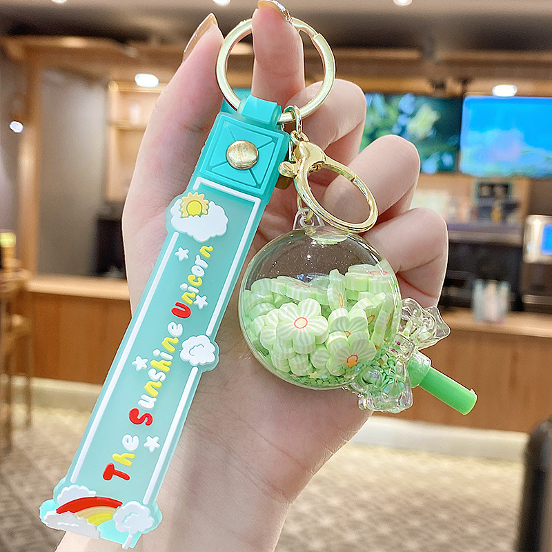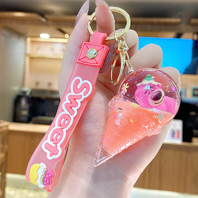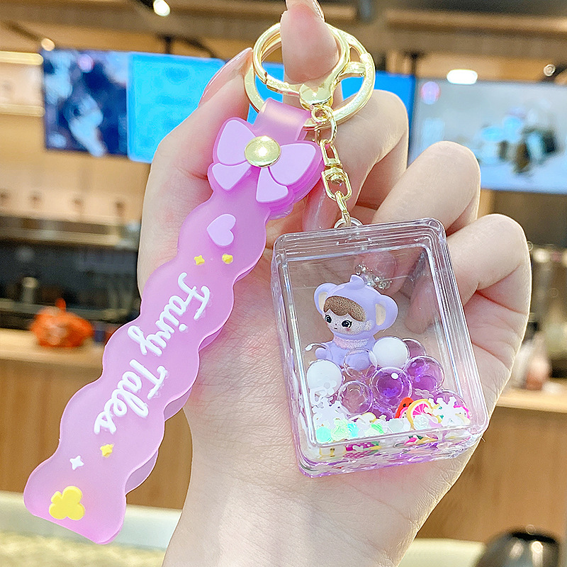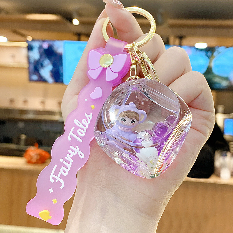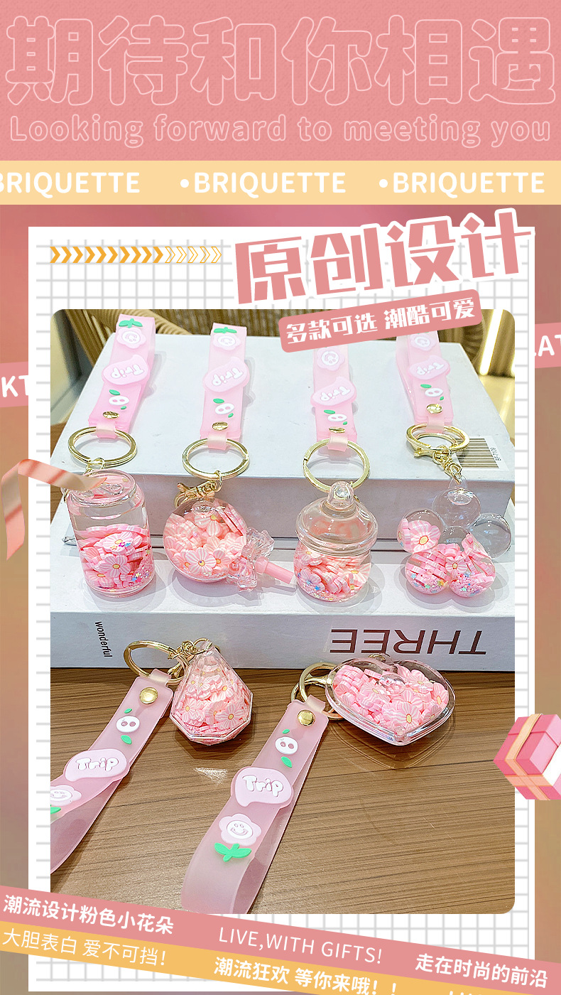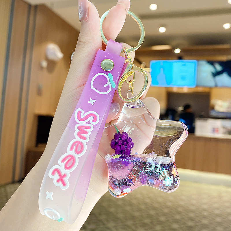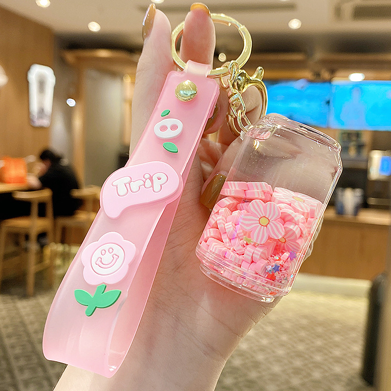 크리스탈 퀵 샌드 펜던트 핑크 꽃 오일 플로팅 자동차 키 체인 소녀 스쿨 백 펜던트 휴일 선물스토어 가기
