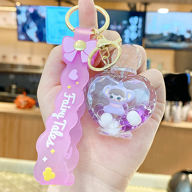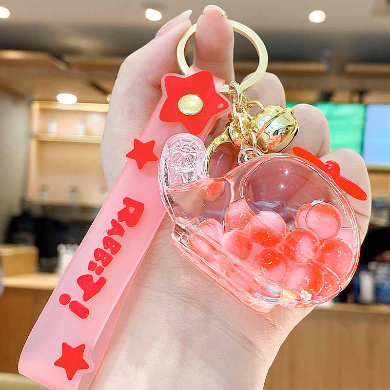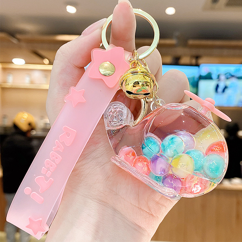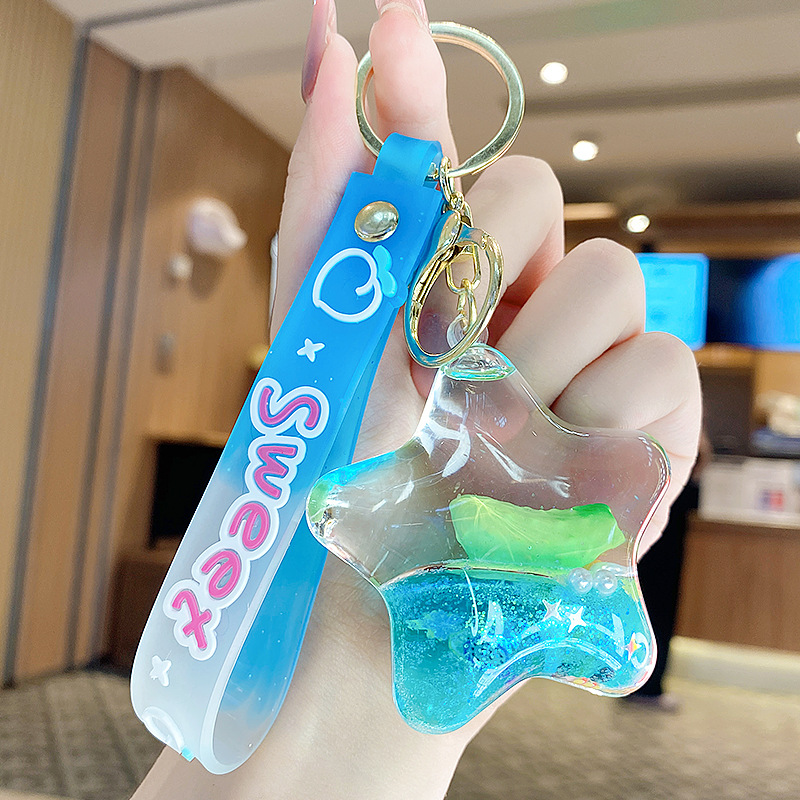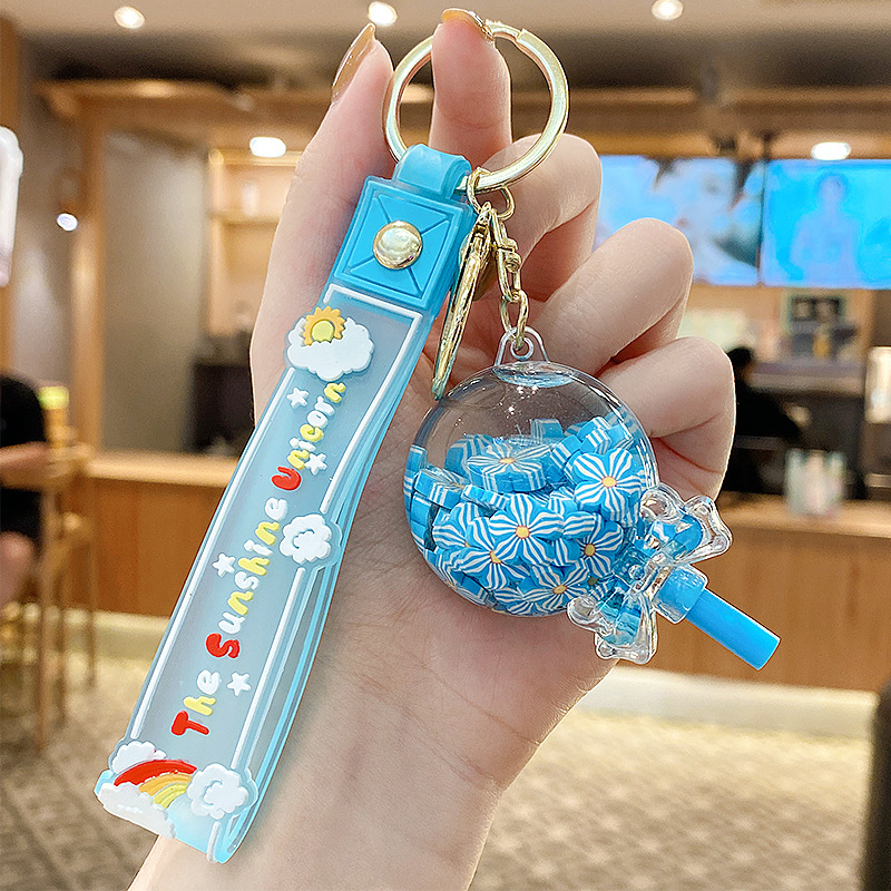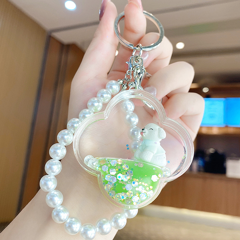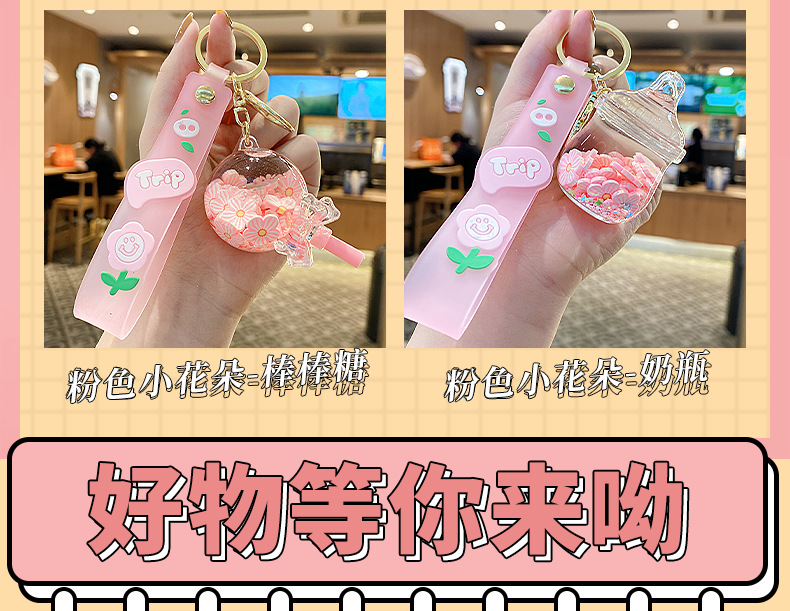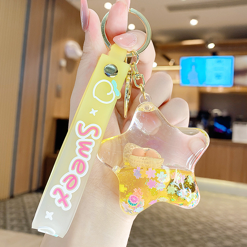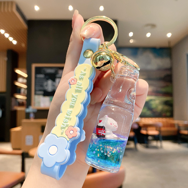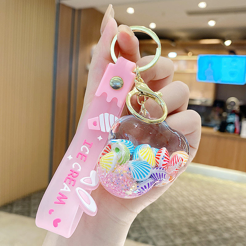 크리스탈 퀵 샌드 펜던트 핑크 꽃 오일 플로팅 자동차 키 체인 소녀 스쿨 백 펜던트 휴일 선물스토어 가기