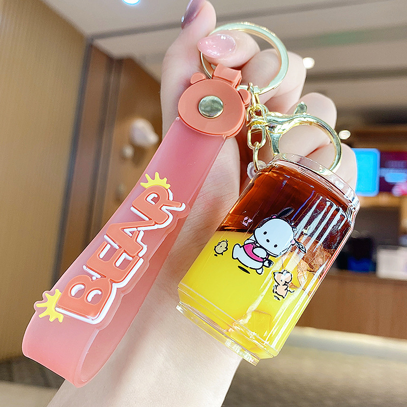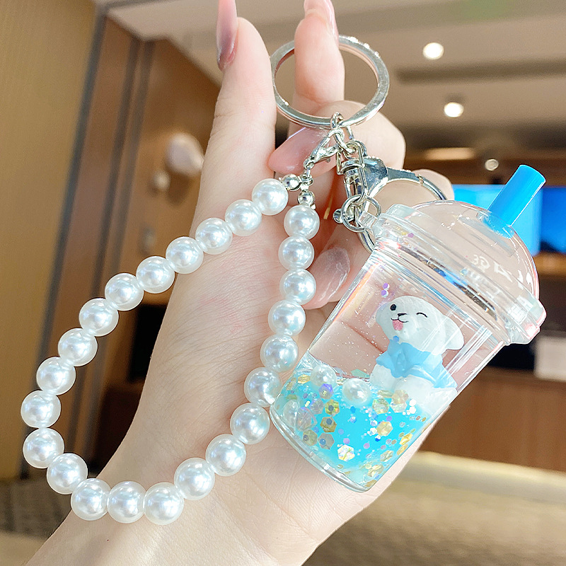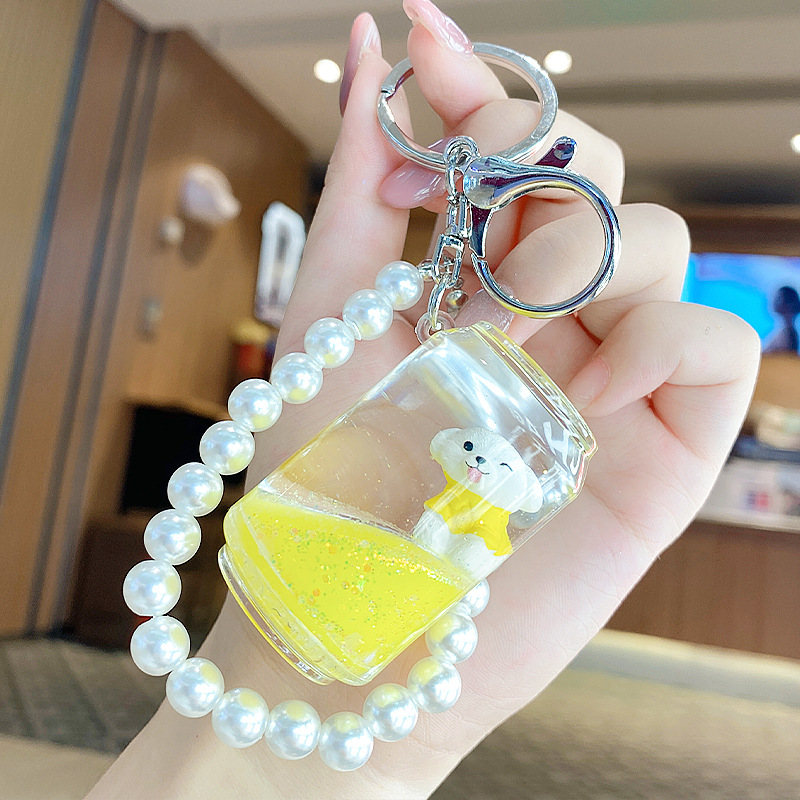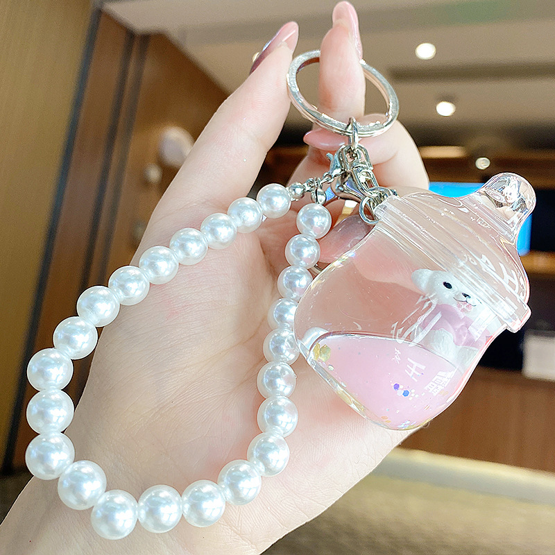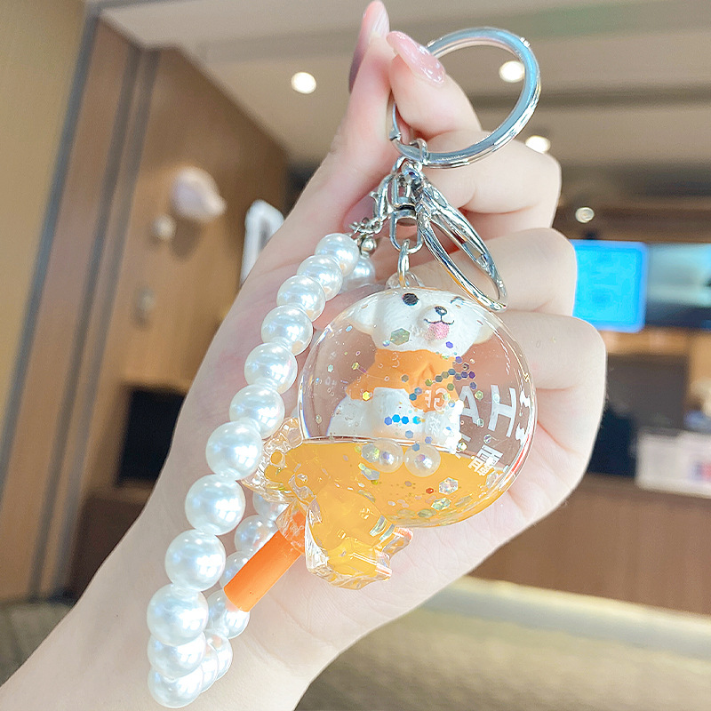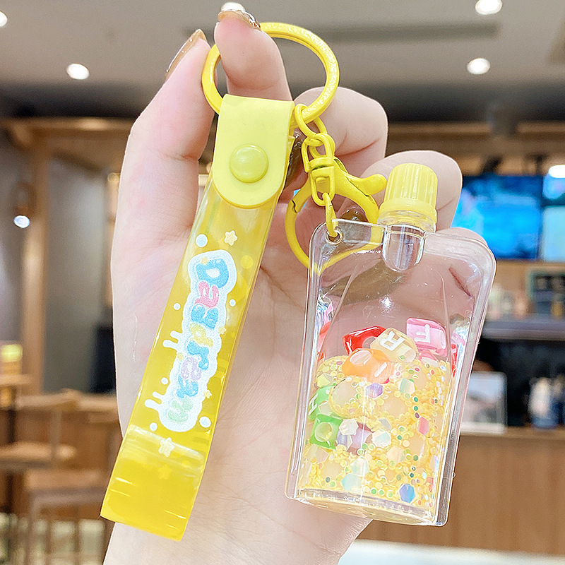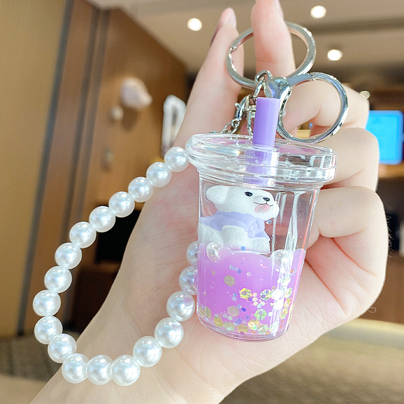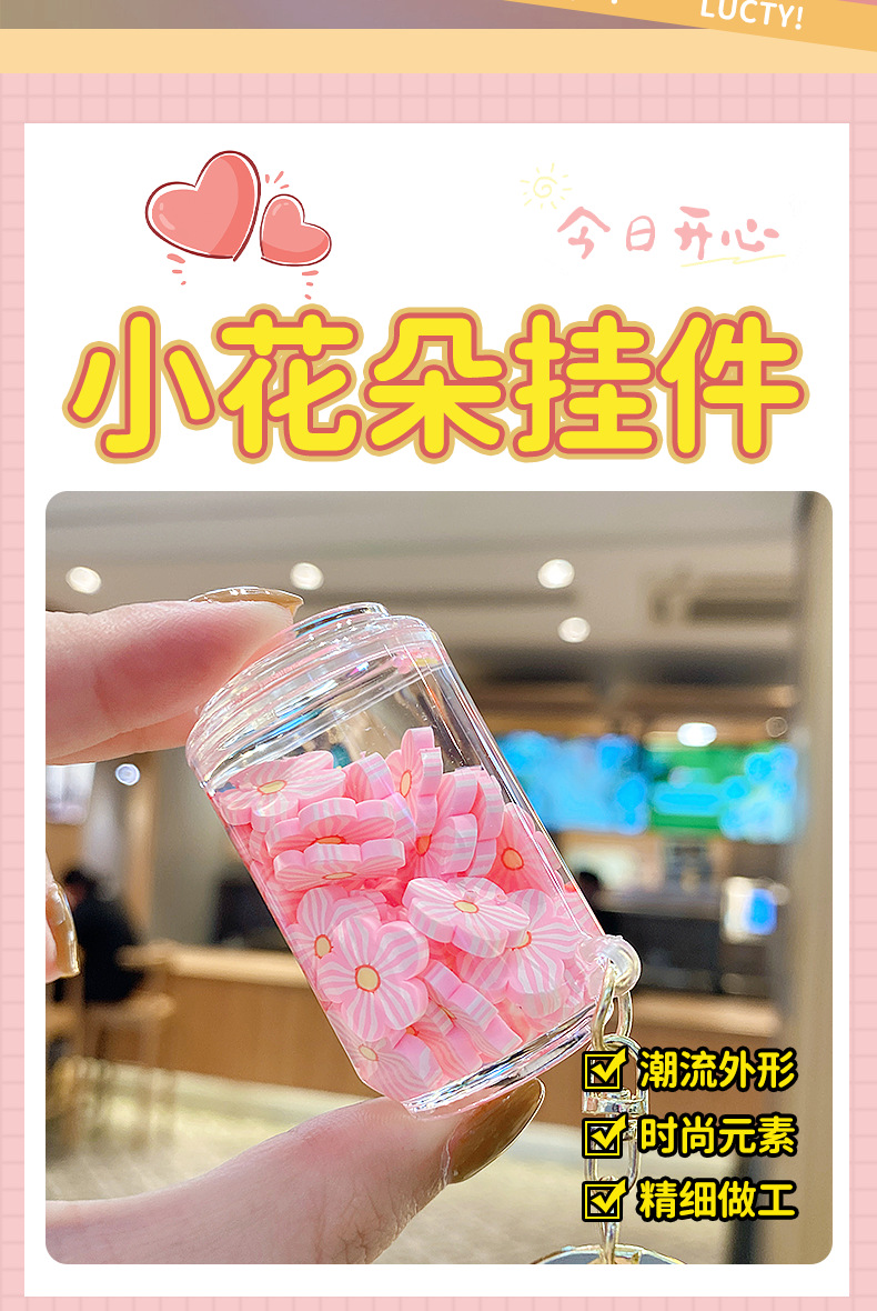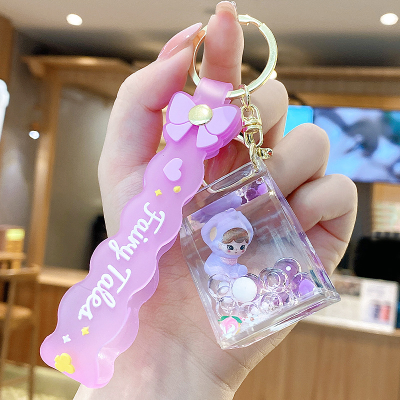 크리스탈 퀵 샌드 펜던트 핑크 꽃 오일 플로팅 자동차 키 체인 소녀 스쿨 백 펜던트 휴일 선물스토어 가기