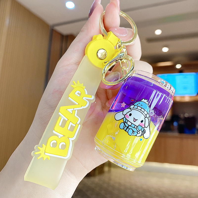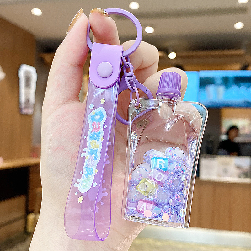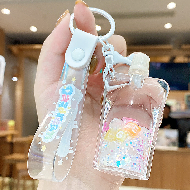 크리스탈 퀵 샌드 펜던트 핑크 꽃 오일 플로팅 자동차 키 체인 소녀 스쿨 백 펜던트 휴일 선물