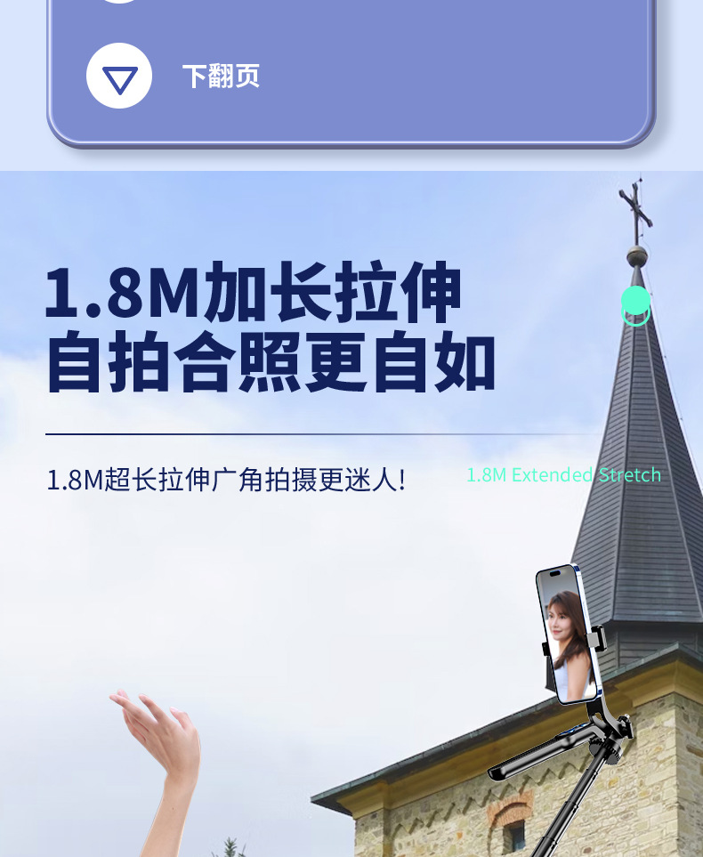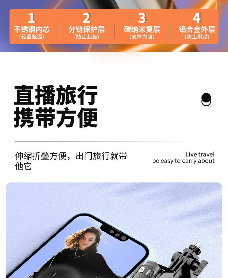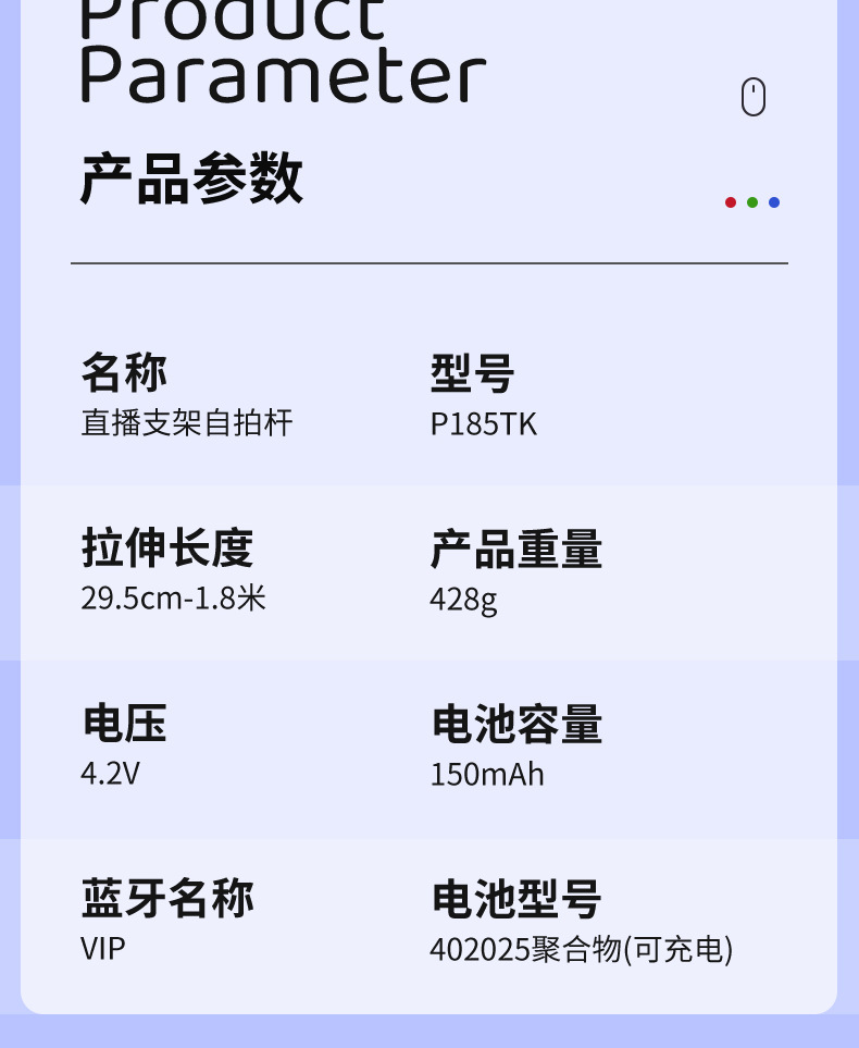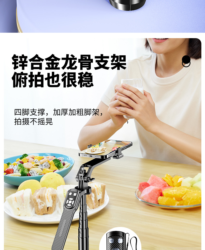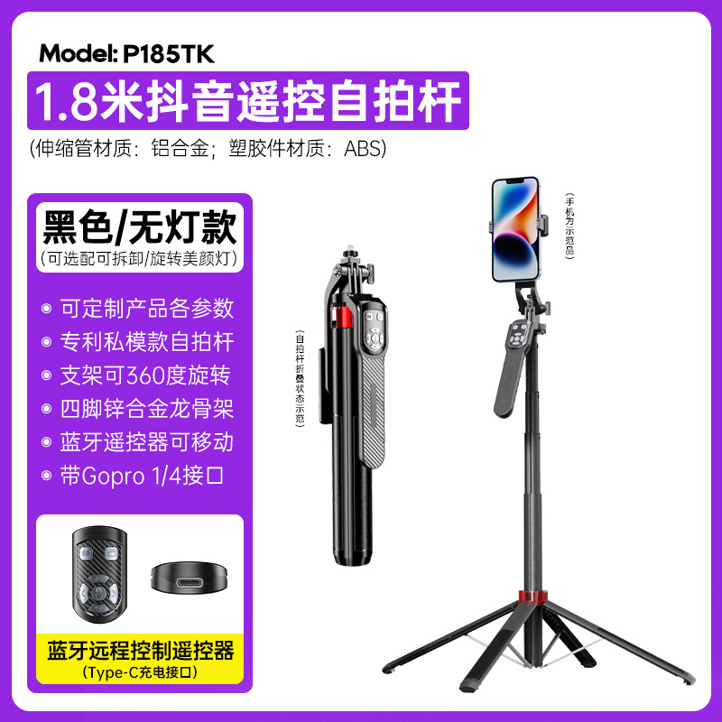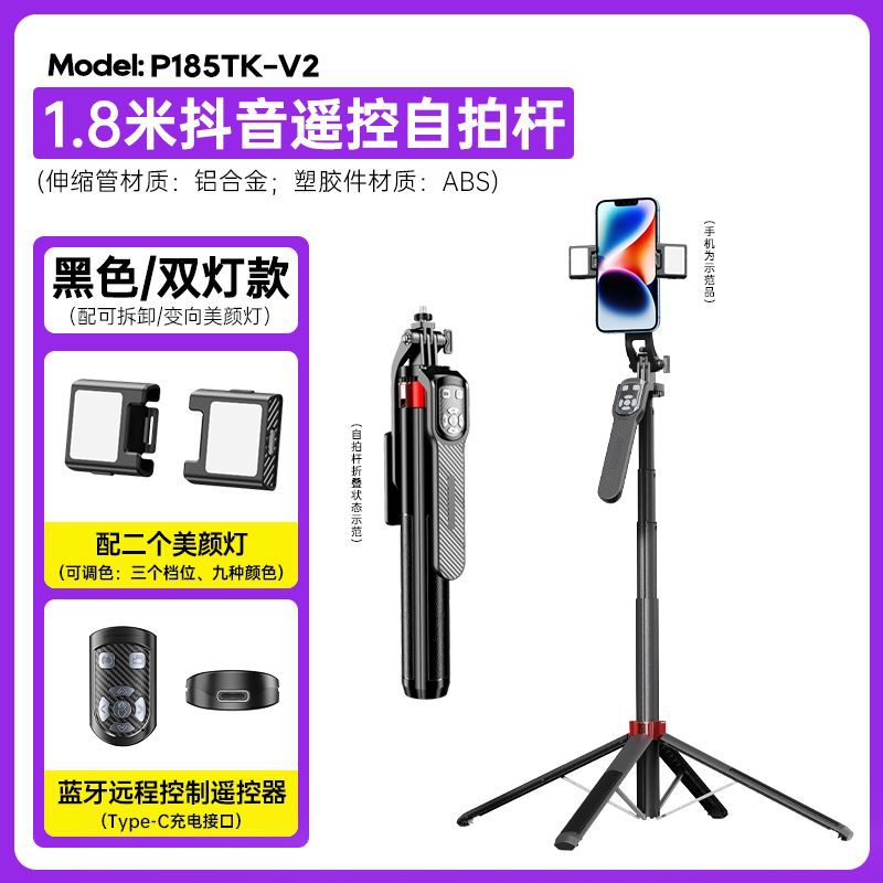 • P185TK-V2 알루미늄 합금 셀카봉/이중 조명