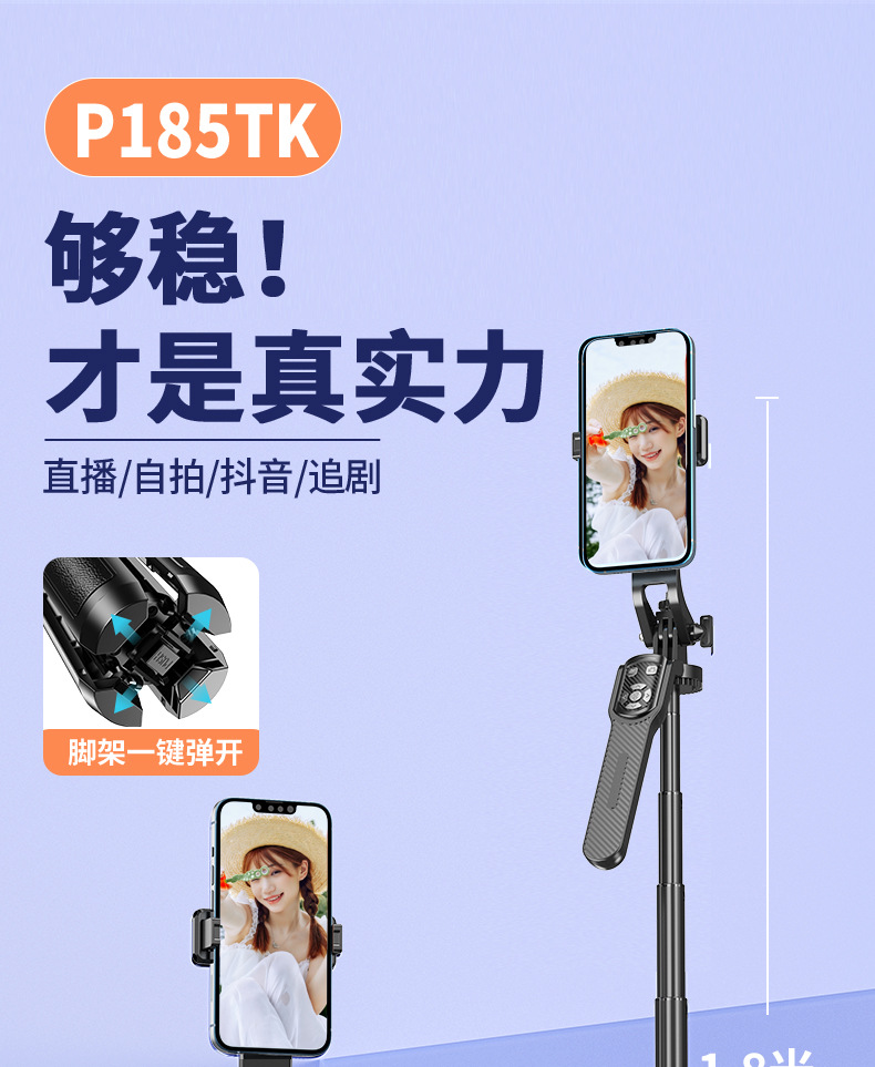 P185TK 셀카 스탠드 트레몰로 블루투스 리모컨 셀카 스틱 쉐이크 방지 접이식 휴대용 네발 휴대 전화 스탠드