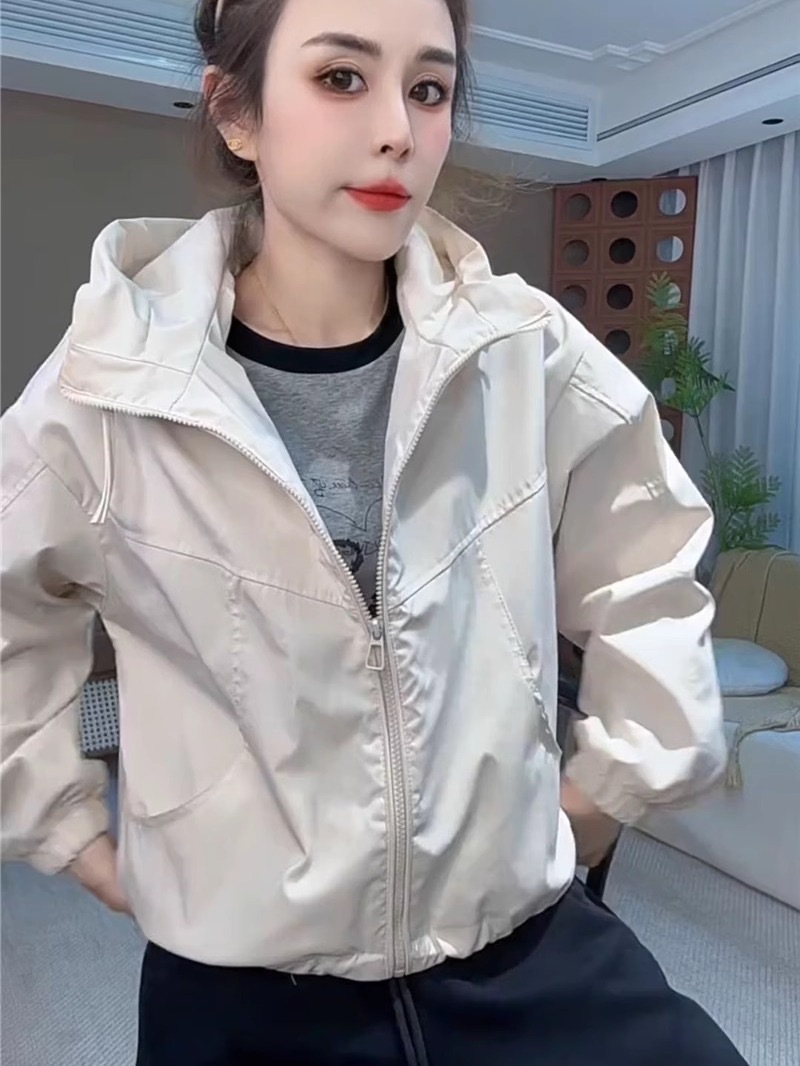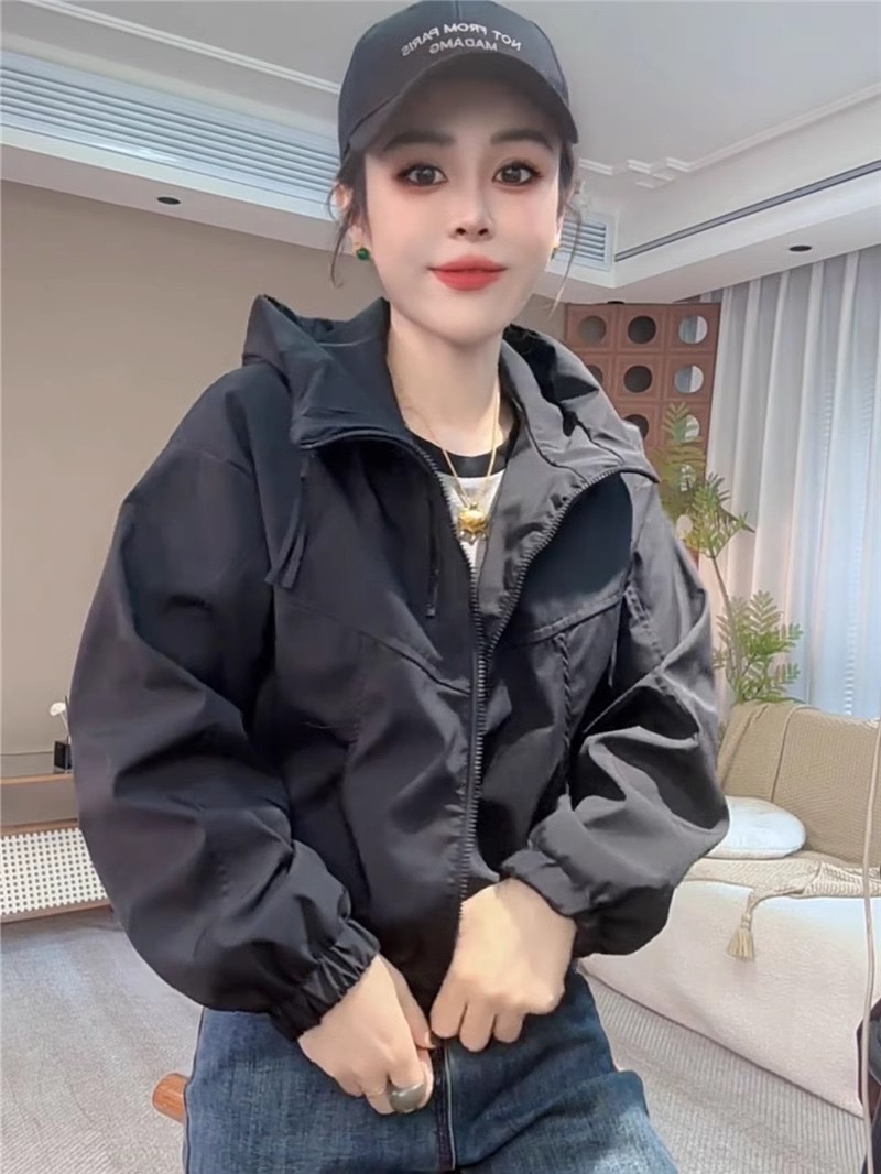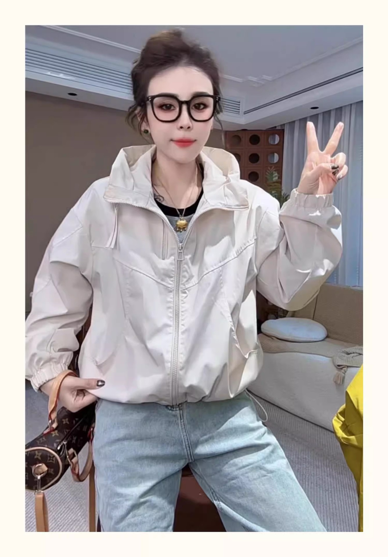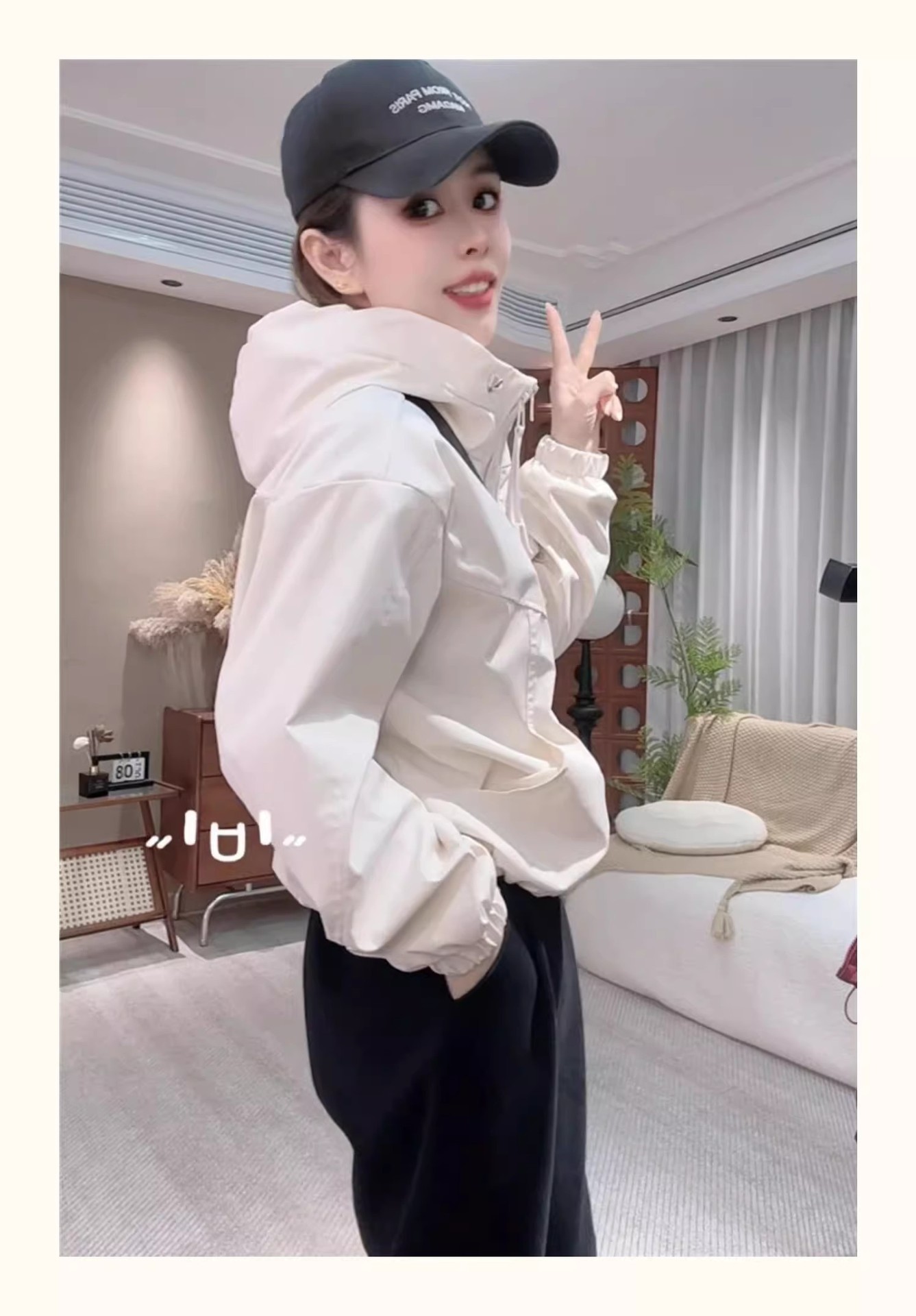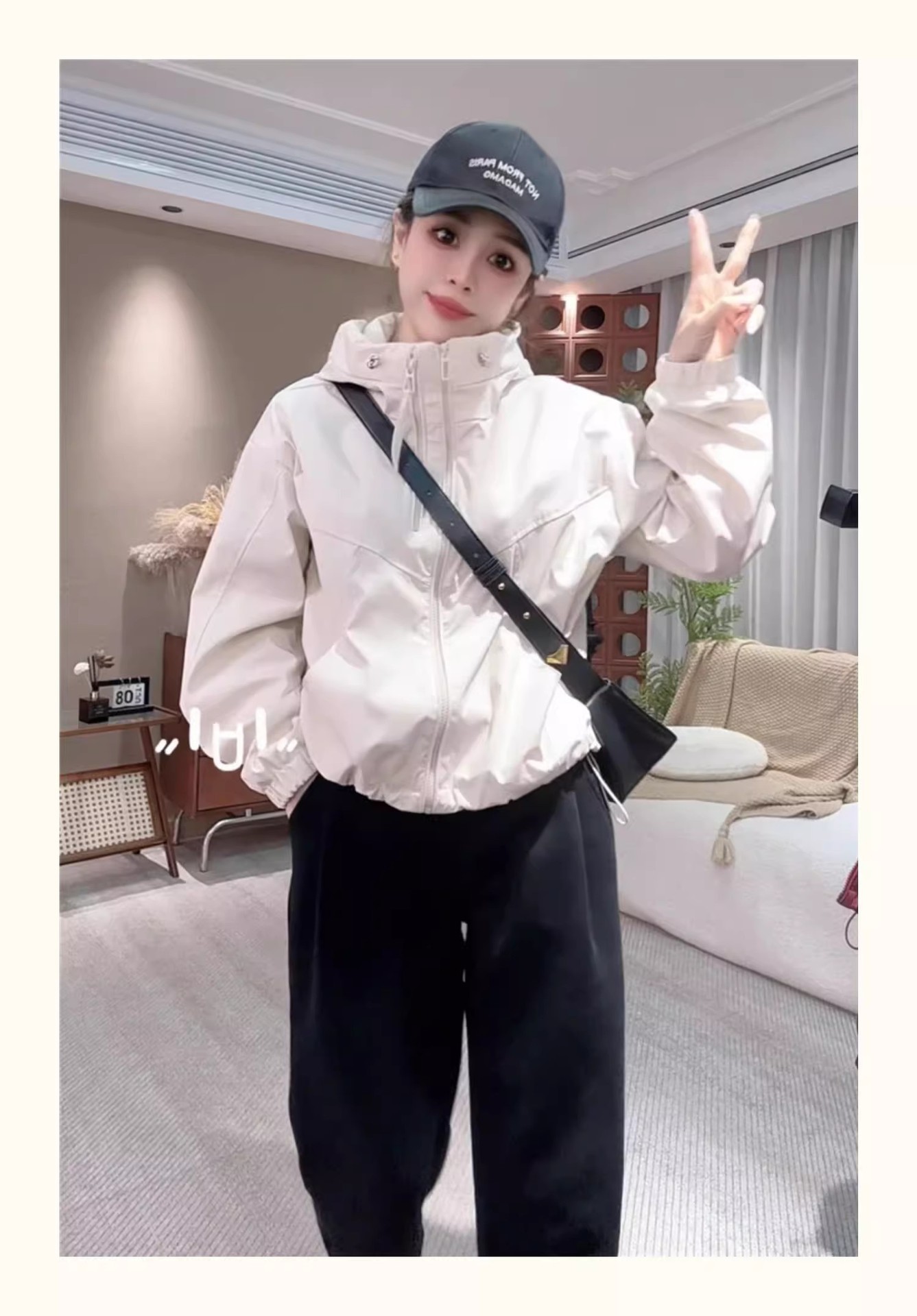 캐주얼 더블 지퍼 후드 재킷 여자 쇼트 2024 가을 새로운 올 매치 유행 작은 재킷스토어 가기