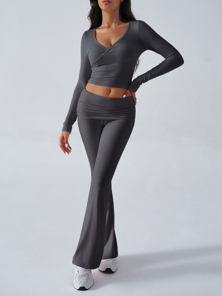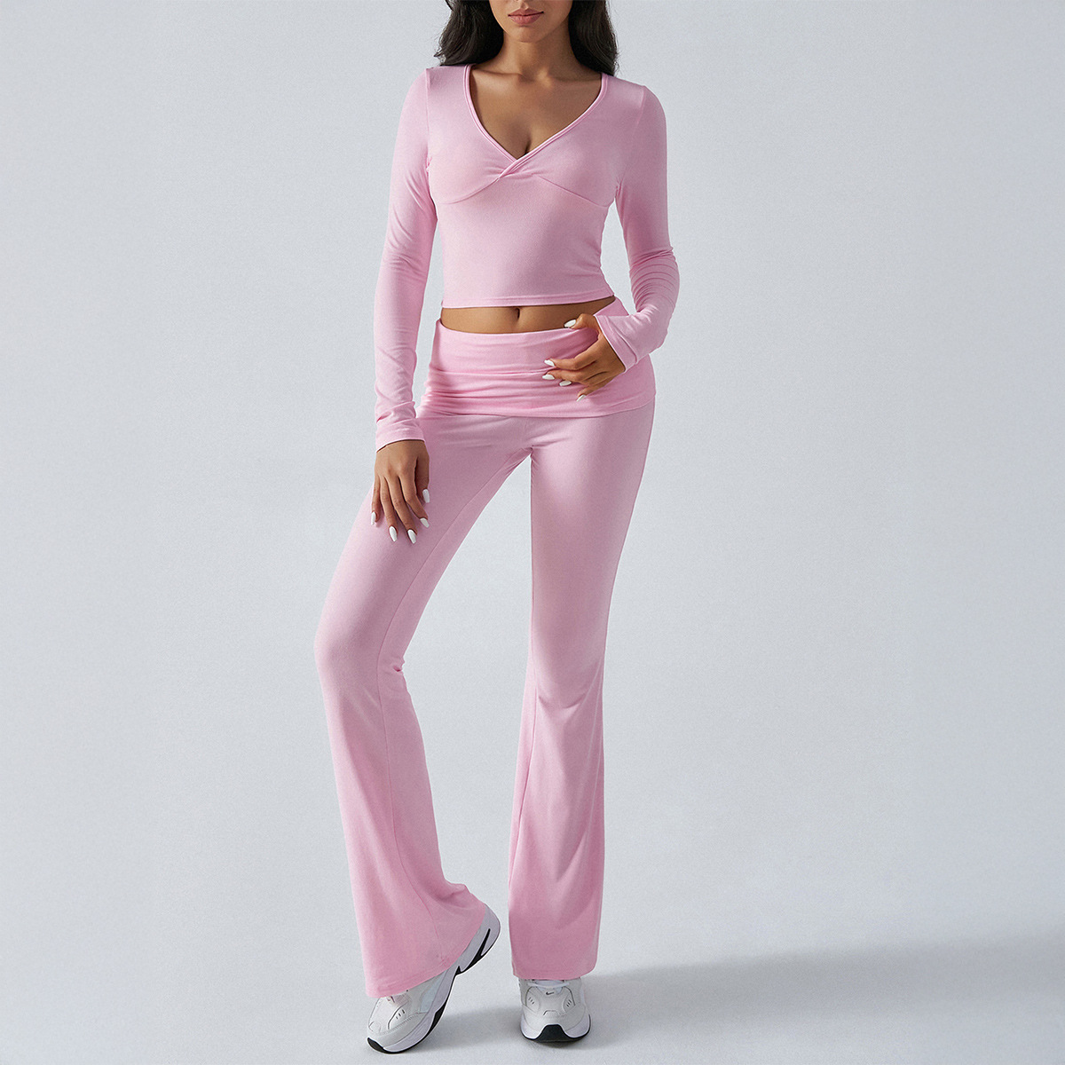 디윤 2025 해외 유럽 및 미국 여성 의류 아마존 캐주얼 스포츠 슬림 니트 긴팔 긴바지 투피스 세트 여성용스토어 가기