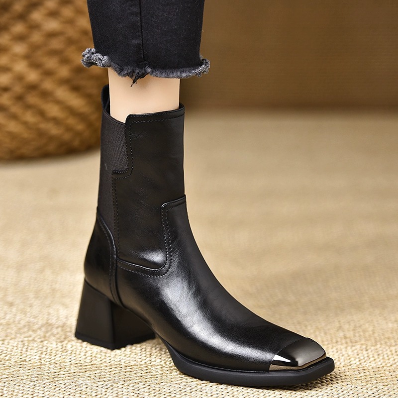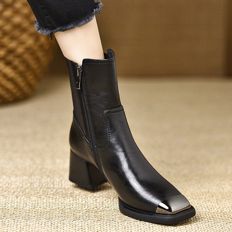 빈티지 메탈 헤드 두꺼운 힐 우아한 마틴 부츠 여자 2024 가을 및 겨울 새로운 하이 엔드 사이드 지퍼 올 매치 쇼트 부츠스토어 가기