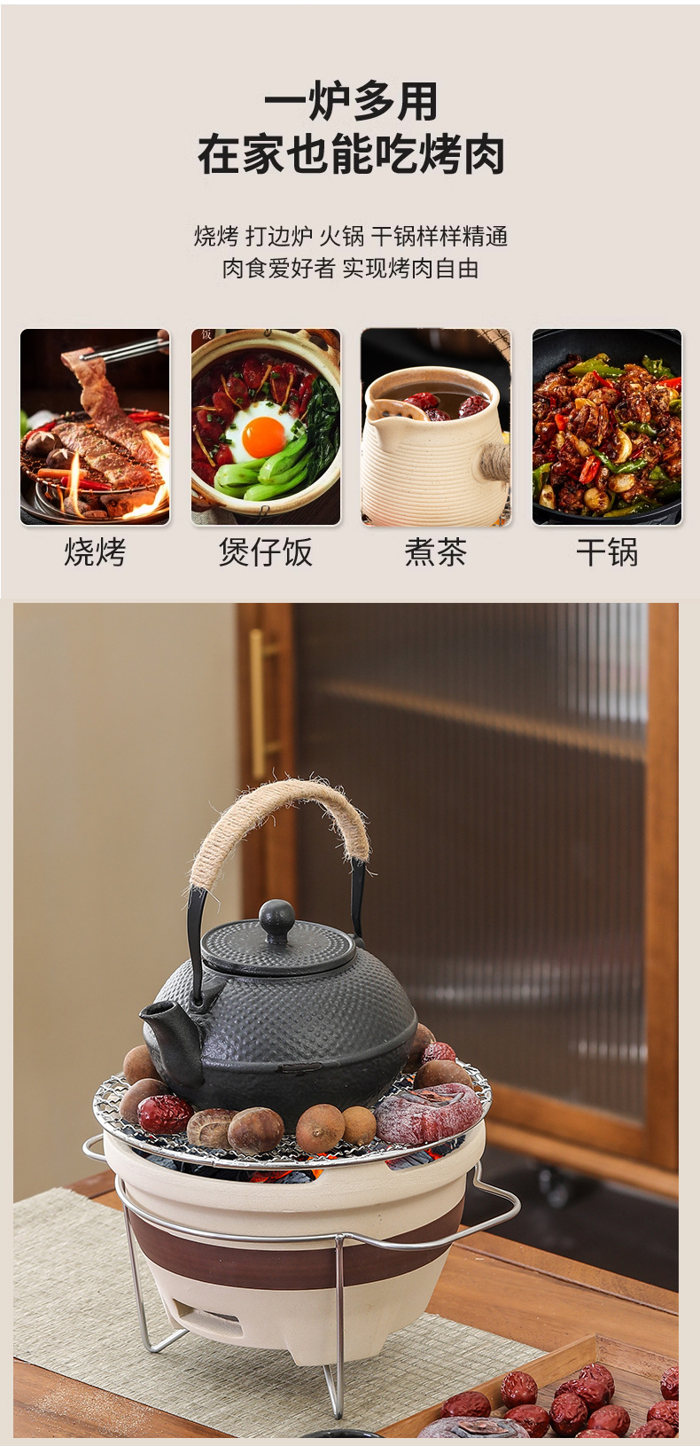 수프 스토브 탄소 스토브 야외 피크닉 BBQ 가정용 실내 스토브 요리를위한 차 모방 주철 숯 스토브 요리를위한 스토브 인클로징 스토브